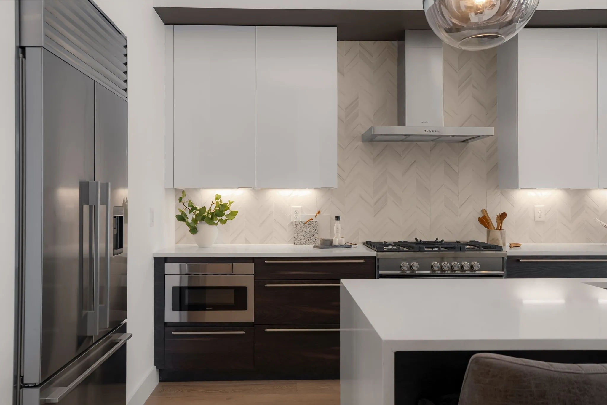 Inside, 10’ ceilings and wide-plank hardwoods run throughout, complemented by 8’ solid-core doors and brand new designer lighting. The kitchen stands out with sleek Fisher & Paykel stainless steel appliances, quartz countertops, and soft-close modern cabinetry with concealed hardware, an ideal setup for both entertaining and everyday living. Built with quality in mind, this home includes double-insulated casement windows with sound-dampening glazing, a double layer of Rockwool in exterior walls, and a tankless water heater for modern efficiency. The spacious primary suite features double vanities and both a soaking tub and walk-in shower, while additional thoughtful touches like pre-wiring for an AV and security system and a generously sized two-car garage enhance the experience of urban luxury. Full list of features attached.