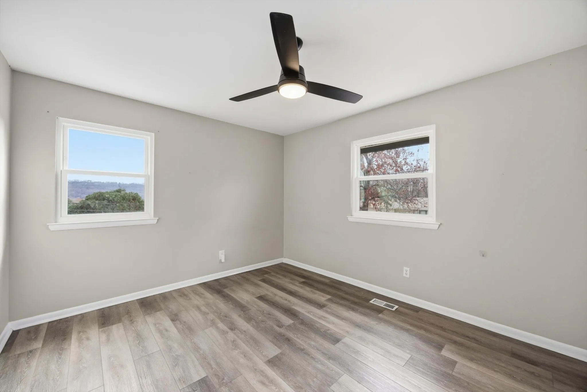 The upper level includes a comfortable primary bedroom with a private bath, along with two additional well sized bedrooms and a second full bath finished in a clean modern style. The lower level adds flexibility with a fourth bedroom, a dedicated laundry room, and direct access to the attached two car garage.