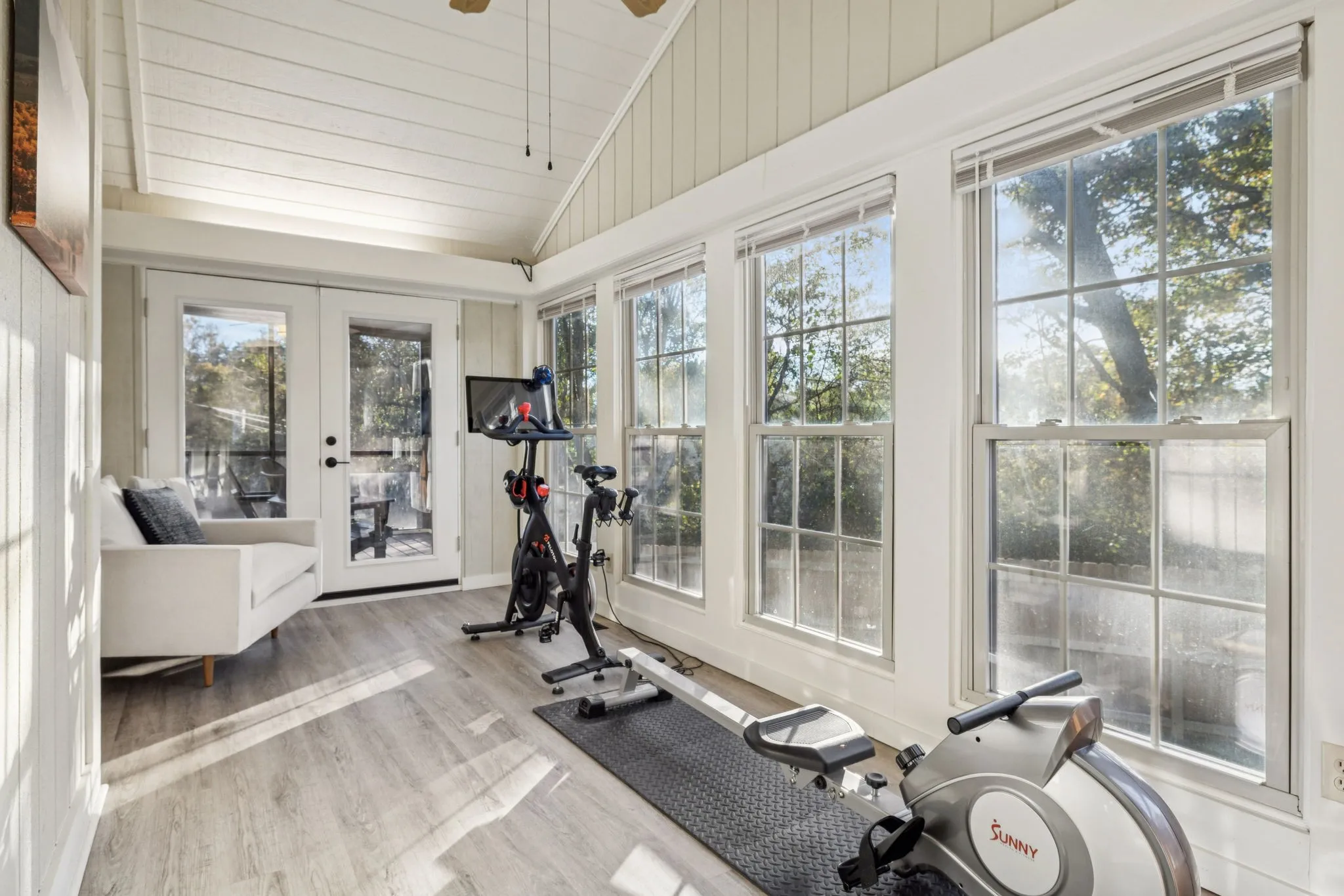 Welcome home to a rare blend of privacy, comfort, and effortless one-level living. Situated on a beautifully landscaped corner lot and backing to peaceful, tree-lined open space, this immaculate residence offers a serene retreat just minutes from everyday conveniences. Soaring vaulted ceilings, hardwood floors, and a warm gas fireplace create an inviting atmosphere for both daily living and entertaining. The thoughtfully designed floor plan includes a formal dining area and a spacious primary suite with direct access to one of two screened porches — ideal for morning coffee or evening relaxation. Multiple outdoor living spaces elevate the experience, including two screened porches, a generous sunroom overlooking the fenced backyard, and a welcoming covered front porch. Whether hosting guests or enjoying quiet moments surrounded by nature, this home delivers versatility and privacy rarely found. Recent improvements include: hardwood floors (2021), metal roof, removed all trees & improved landscaping, kitchen renovation, new light fixtures, new gutters & gutter covers, fresh interior paint (2024), new fence, new water heater, new front porch light (2025), and replaced and sealed exterior decks. HVAC with whole-house filtration (2017), provides added peace of mind. A truly special opportunity for buyers seeking refined, low-maintenance living in a tranquil setting.