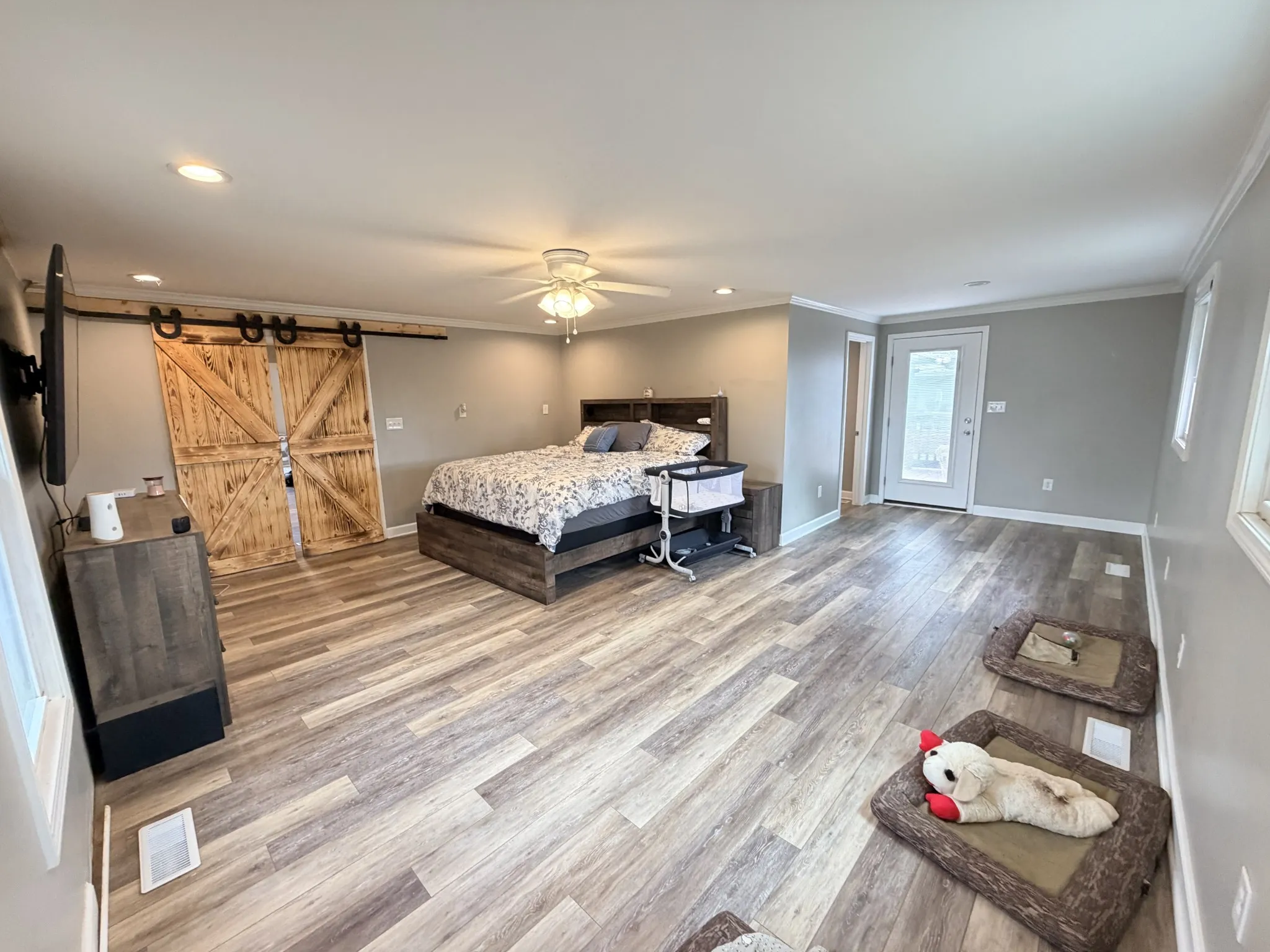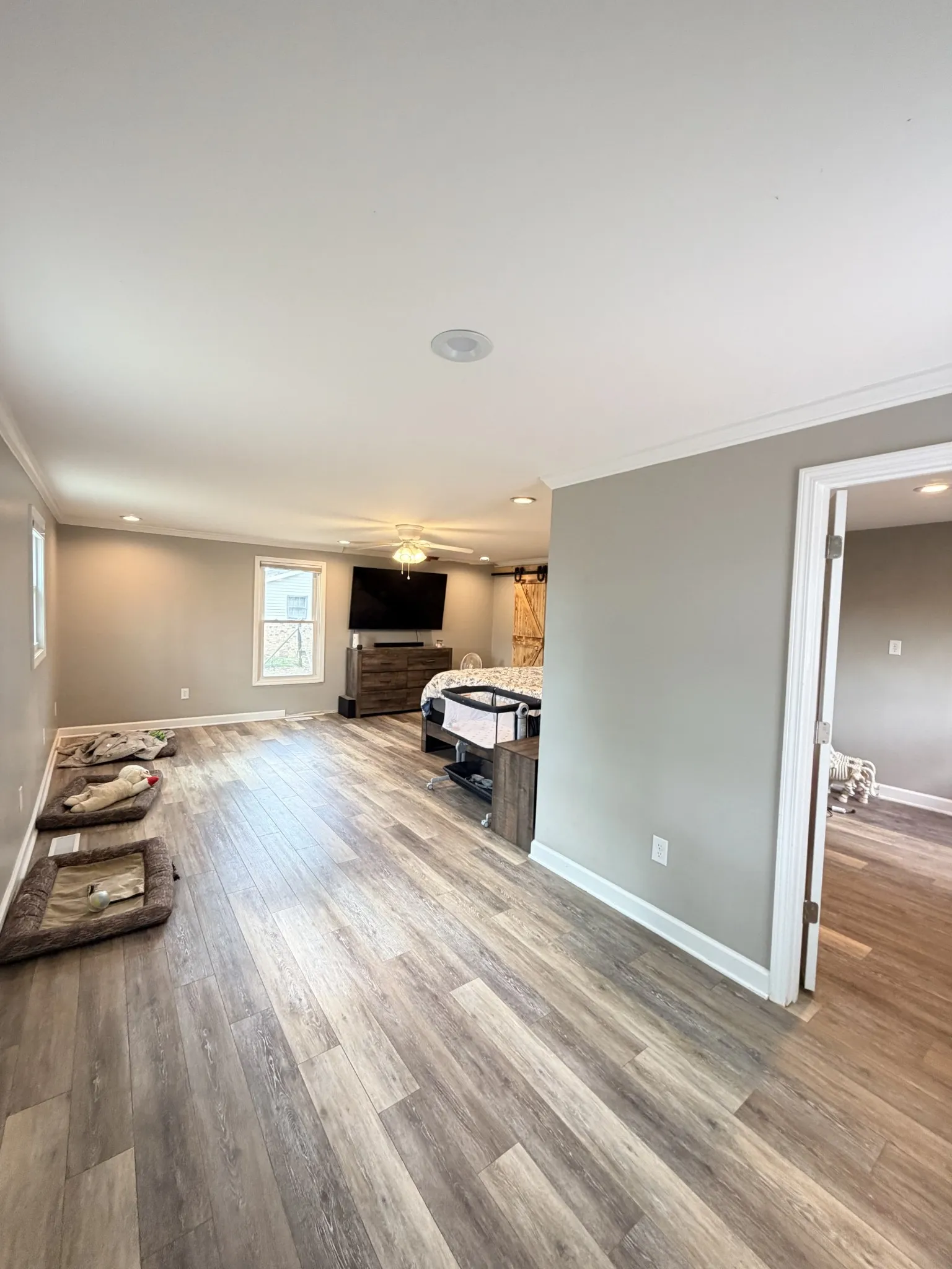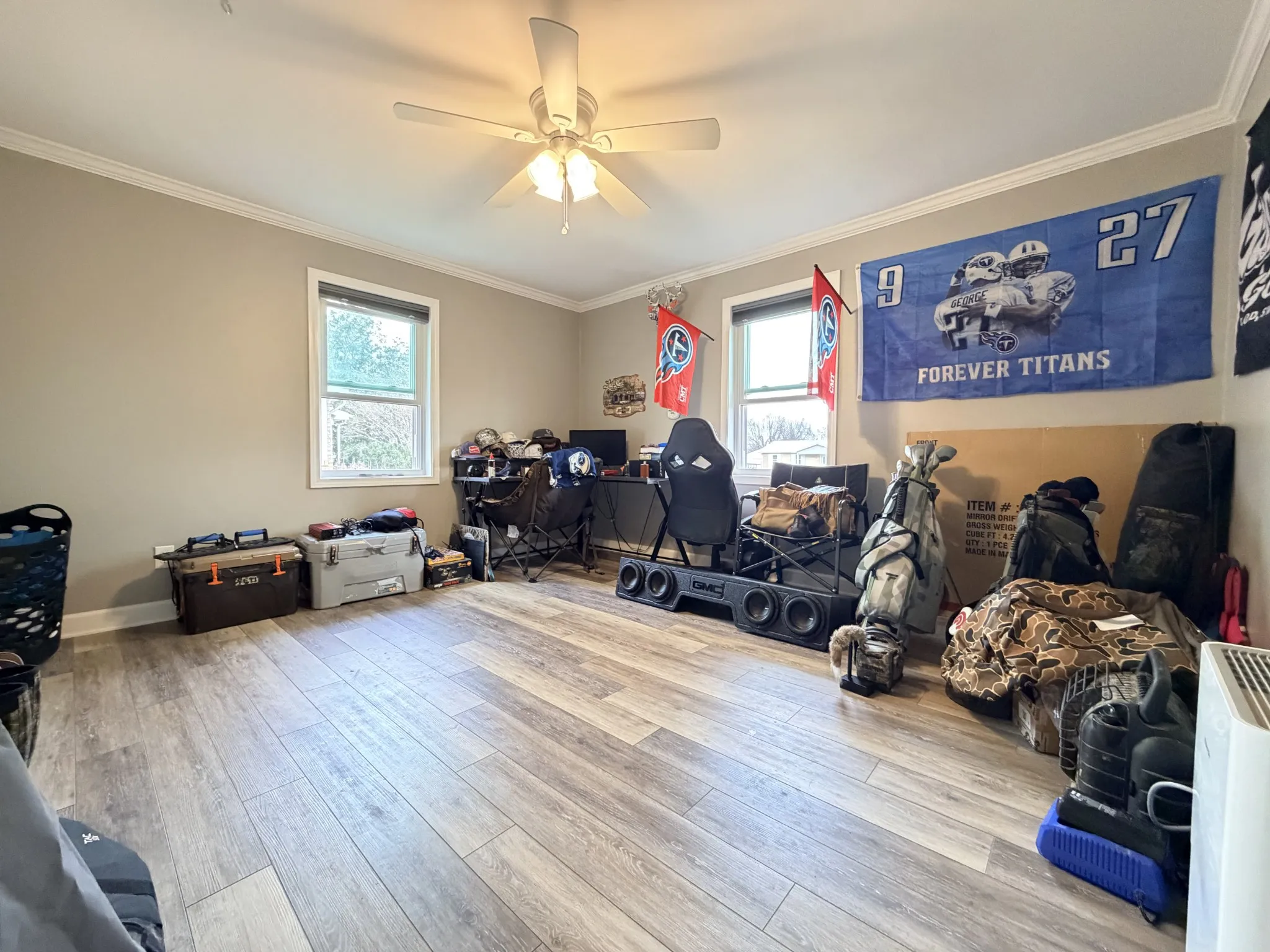 A very large flex room is currently being used as the primary bedroom, offering versatility to suit your needs and there is ample space to turn the bonus room into a walk-in closet or expand to a full bath to creating the perfect primary with en suite.