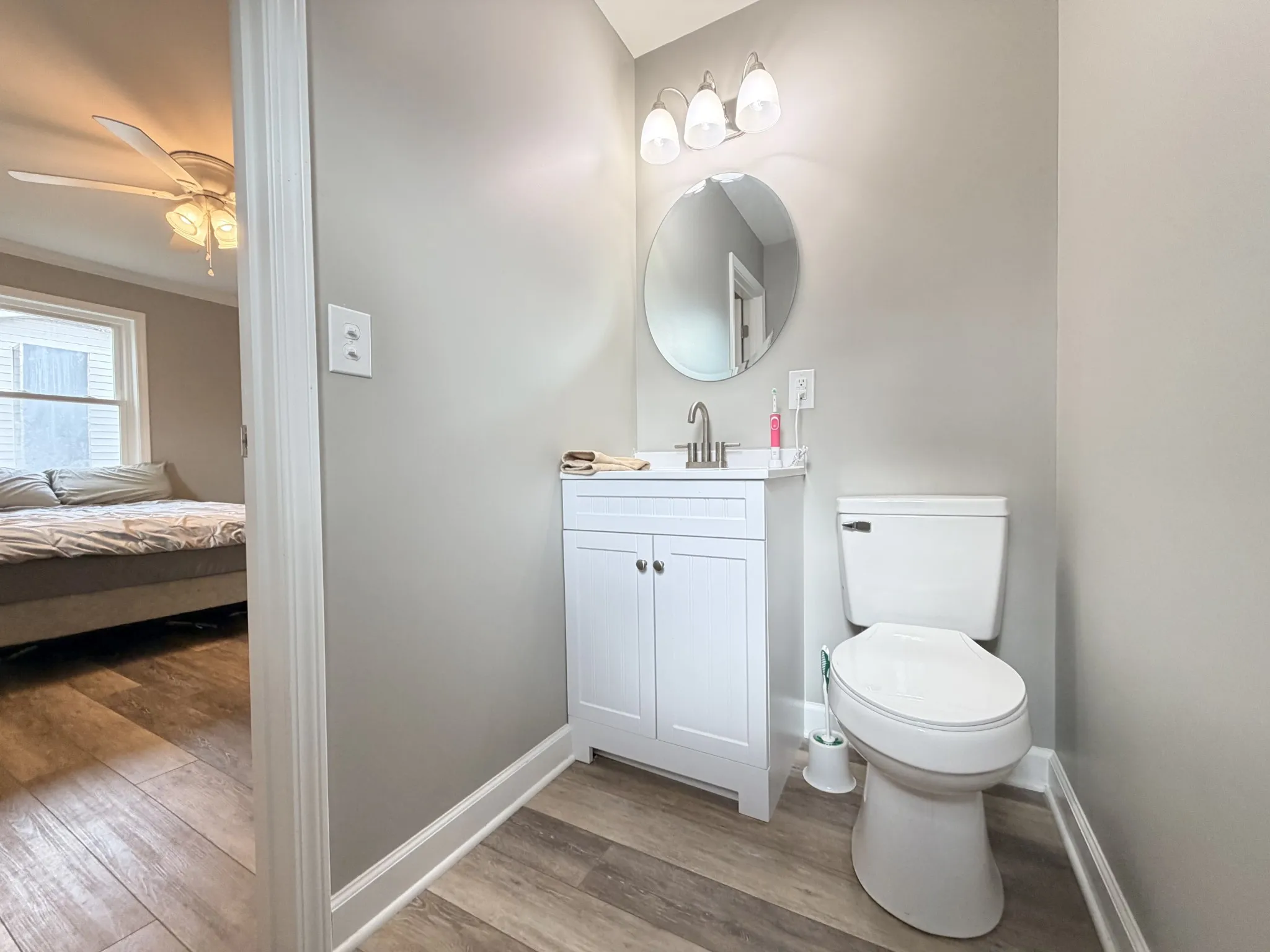 The third bedroom includes a private half bath.