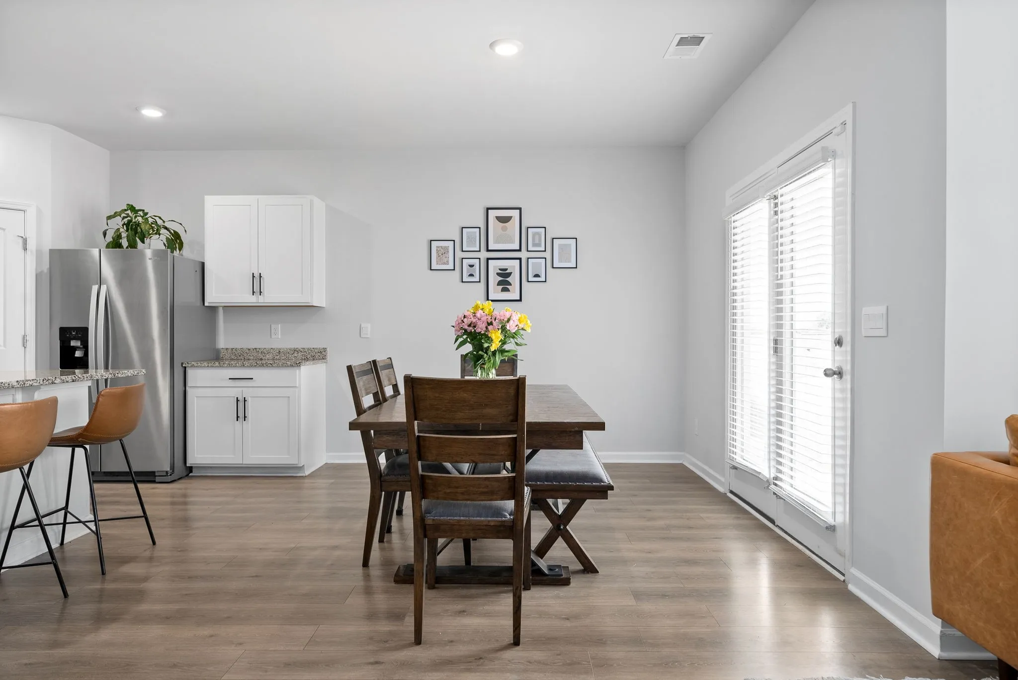 The open-concept design connects the kitchen, dining area, and living space, creating an easy flow that works well for hosting or day-to-day living. All four bedrooms are situated on the main level, offering the convenience of a true one-story layout without the need for stairs.