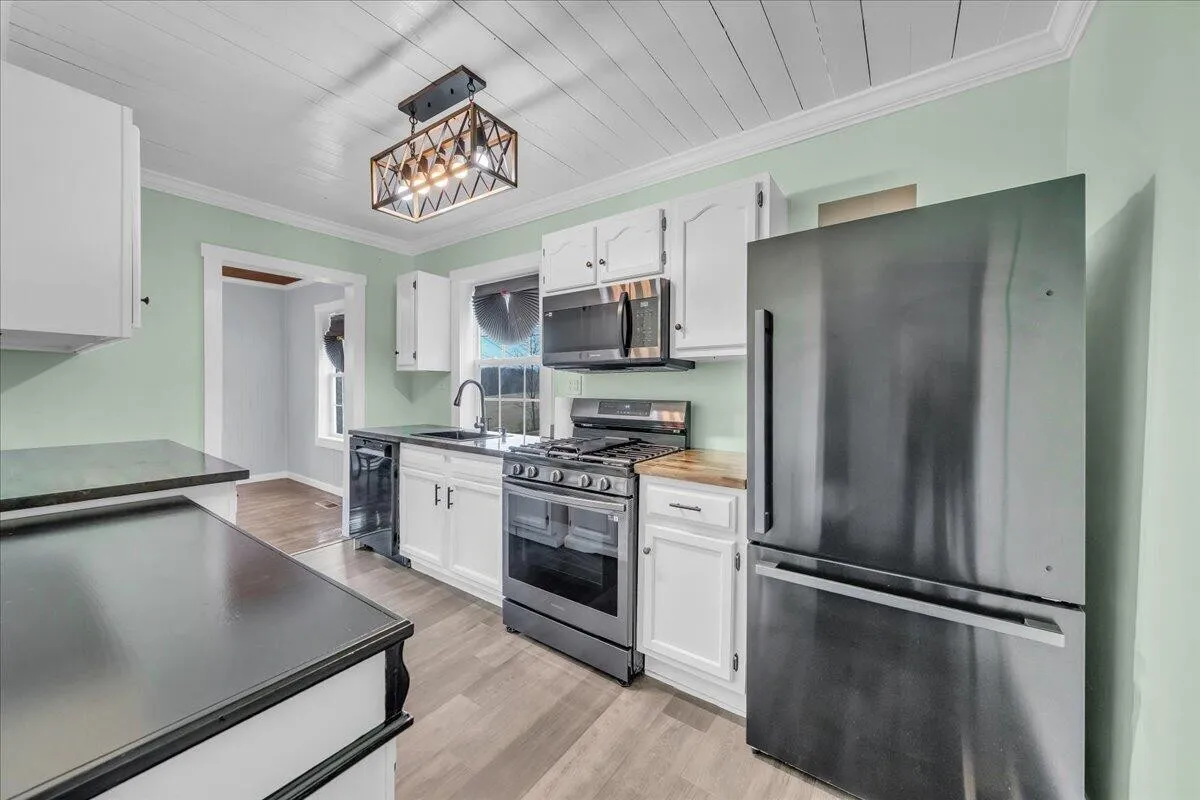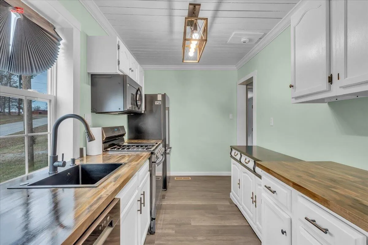 The heart of the home is the spacious, updated kitchen, designed for both functionality and style. You’ll love the abundance of countertop space, highlighted by gorgeous butcher block countertops that offer plenty of room for cooking, baking, and entertaining. The kitchen also features brand-new appliances and a gas stove, making it ideal for home chefs and gatherings alike.