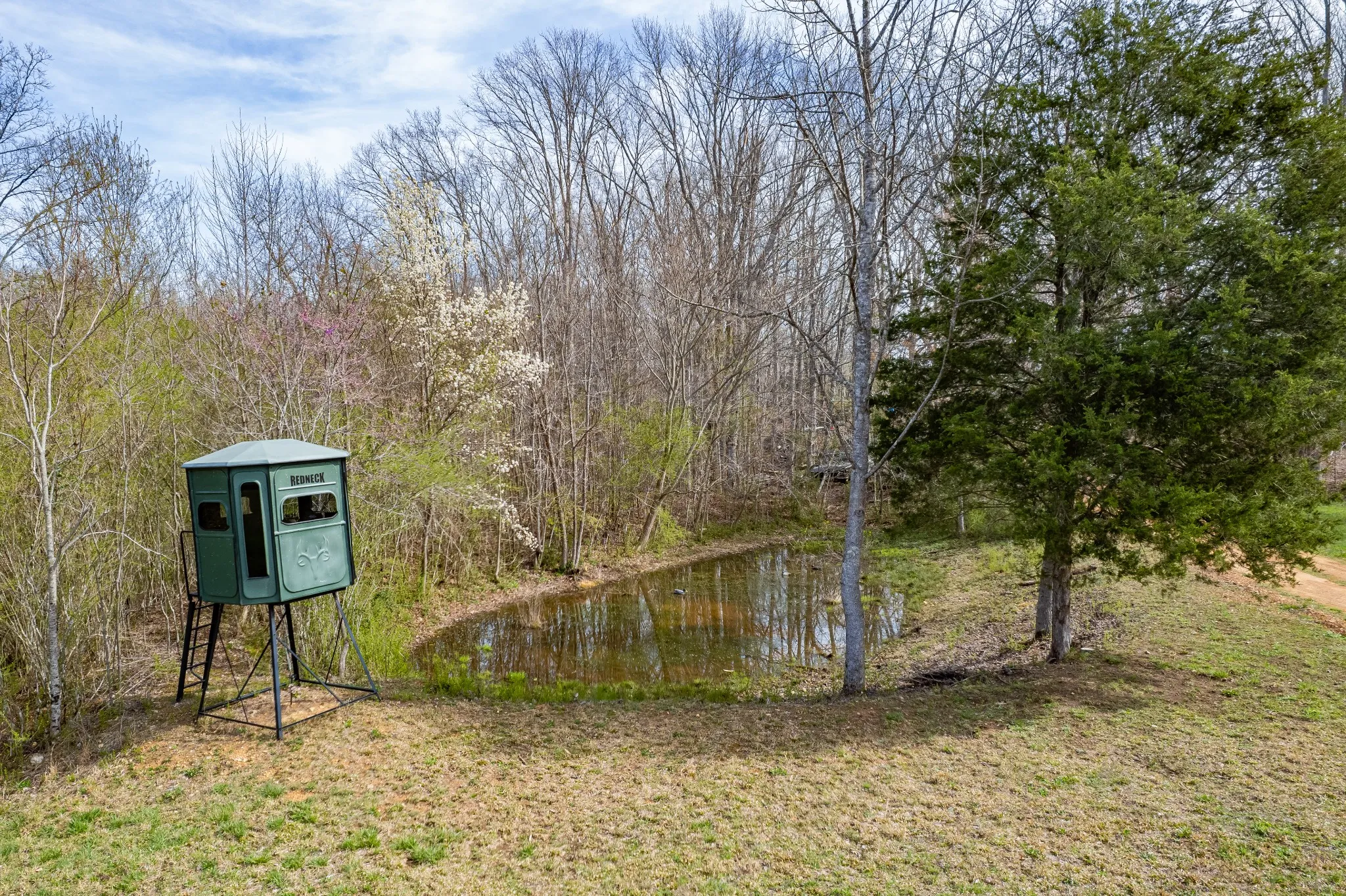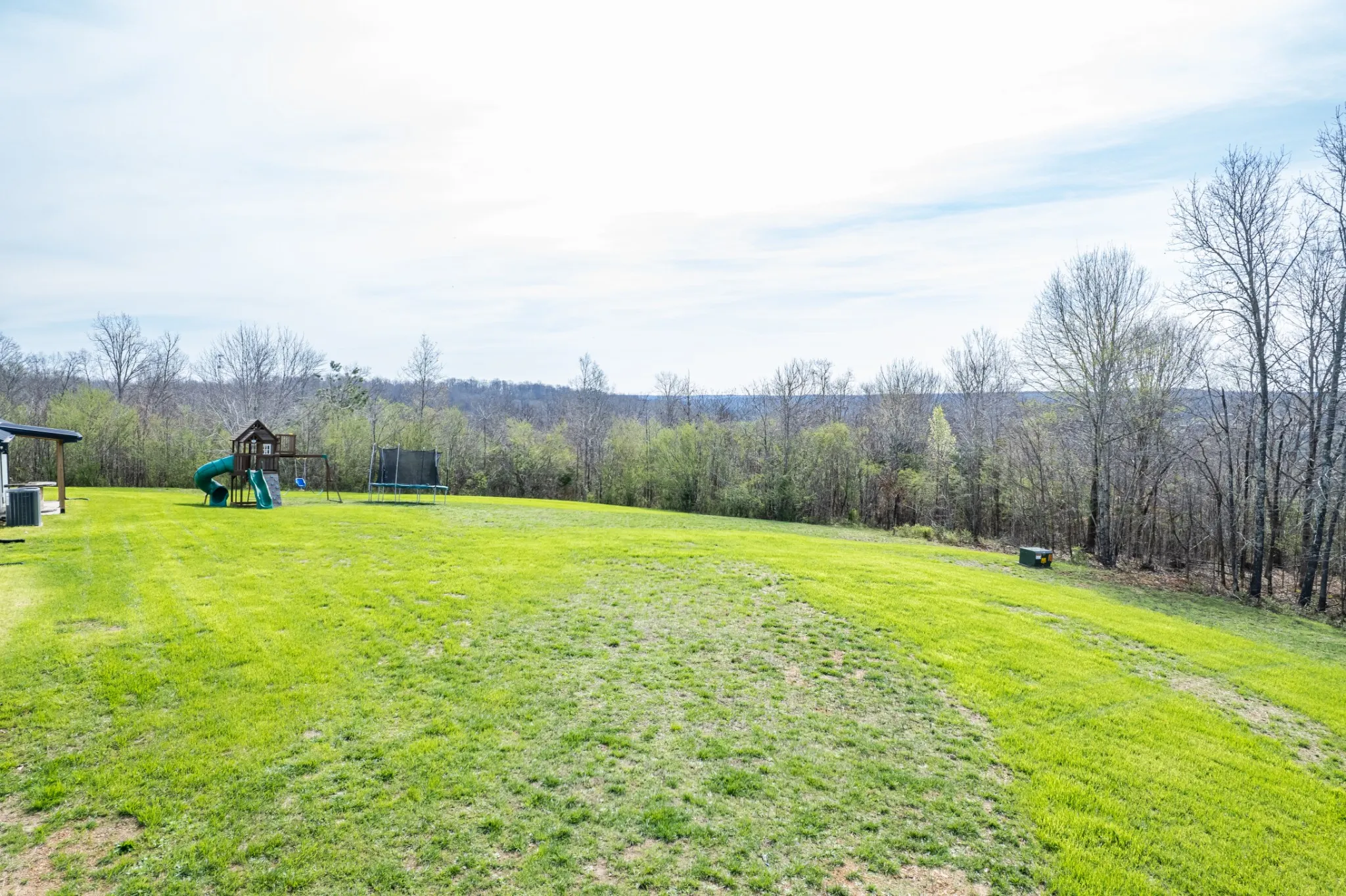 - Lot Features: Level, Wooded, Rolling Slope