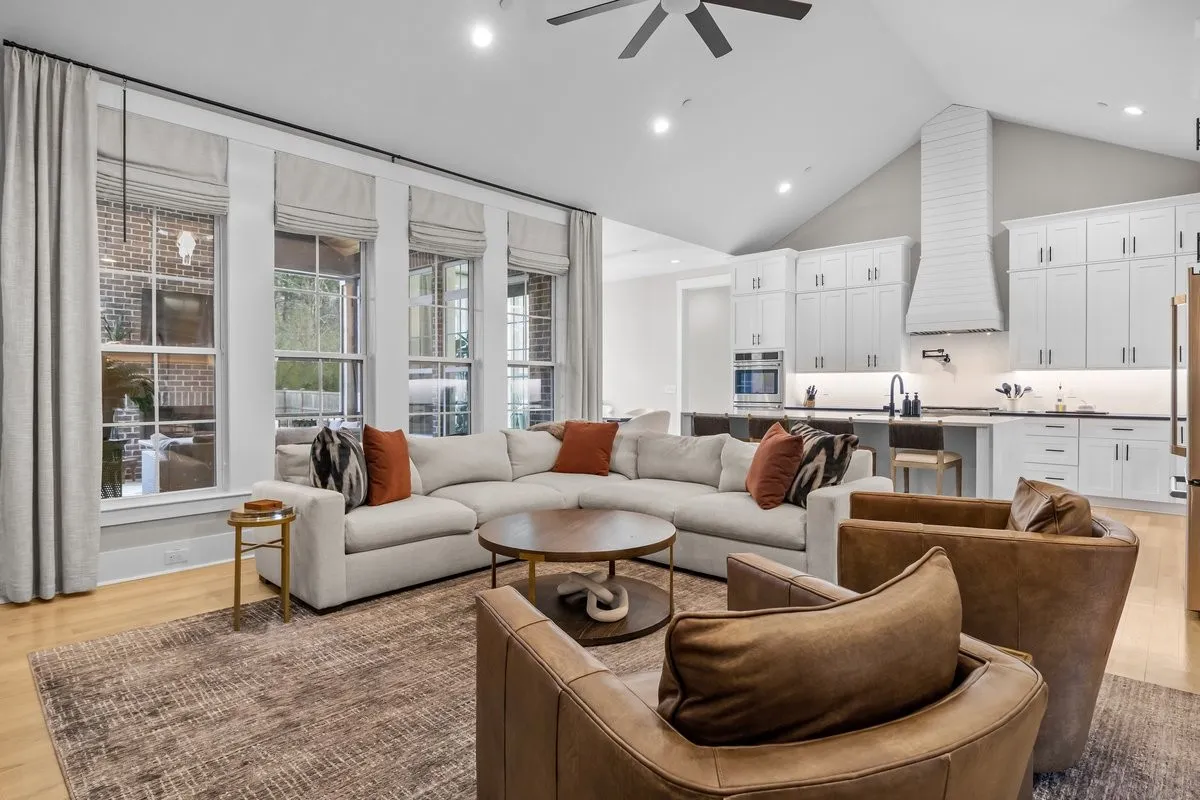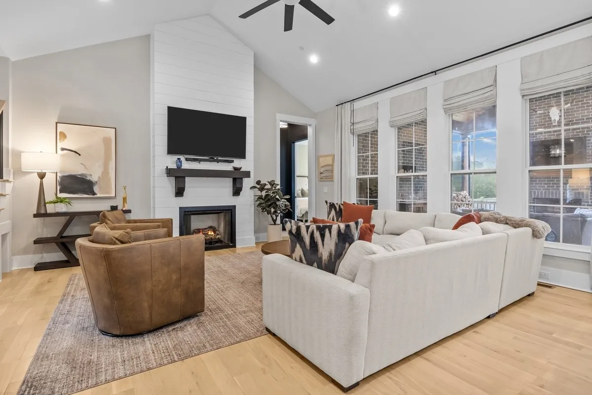 Experience elevated living in this like-new all-brick residence built in 2023, located in highly desired Harpeth Meadows community. A spacious aggregate concrete driveway & side-entry 3-car garage provide exceptional curb appeal & ample parking, while the covered front porch welcomes you into the well-appointed home. The open-concept floor plan is filled with natural light & refined details. The living room is anchored by a gas log fireplace & enhanced with custom drapery, while a charming custom pet nook with automatic lighting is tucked beneath the staircase. The gourmet kitchen serves as the centerpiece of the home, featuring a massive island, built-in gas range with wall-mounted pot filler, stainless steel appliances, double ovens, & abundant cabinetry reaching soaring ceilings. A spacious walk-in pantry includes a wet bar & wine fridge, while the kitchen flows seamlessly into the formal dining area. The main-level primary suite offers a luxurious retreat with a spa-inspired bath featuring a custom walk-in shower, tub, double vanities, & an expansive walk-in closet with its own washer & dryer hookups. A second main-level bedroom suite with private bathroom & walk-in closet provides the perfect setup for multigenerational living or guests. Upstairs features a spacious bonus/rec room with full bath, 2 bedrooms connected by a Jack-and-Jill bath, & a versatile office that could serve as a 5th bedroom. Enjoy outdoor living on the newly screened-in back patio with a wood-burning fireplace with gas starter. The backyard is enclosed with a cedar privacy fence. Highlights include a tankless gas water heater, Halo whole-house water filtration, spray-foam insulation & roof decking, encapsulated crawlspace, main laundry room, & half bathroom for guests. Residents enjoy resort style amenities: pool, clubhouse, playground, tennis courts w/ pickleball lines, scenic trails, and river access to the Harpeth River. Furniture & TVs negotiable outside contract. Video linked below!
