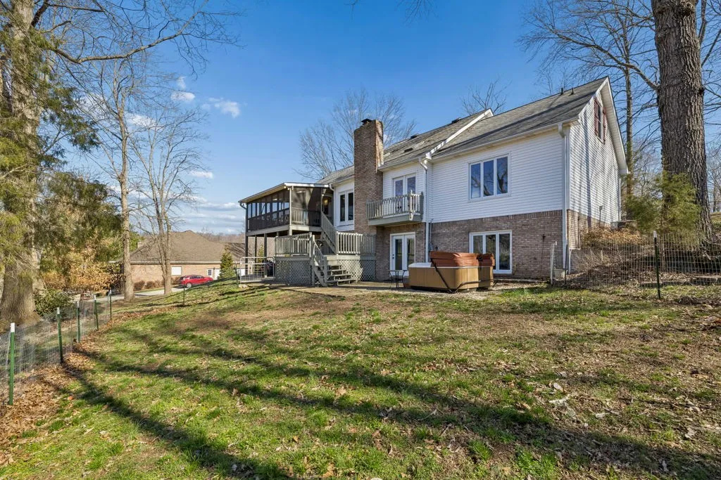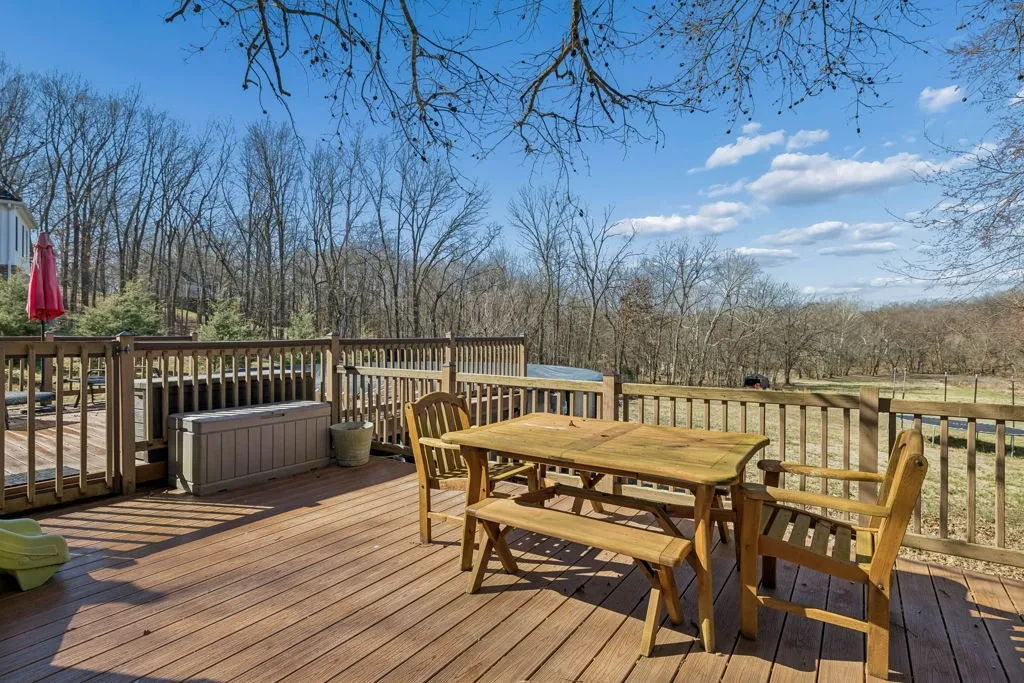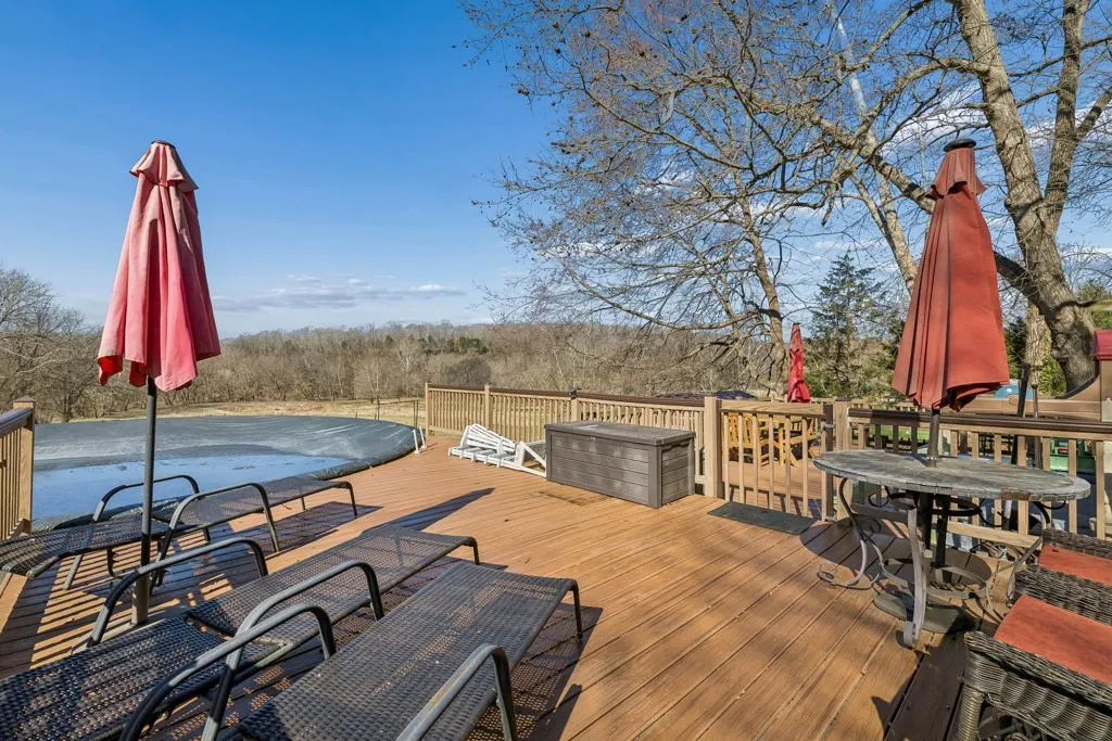 Outdoor living shines with an above-ground pool wrapped in a massive deck with private bridge entry, hot tub retreat, fire pit area, storage shed, RV hookups and mature trees. Nearly 4 acres back to the Red River for canoeing, fishing, or floating. No city taxes. Prime location in Bradbury Farms with quick access to Exit 11, the interstate, Nashville, and post.