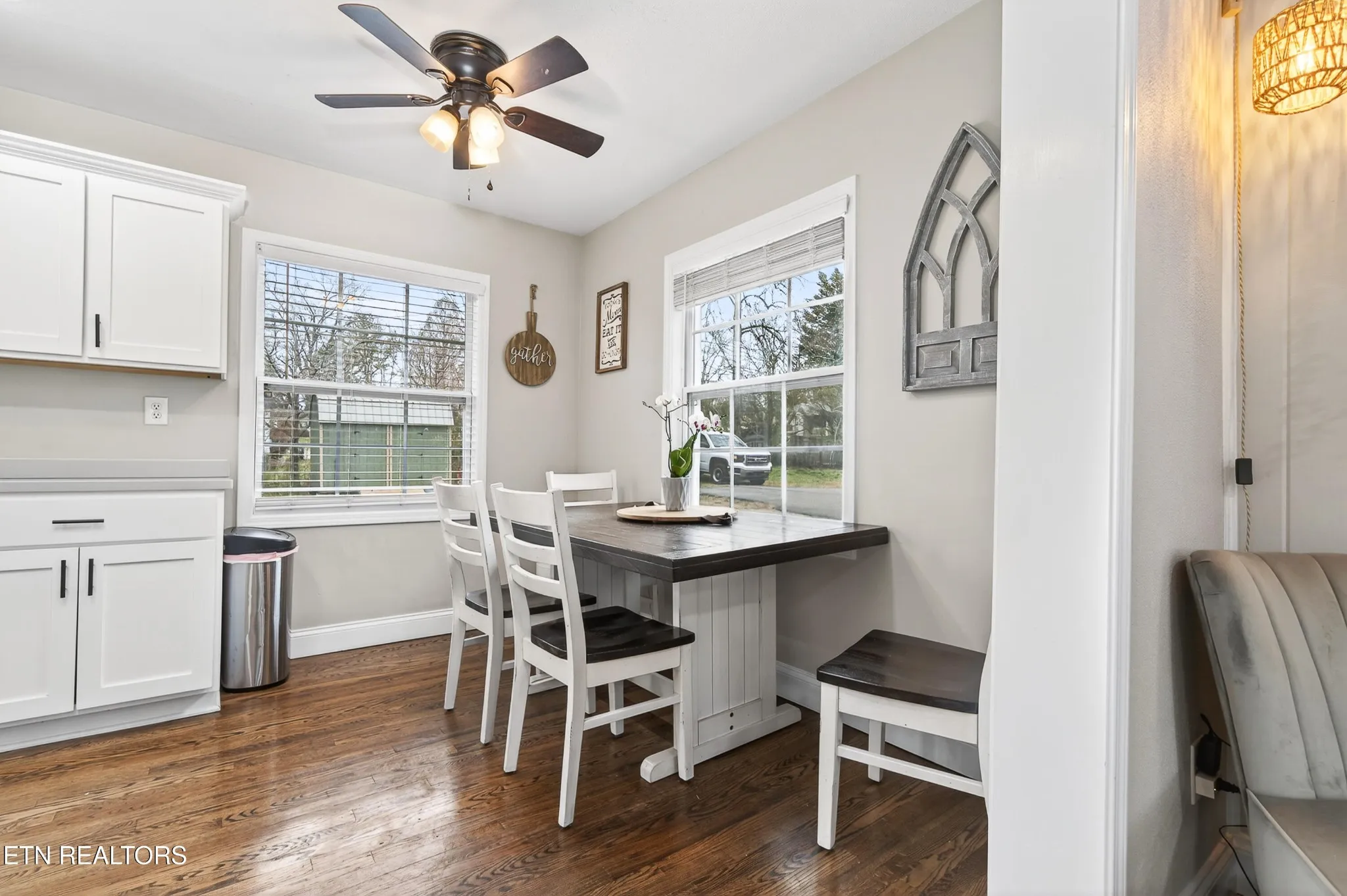 Step back in time without sacrificing a single modern convenience. This stunning 1952-built cottage at 120 Mitchell Street is loaded with curb appeal, featuring custom-built window boxes and a welcoming covered front porch. Inside, you’ll find 1,253 sq. ft. of meticulously maintained space anchored by beautiful hardwood flooring and a spacious living room centered around a cozy wood-burning fireplace. The heart of the home is the fully updated kitchen, boasting sleek quartz countertops, premium stainless steel appliances, a built-in pantry, and a bright eat-in area. The true showstopper is the private primary suite, which spans the entire second floor for ultimate privacy. Enjoy crisp Tennessee mornings on the large open back deck overlooking a prime downtown lot. Character, updates, and location–this home has it all!