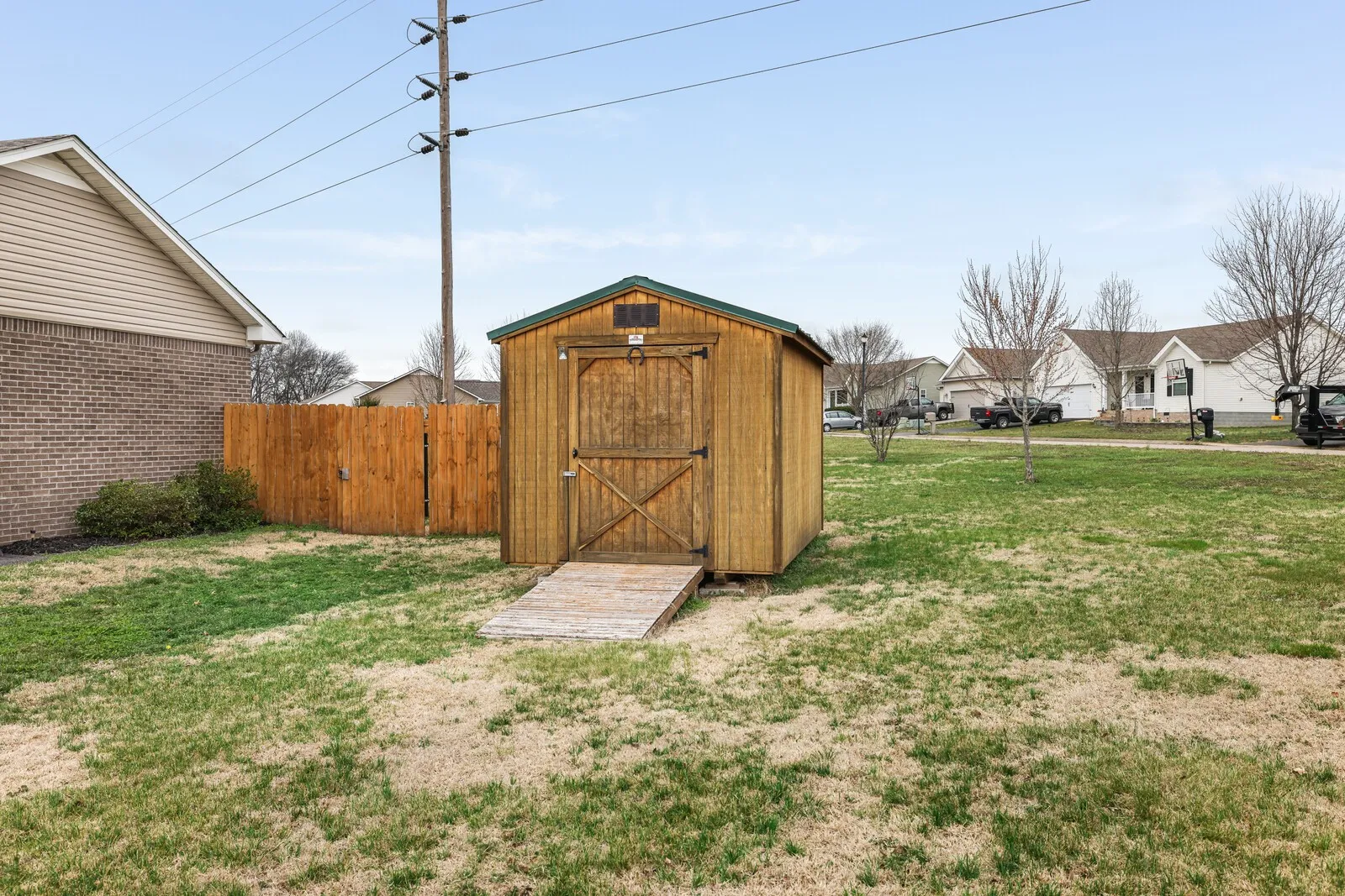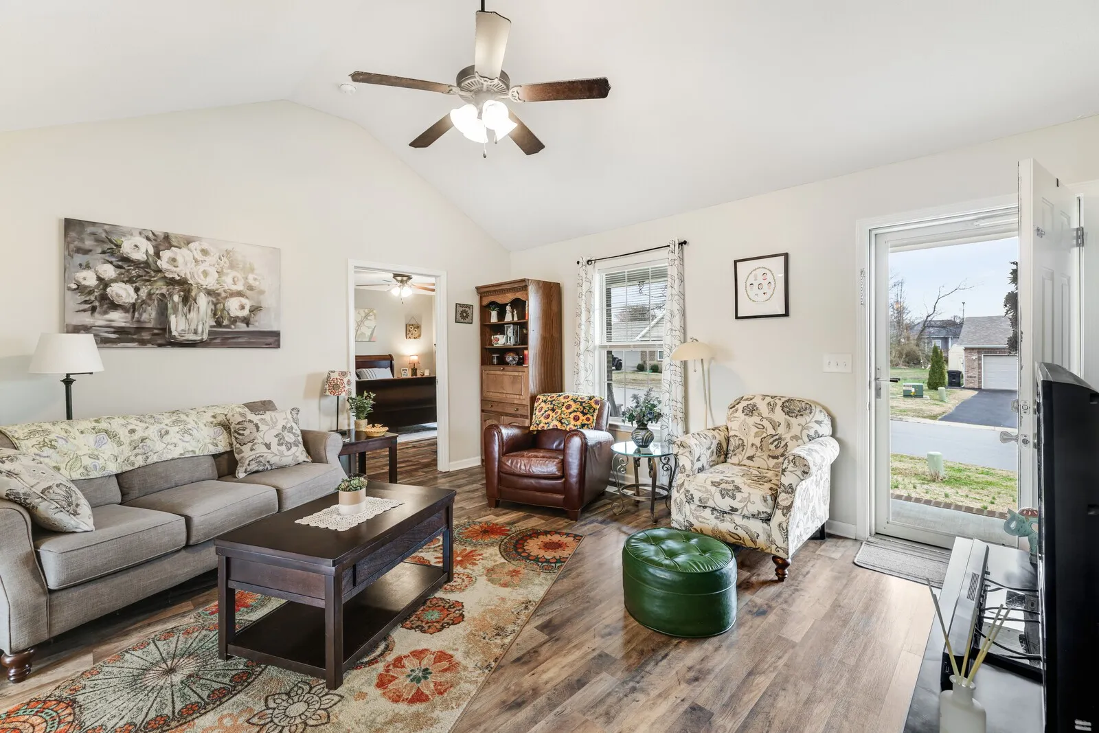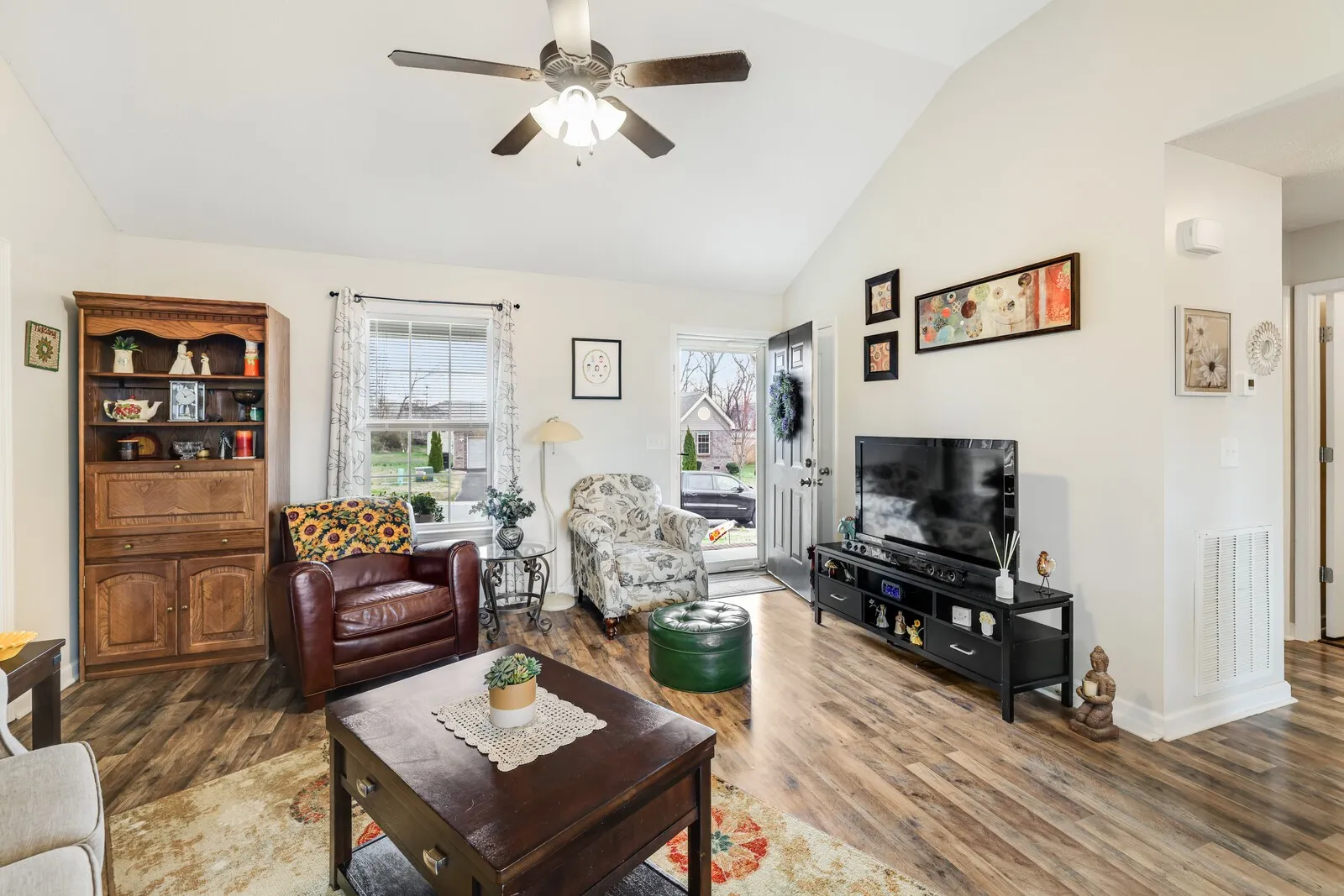 Welcome home to this charming 3-bedroom, 2-bath residence offering 1,256 square feet of comfortable living space and a functional layout designed for everyday living. A welcoming covered front porch sets the tone as you step inside to a bright living room with vaulted ceilings that create an open and airy feel. The kitchen flows easily into the attached dining area, where sliding glass doors lead directly to the back deck, perfect for enjoying morning coffee, grilling, or entertaining guests. The primary bedroom is conveniently located just off the living room and features a private en-suite bathroom. Two additional guest bedrooms share a full hallway bathroom, offering flexible space for family, guests, or a home office. Outside, the spacious fenced backyard provides plenty of room to relax, play, or garden, and includes a storage shed for tools, lawn equipment, or extra storage needs. With inviting living spaces and a generous outdoor area, this home offers comfort, convenience, and plenty of potential to make it your own. Up to 1% lender credit on the loan amount when buyer uses Seller’s Preferred Lender.