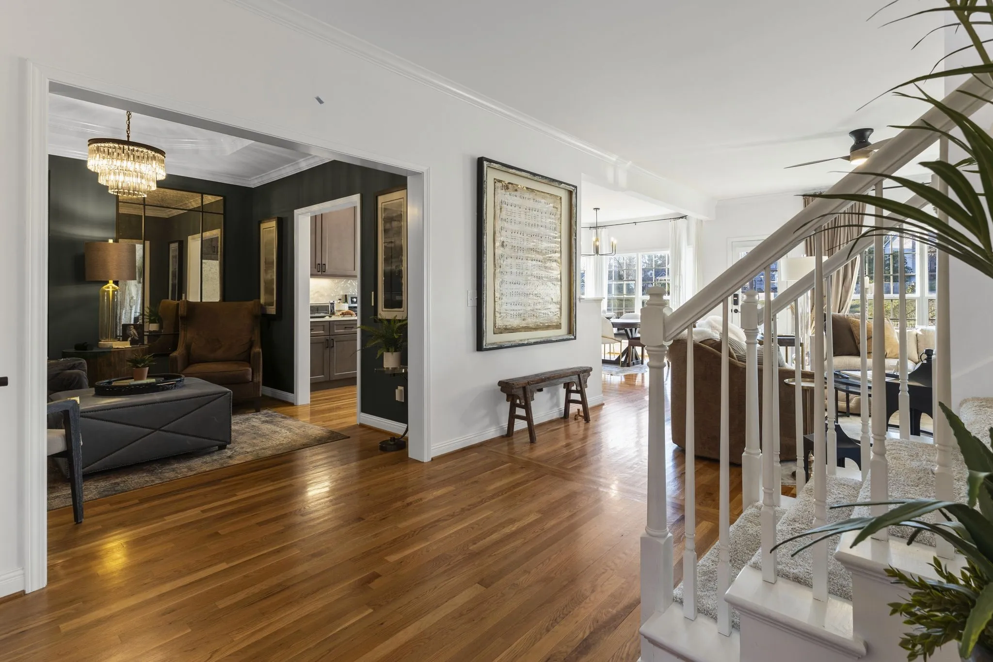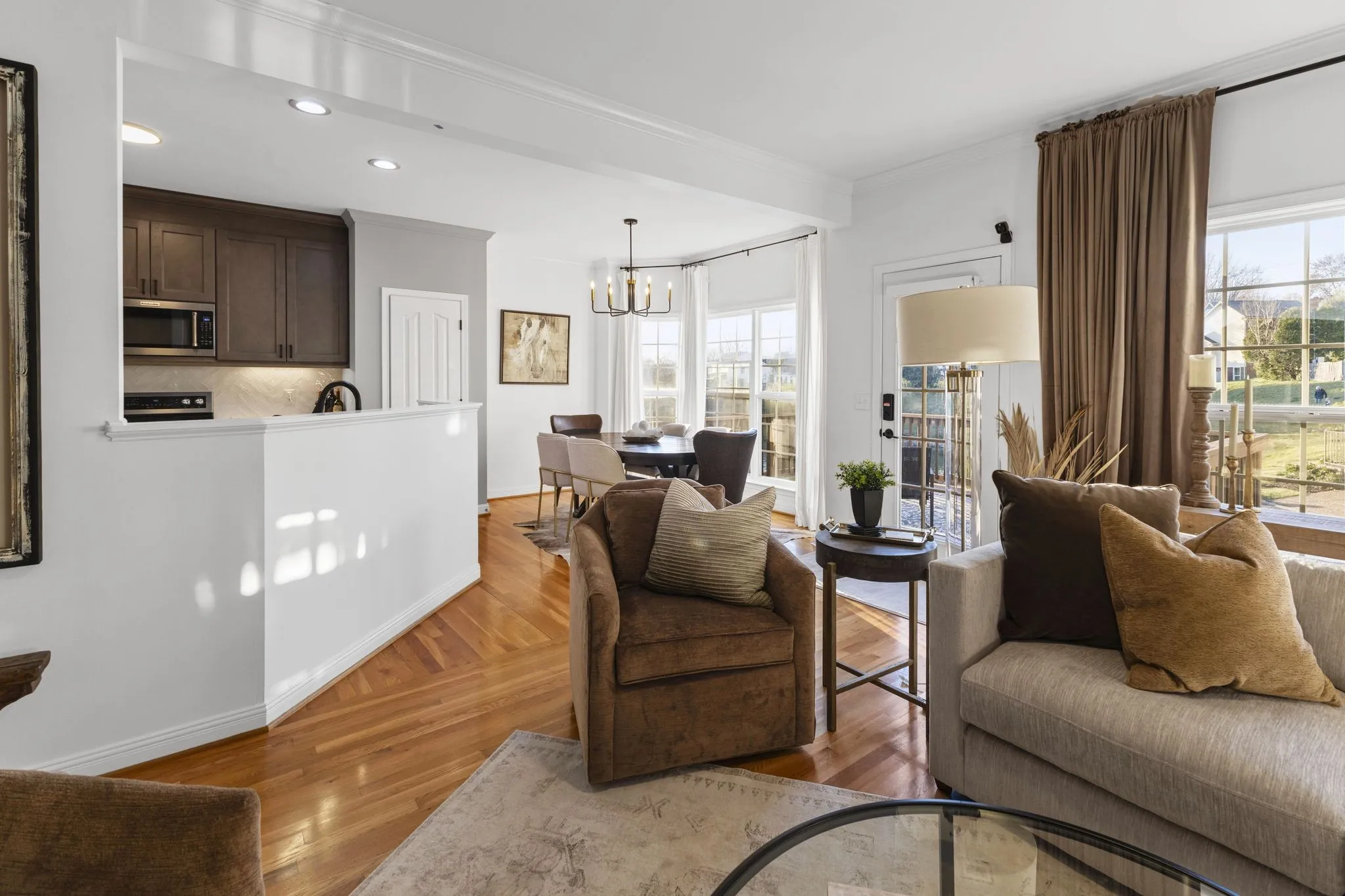 Gorgeous end-unit townhome in desirable Franklin offering scenic views of the community lake! Thoughtfully updated throughout, the home features a beautifully renovated kitchen with custom cabinetry, new sink, designer backsplash, updated lighting, and new appliances. The spacious primary bath has been completely reimagined with a large walk-in shower, stylish vanity area, wood-plank tile flooring, modern cabinetry, and decorative storage shelving. The secondary bath has been refreshed with new flooring and vanity, while the main-level half bath includes an updated sink, mirror, and lighting. Fresh interior paint and updated lighting throughout give the home a crisp, contemporary feel. Additional updates include a new water heater and a 5-year-old roof. Vivint security monitoring equipment to remain ($2,100 value). A move-in ready home with tasteful, modern upgrades throughout! Water softner/purifier stays with the home..