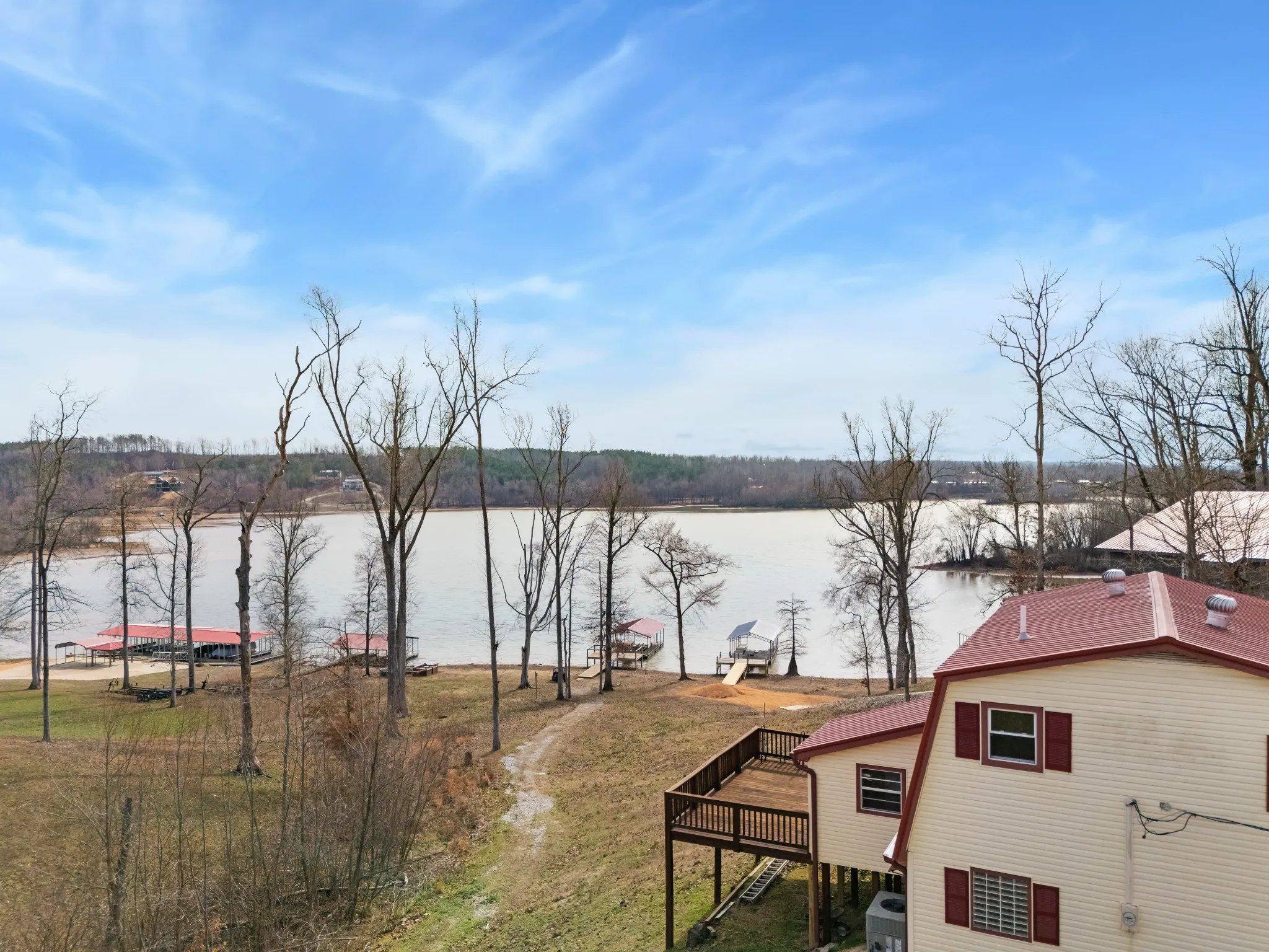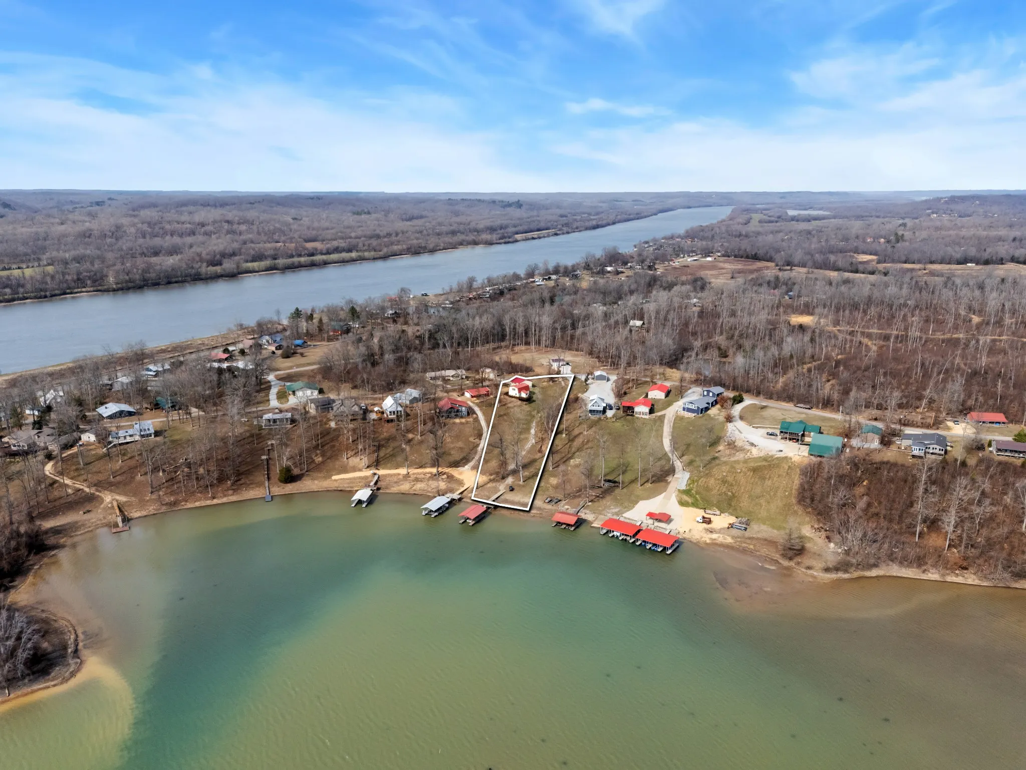 Lake house living with a quick weekend getaway only 1.5 hours from Nashville, Brentwood, Franklin. Make your weekends on the water a dream come true. Tucked away on a private cove on the TN River, just off the main channel with an owner’s dock and impressive lift system, 30×30 garage, and community launch ramp. Upgraded all to PEX plumbing in crawl space and water heater and bathroom sinks, 2025 New Anderson back door, HVAC 2021, new deck and flooring added 2020, new 30 gallon water heater 2025, new carpet 2025, and fully encapsulated crawlspace. Septic pumped 2025. Home can be sold furnished as an option.