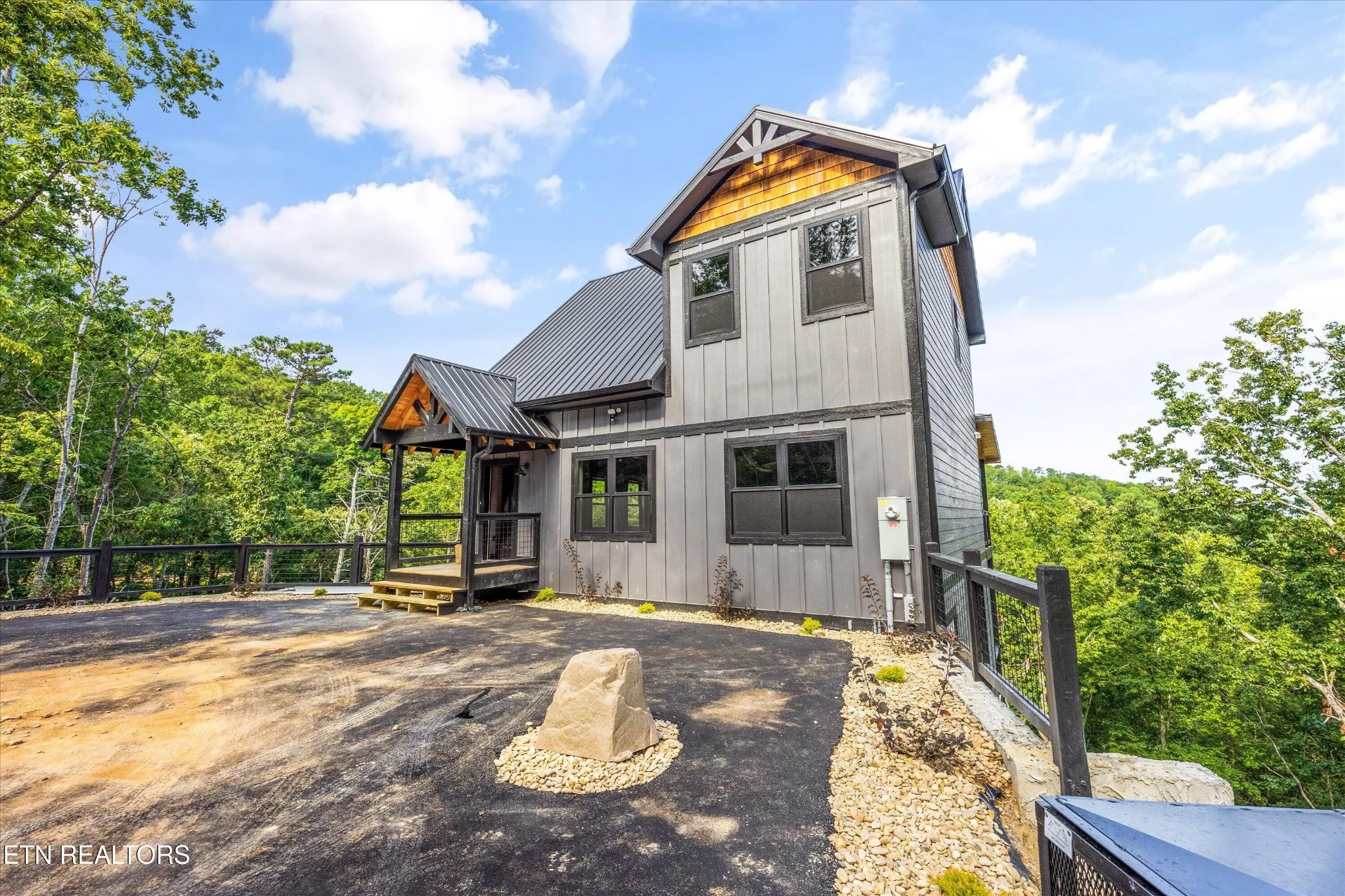 Brand-new and beautifully designed, this modern three-story cabin in the gated Shagbark community offers both style and comfort with stunning mountain views as your backdrop.