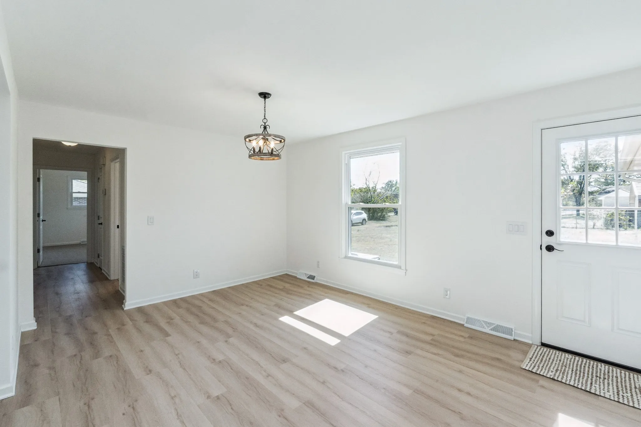 Don’t miss out on this all-brick fully renovated home with great finishes and many brand- new features. The exterior includes a new gravel driveway, new front windows and landscaping. Step into an open floor plan with new LVP flooring and paint leading into the formal living room, dining room and kitchen. The kitchen is decked out with stainless steel appliances, new cabinets and new quartz countertops. The bedrooms have new carpet, fresh paint, large closets and a fully upgraded shared bath with a double vanity, ceramic tile bath/ shower combination, and LVT flooring. The master bedroom features half a bath and a large closet. Adjacent to the kitchen, you have a big bonus/or den with a laundry room, but there’s more. The den continues into additional space giving ample amount of space for playrooms, office, storage, gym etc. The options are endless. This property is conveniently located in the city of Lebanon, minutes away from the interstate for commuters.