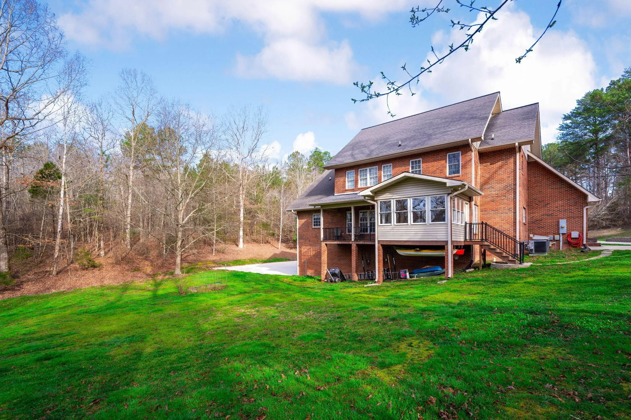 Stunning 4 BR 3 1/2 BA all brick home with a concrete driveways on 5+ acres. The living area features a newly finished basement. LOCATION is key! This home is tucked away in a beautiful and secluded area, yet in the heart of Dunlap. The home has natural hardwoods throughout, with tile in the bathrooms, abundant natural lighting, and an open floor plan perfect for entertaining. The living room features a vaulted ceiling, a gas fireplace and opens to the kitchen, and has doors that open to allow you access to the covered deck. The covered deck has trex decking and is the perfect spot to enjoy your morning coffee in peace and serenity. The kitchen features custom cabinets, granite counter tops, stainless steel appliances, tile backsplash, and an eat-in kitchen area. There is also a separate dining room off the kitchen, perfect for those big family holidays. Off the kitchen is a beautiful sun room, which is also accessible to the covered deck..