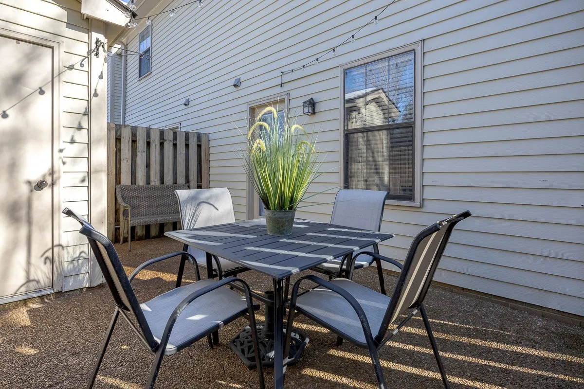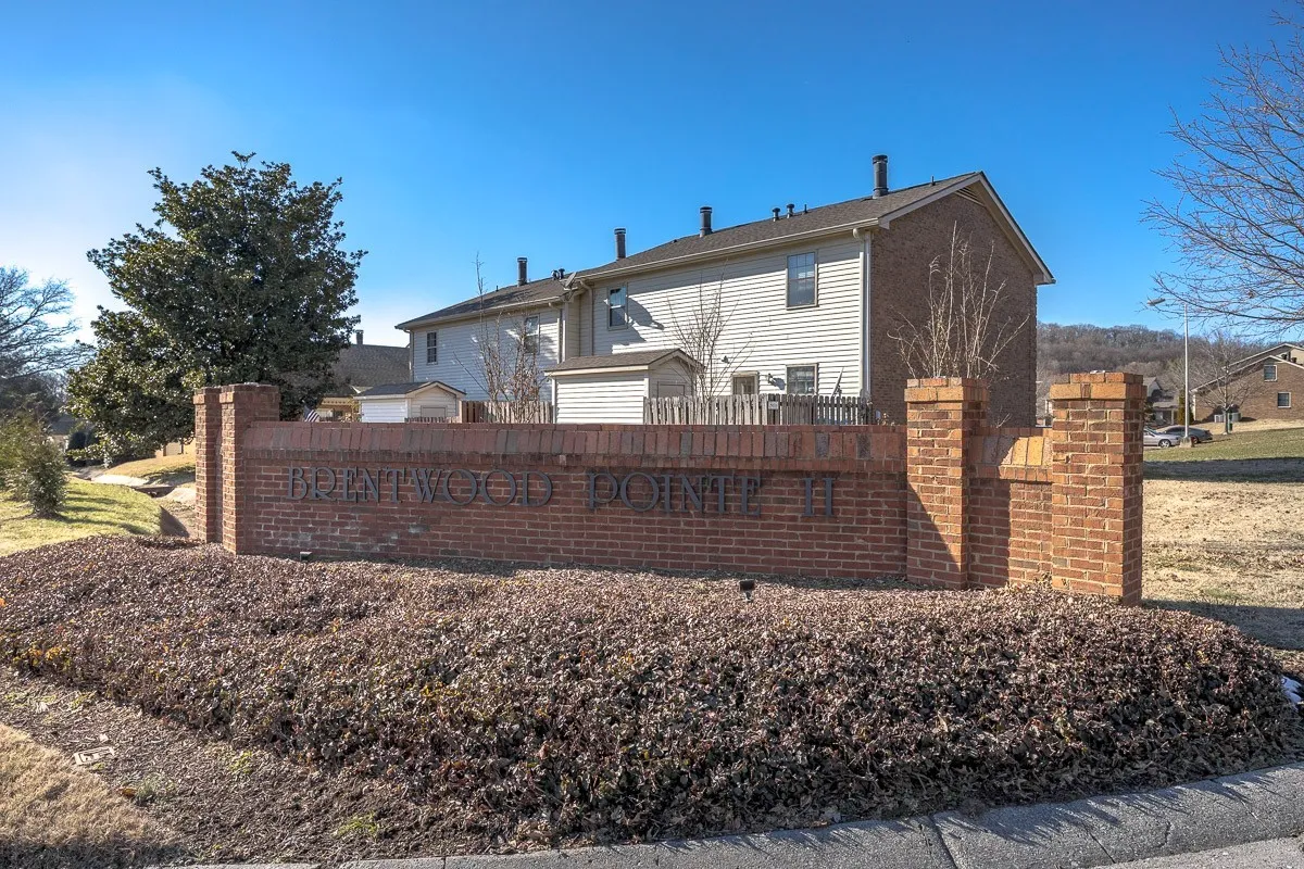 Cute & cozy TURN KEY END UNIT townhome in the desirable B’wood Pointe community! Beautifully updated and move in ready. The main level features newer (2021) LVP flooring, a gas fireplace with built-in bookshelves and a charming powder room. The kitchen offers white cabinetry, new faucet, granite countertops, tile backsplash and black appliances including refrigerator, range, dishwasher and microwave. Heading upstairs you have hardwood treads and new carpet (2025) in the hall and bedrooms. The PRIMARY BATHROOM was completely renovated in February of 2026 and is absolutely STUNNING, featuring a floor-to-ceiling tiled shower, a new double vanity, fixtures, mirror, tile flooring and toilet. Additional highlights include 2″ blinds throughout, new ceiling fans and light fixtures, extra closets, attic with pull-down ladder for ample storage, and a private patio with storage shed. Very private setting. New storm door will be installed. The location is killer because you are so close to shopping and the interstate and zoned for the best schools in Williamson County. (Professional pics of baths are coming)