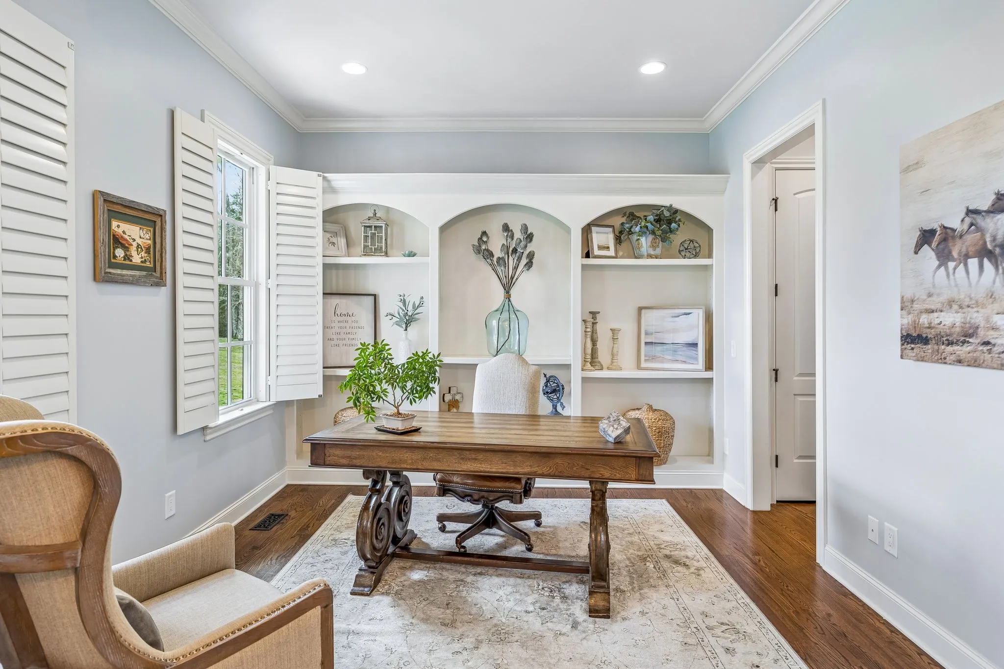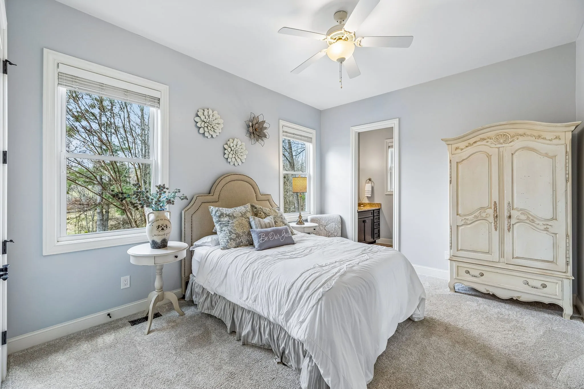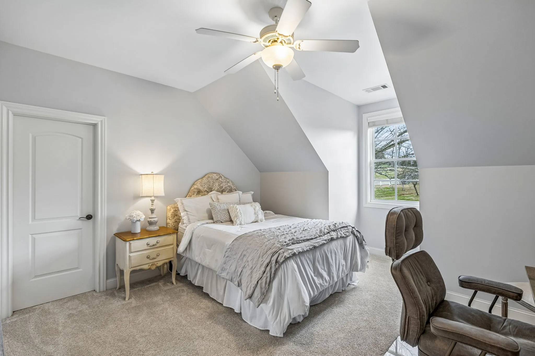 This inviting home features an open floor plan with 4 bedrooms and 4.5 bathrooms, offering plenty of space for both everyday living and entertaining. The primary suite is located on the main level and includes a cozy seating area surrounded by windows that bring in abundant natural light and showcase the surrounding countryside. A private guest suite is also conveniently located on the main level and thoughtfully positioned on the opposite side of the home.