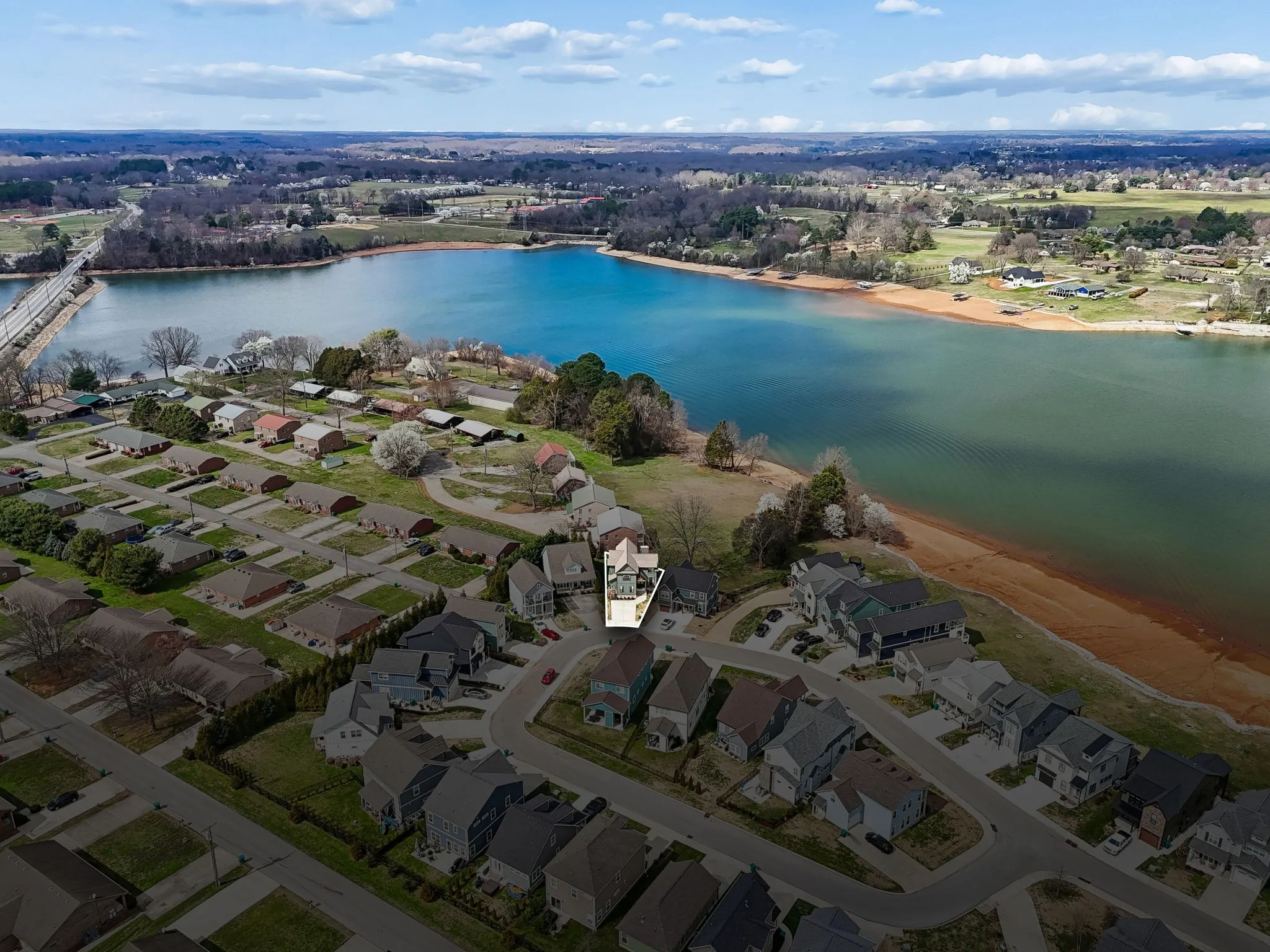 Rare lakeview opportunity in the sought-after Barefoot Bay gated community on Tim’s Ford Lake. Currently operating as a successful short-term rental with strong financial performance, this beautifully designed home offers stunning views of the lake and a relaxing screened-in porch—perfect for morning coffee, watching your favorite sports, or enjoying peaceful evening sunsets. The spacious main-level primary suite provides comfort and convenience, while the upstairs includes two additional bedrooms, a bunk room, and a full bath, making it ideal for hosting family and guests. Custom built by Southeast Builders and professionally decorated, this turn-key property is move-in ready and designed for effortless lake living. Additional features include HOA-covered lawn care for low-maintenance living, air-controlled storage for recreational equipment, a gas line ready for an outdoor fireplace or grill, and Rockwool insulation above the kitchen for added noise control. Residents enjoy exclusive community amenities including a lakefront pool, kayak and paddleboard launch ramp, private streets, and sidewalks that make it easy to experience every aspect of lake life. The home is located just minutes from downtown Winchester, where you’ll find local favorites like Walnut Hill Coffee Company, Filo’s Tavern, and Jefferson’s, along with charming shops and the historic Oldham Theatre. For boating and water recreation, Twin Creeks Marina is just 2.1 miles away, making this home the perfect blend of comfort, convenience, and lakefront lifestyle.