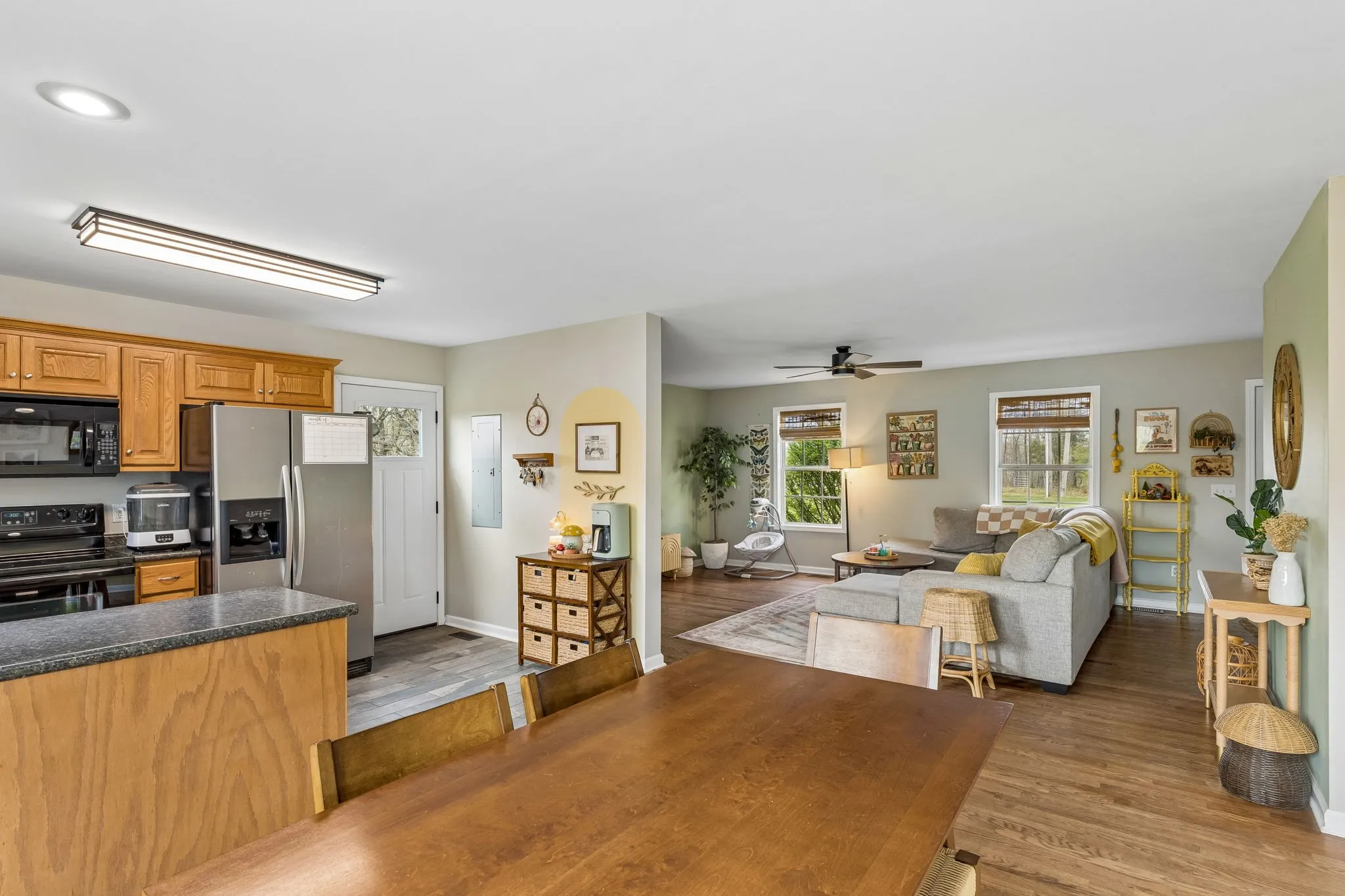 Charming home on 2+ acre corner lot, fully fenced with additional perk site for 2nd home. New roof, siding, gutters, downspouts, and freshly graveled driveway. Inside offers hardwood flooring throughout, bright and airy colors, freshly painted ceilings and ready for new owners!