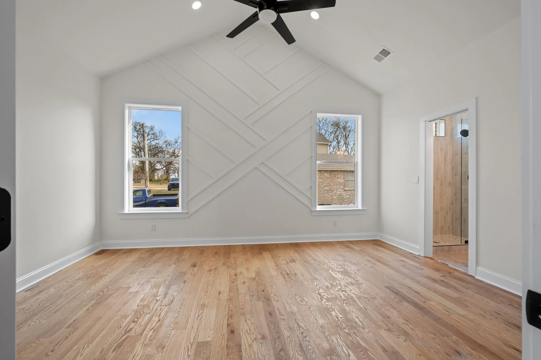 Brand-new construction with clean lines, a timeless brick exterior, and a rare combo of attached 2-car garage and fenced backyard. Inside, you’ll love the warm sand and finish hardwoods, modern trim work, and a thoughtful entry drop zone with built-in bench and storage that keeps daily life organized. The main level is designed for easy entertaining—an open living space flows right into a cook’s kitchen featuring quartz countertops, a large island, stainless appliances, a statement vent hood, stylish lighting, and crisp cabinetry with matte-black hardware. Step outside to enjoy the private yard—perfect for pets, play, or weekend grilling. Upstairs offers flexible space for a office, plus a standout primary suite with a vaulted ceiling and designer accent wall. The spa-like bath includes a dual vanity, oversized tiled shower with frameless glass, and a generous walk-in closet. Move-in ready, beautifully finished, and built for how you actually live. Built with 2×6 exterior stud construction and backed by a 1-year builder’s warranty. Less than 4 miles to Downtown.