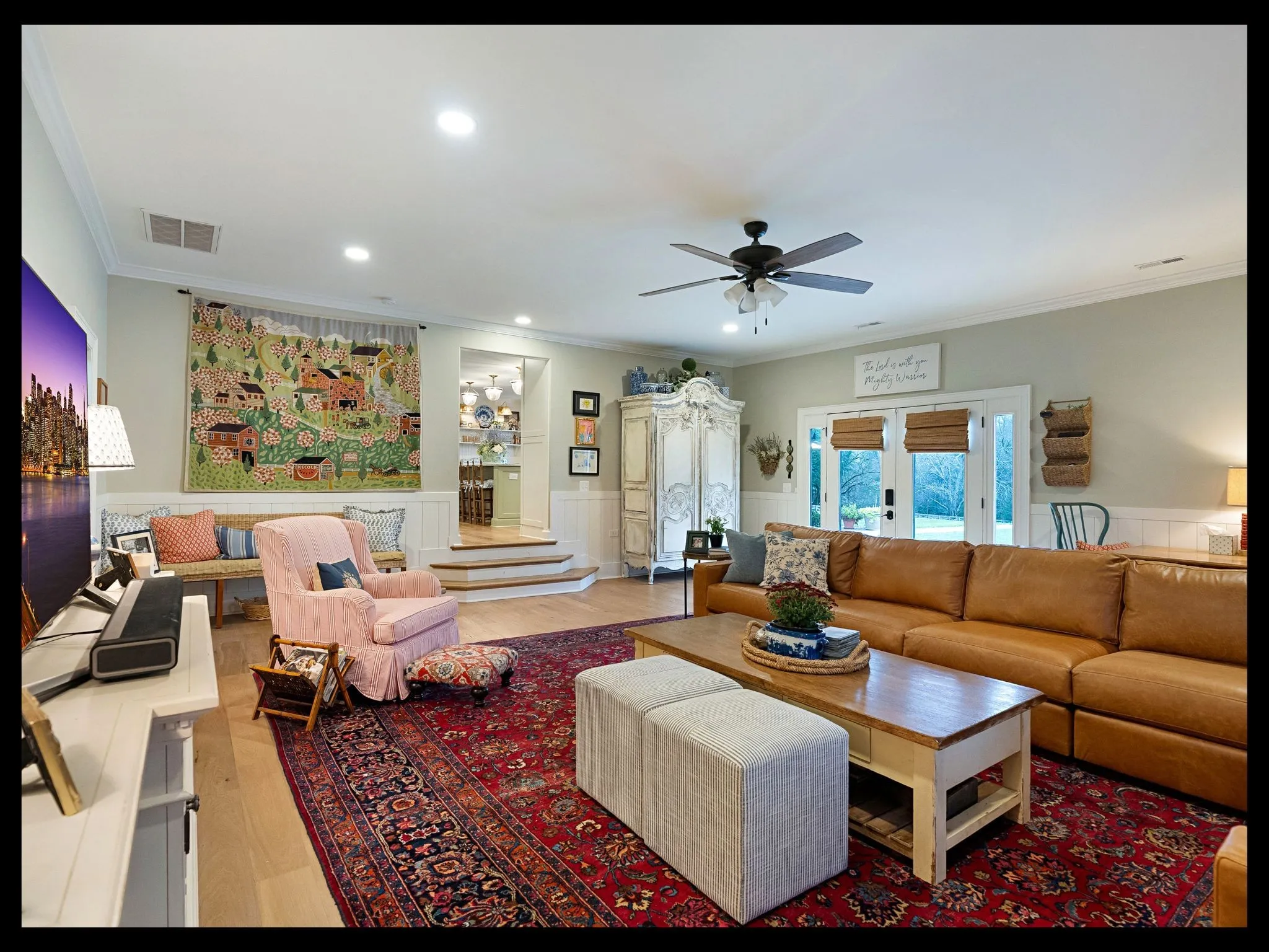 Inside, timeless character blends with thoughtful updates. The welcoming entry foyer features classic brick paver flooring, setting the tone for the warmth and charm found throughout the home. Spacious living areas provide comfortable gathering spaces, while the updated kitchen offers generous workspace and an easy flow for everyday living and entertaining.