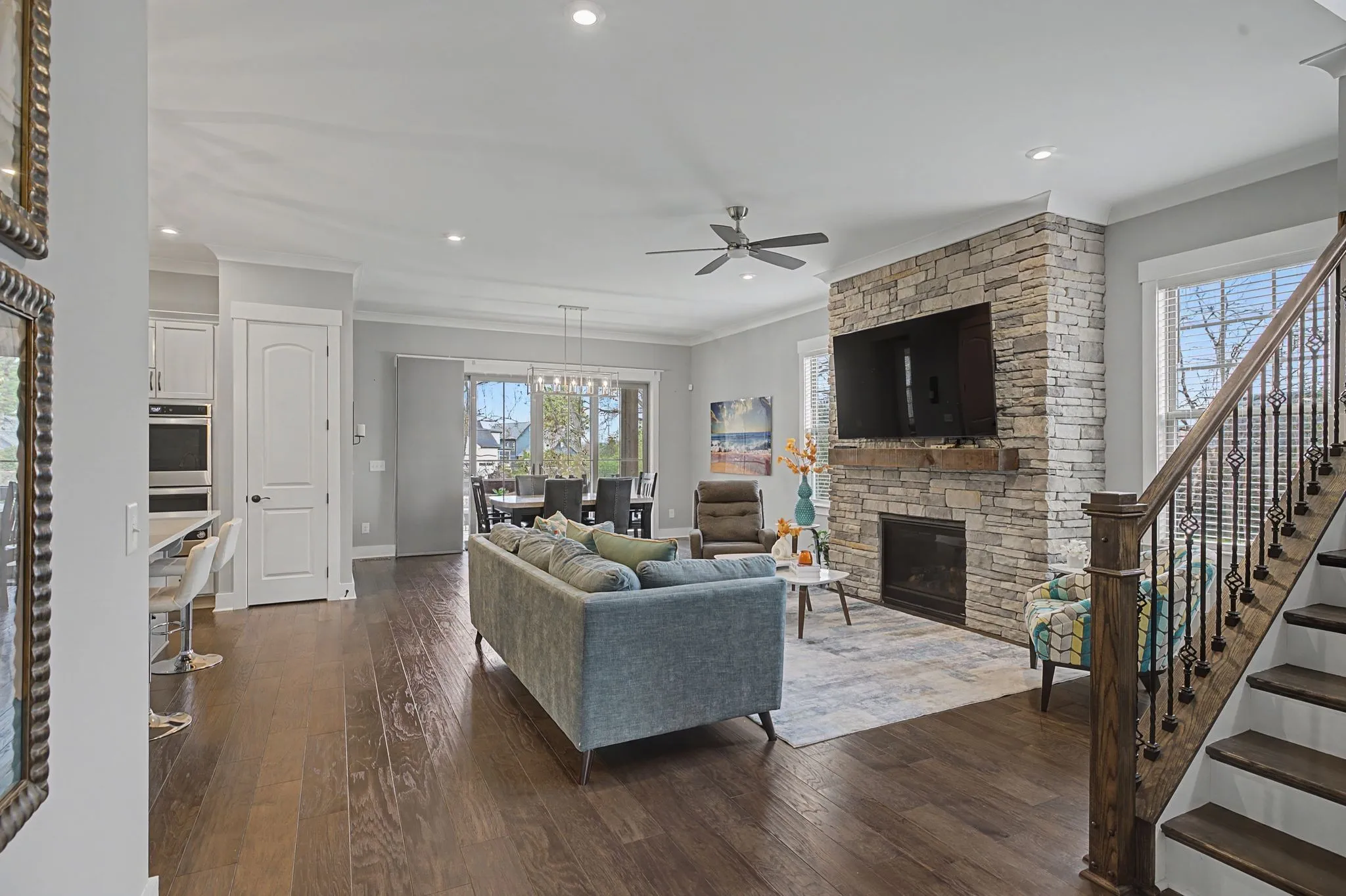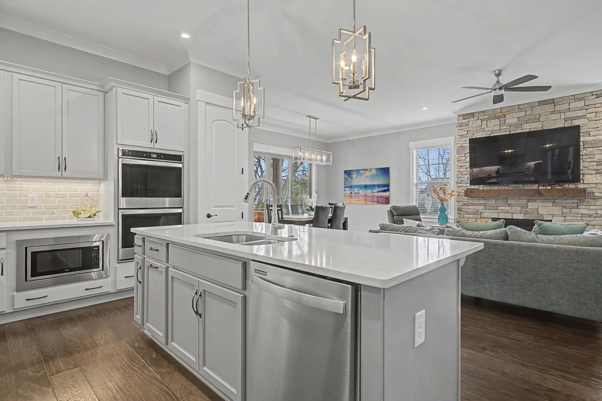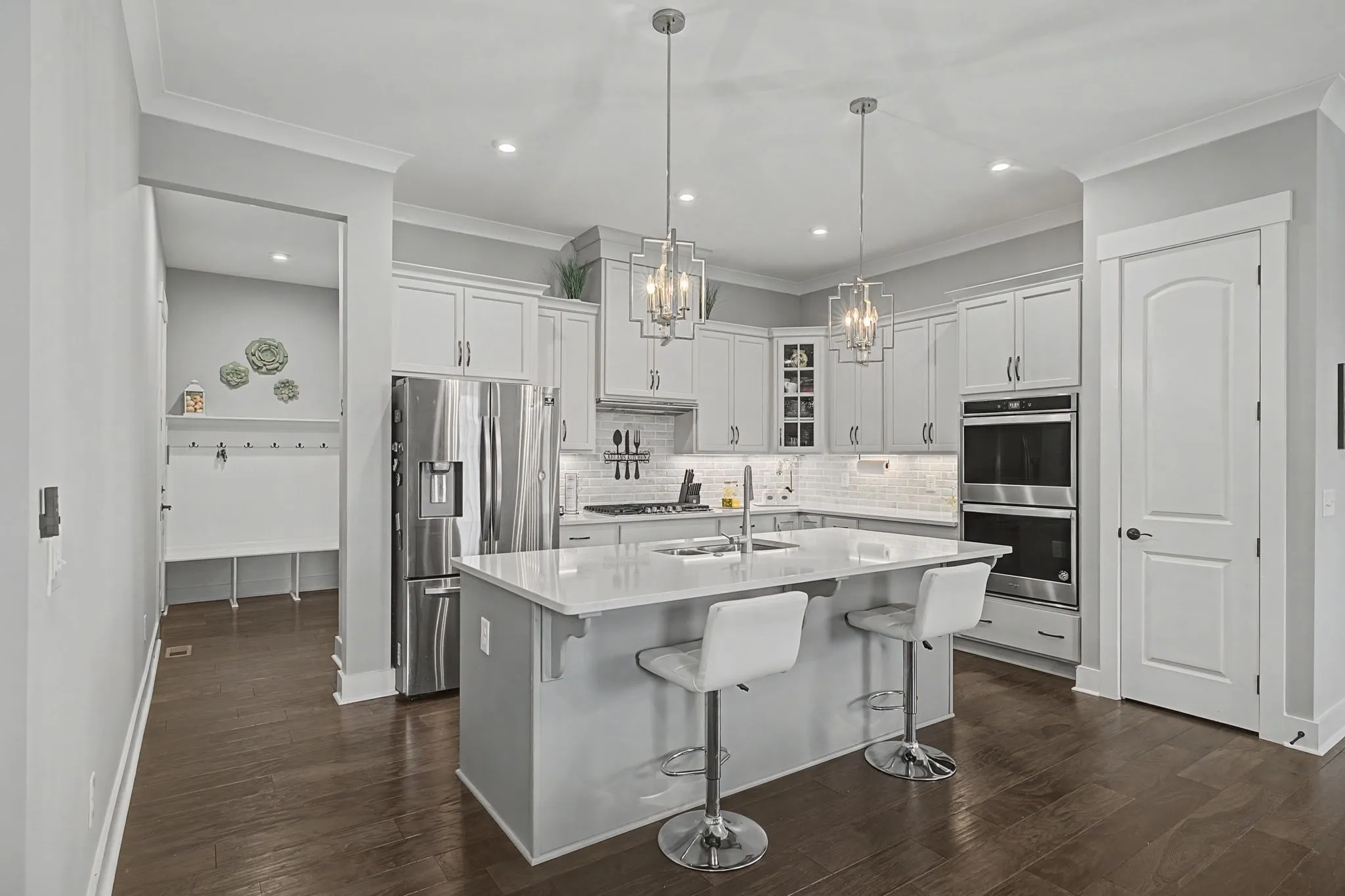 Welcome to 455 Cardel Lane, a stunning 5-bedroom, 4.5-bathroom home perfectly situated at the end of a tranquil cul-de-sac in the highly sought-after Cardel Village of Franklin. Located just two miles from Historic Downtown Franklin, this residence embodies a blend of small-town charm and contemporary convenience. Built in 2020, the home has been meticulously maintained and radiates a fresh, inviting ambiance. Step inside to discover soaring 10-foot ceilings and 8-foot doors adorned with custom craftsman trim that enhances the open layout, thoughtfully designed for today’s modern living. This home offers Dual Owner’s Suites. The main-level bedroom suite offers a comfortable guest retreat, providing both privacy and convenience for visitors or multi-generational families. The upper-level primary suite boasts a luxurious, spa-inspired ensuite bathroom for relaxation. The gourmet kitchen is a culinary enthusiast’s dream, featuring upgraded cabinetry, double ovens, and a gas cooktop, designed for effortless entertainment. The adjoining open-concept family room and main-level study add functionality and sophistication to this exquisite home. On the second floor, each bedroom comes with custom closets that combine elegance with practicality, ensuring ample storage and organization. Outside, enjoy peaceful mornings sipping coffee on the back porch or greeting neighbors from the covered front porch. This amazing home is equipped with smart home features, a spacious two-car garage, and is nestled within close proximity to top-rated schools and local amenities. Don’t miss your chance to experience the lifestyle you’ve been dreaming of in one of Franklin’s most desirable communities!