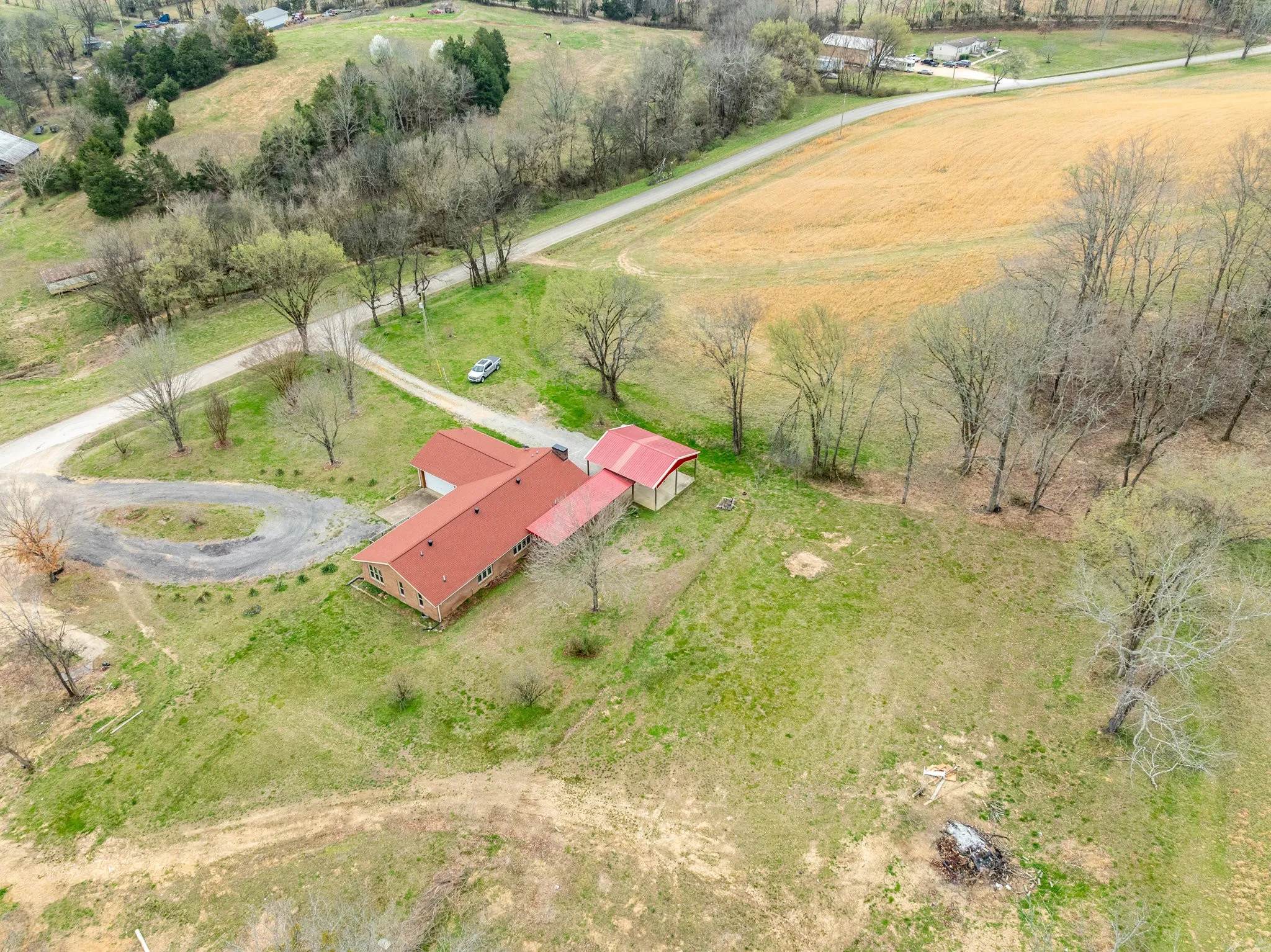 Beautiful Peaceful Country Setting in the Hampshire Community! This property offers 3 ways to purchase: Home with 49.97 acres, Home with 12.85 acres, or Land only – 37.22 acres. The 3-bedroom all brick home has a relaxing front porch and features large inviting rooms, a spacious primary suite with walk-in closet and vanity, large bath, big family room with electric fireplace, living room, and separate dining room. Kitchen includes all appliances approximately 2 years old with plenty of cabinet space. Spacious laundry room comes with stand-up freezer, washer, and dryer, with a convenient half bath nearby. All 3 bathrooms have newly tiled floors. Enjoy the covered 30×12 back porch overlooking a large backyard—perfect for relaxing or entertaining. Home also includes a 2-car garage and 2-car carport. Roof, windows, and flooring only 2 years old. Land features a pond with rolling hills, open fields, and several beautiful building sites with scenic views. Located 1 mile from Hampshire School and Hwy 412, conveniently between Columbia and Hohenwald. see MLS 3146242 & MLS 3146278