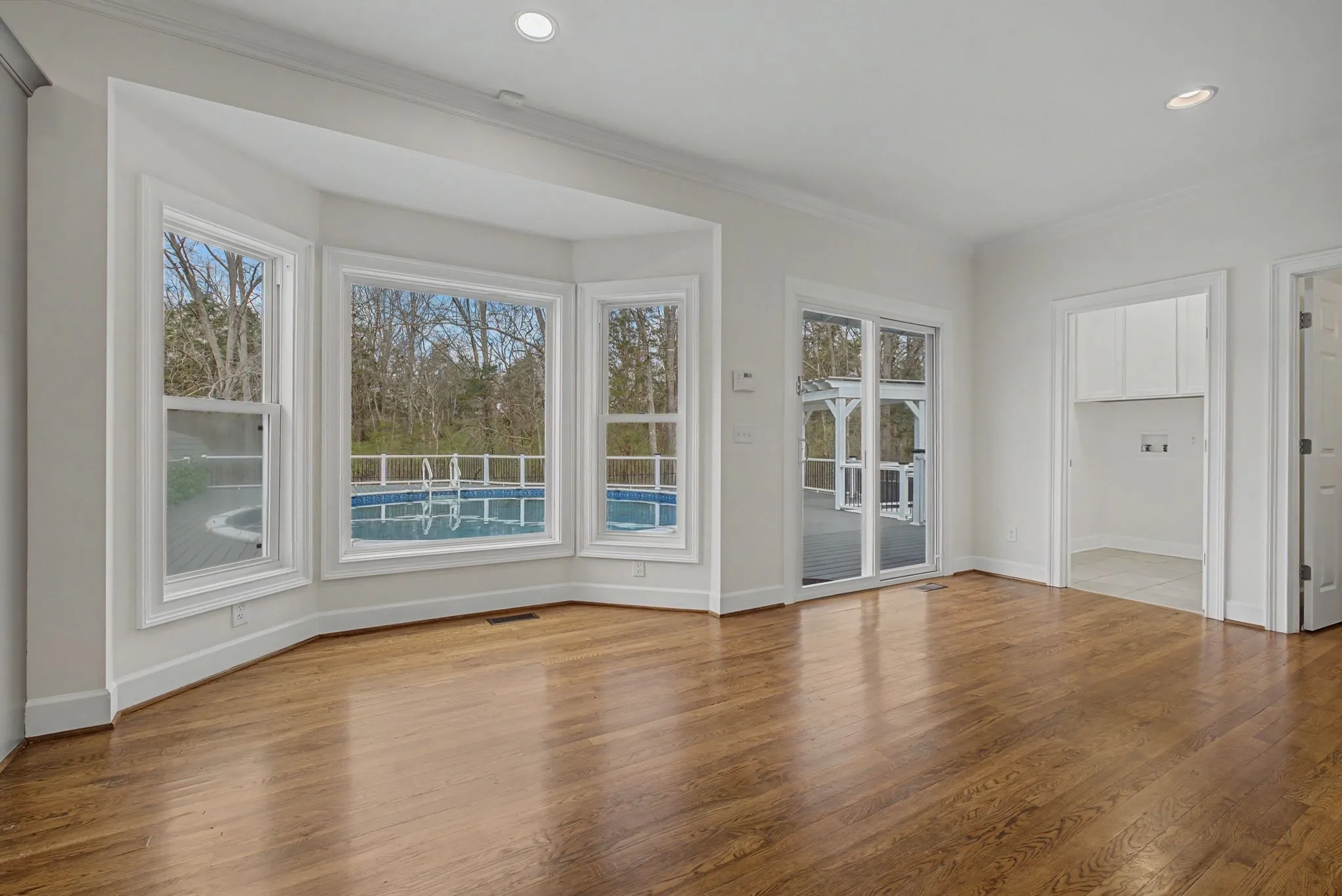 Step outside to your private outdoor retreat featuring a pool with Trex decking for low-maintenance entertaining—perfect for relaxing evenings or hosting family and friends.