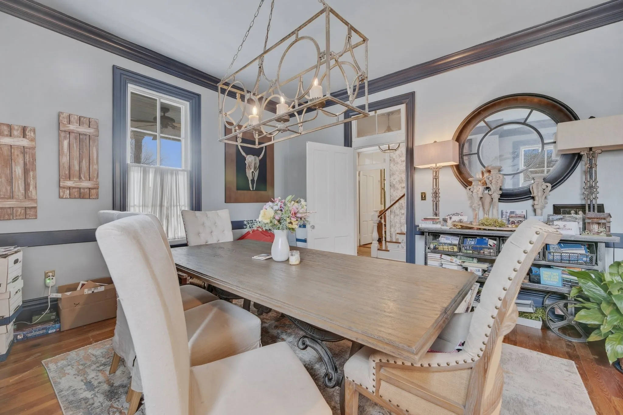 Inside you’ll find tall ceilings, original 1800s trim, bold wallpaper, and themed rooms that make every corner feel like it has a story to tell. It’s the kind of place where guests walk in and immediately say, “Wait… this house is awesome.”