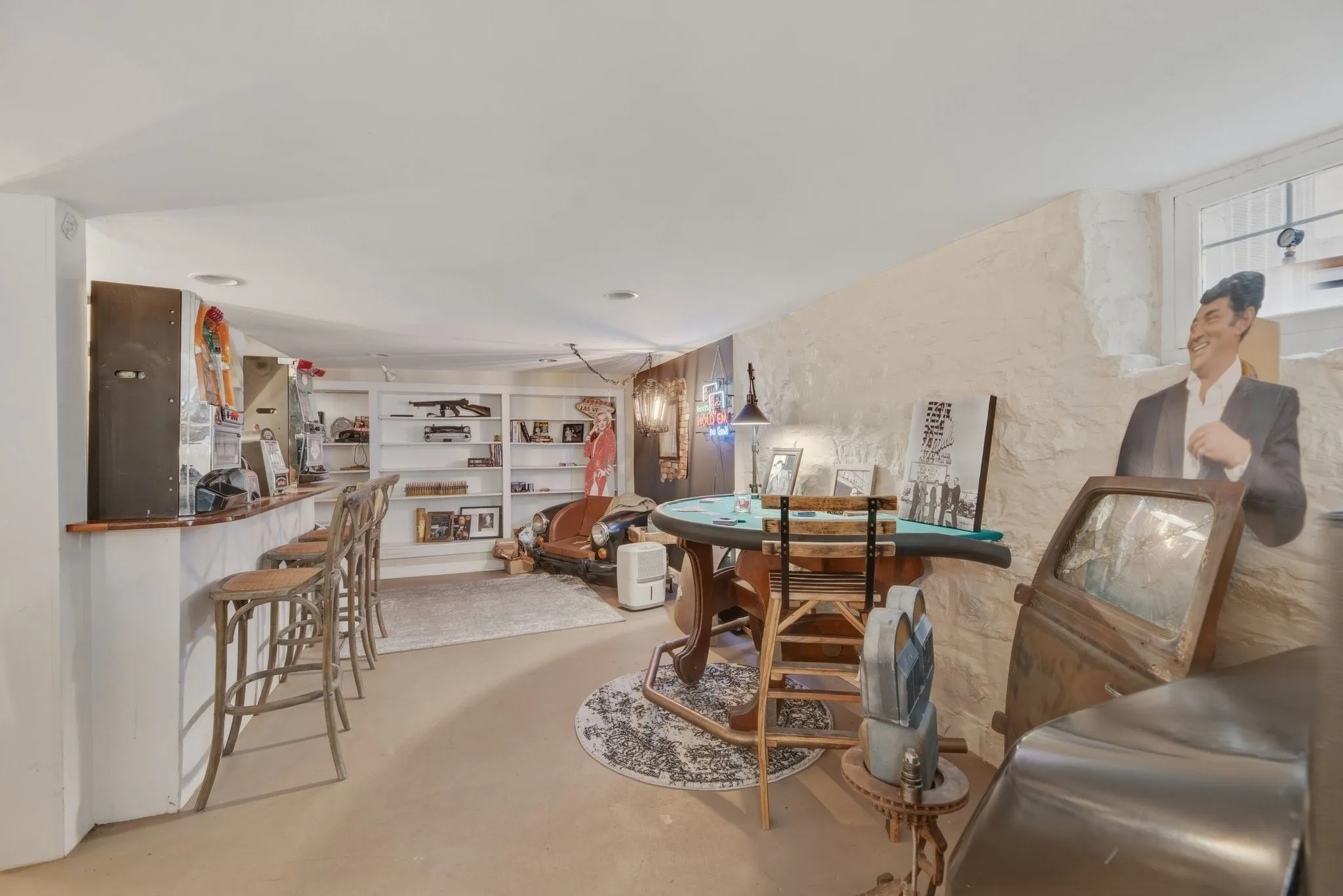 And just when you think you’ve seen it all… downstairs you’ll find a Chicago-style speakeasy themed basement, the perfect spot for entertaining, unwinding, or pretending you’re running a very classy 1920s operation.