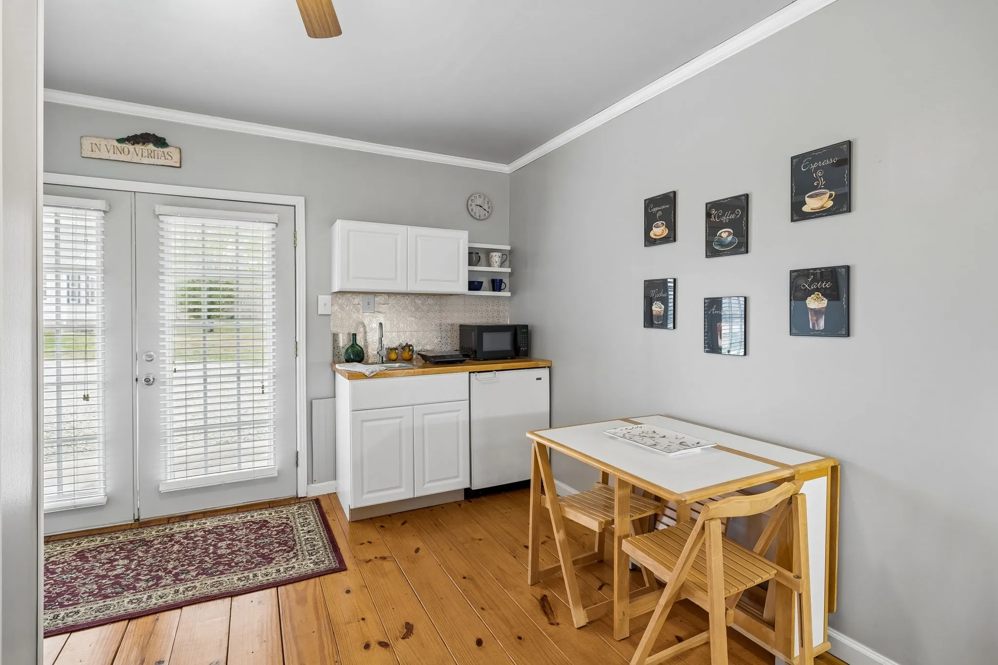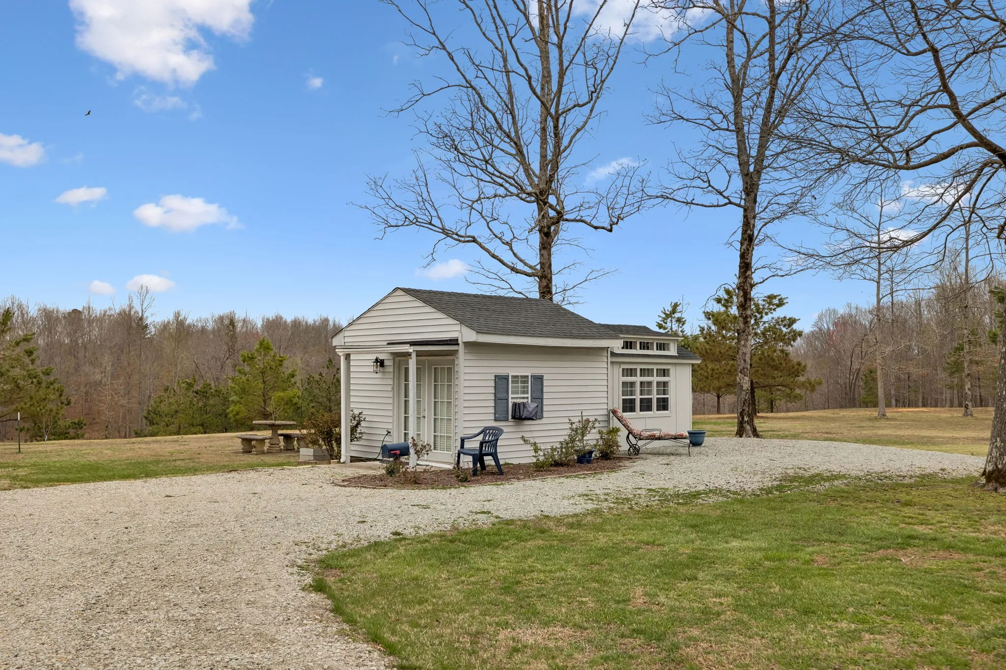 A detached studio provides flexible space ideal for guests, hobbies, or a private workspace and features a bathroom, its own on-demand water heater, and a new electric fireplace.
