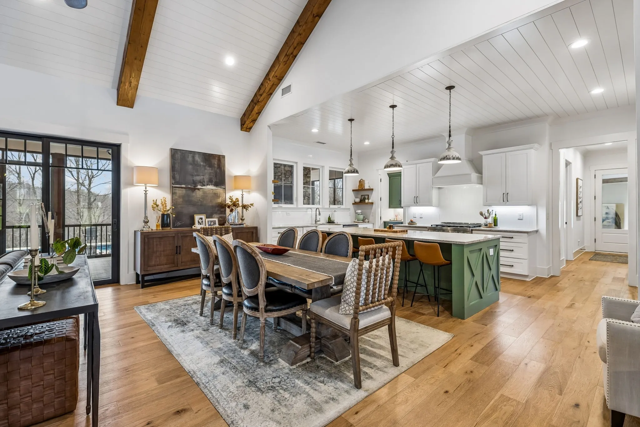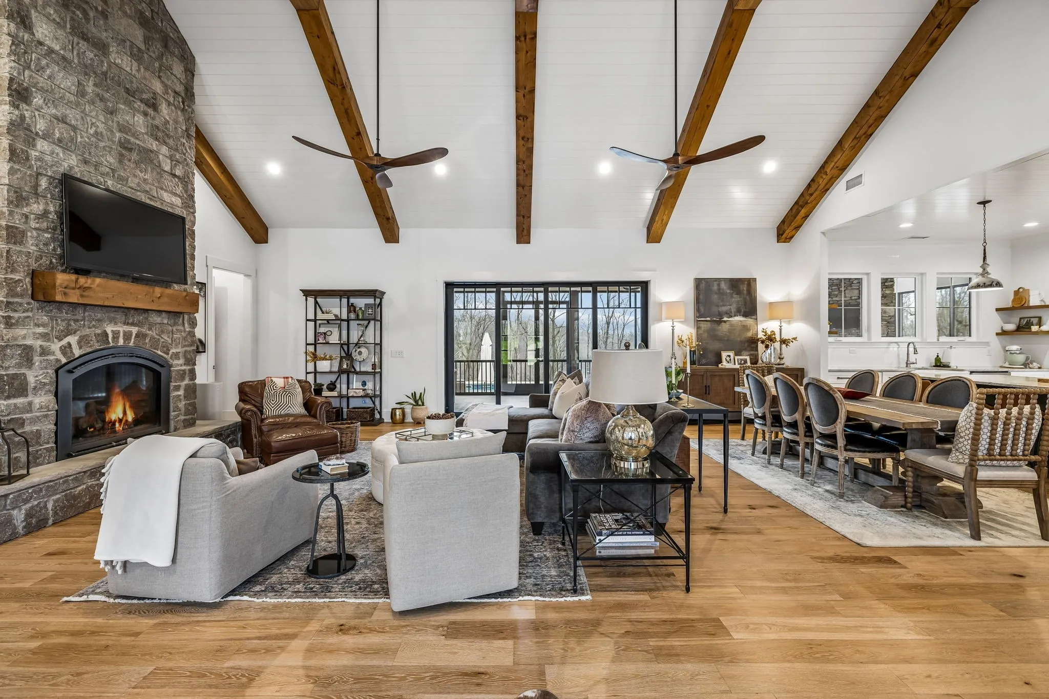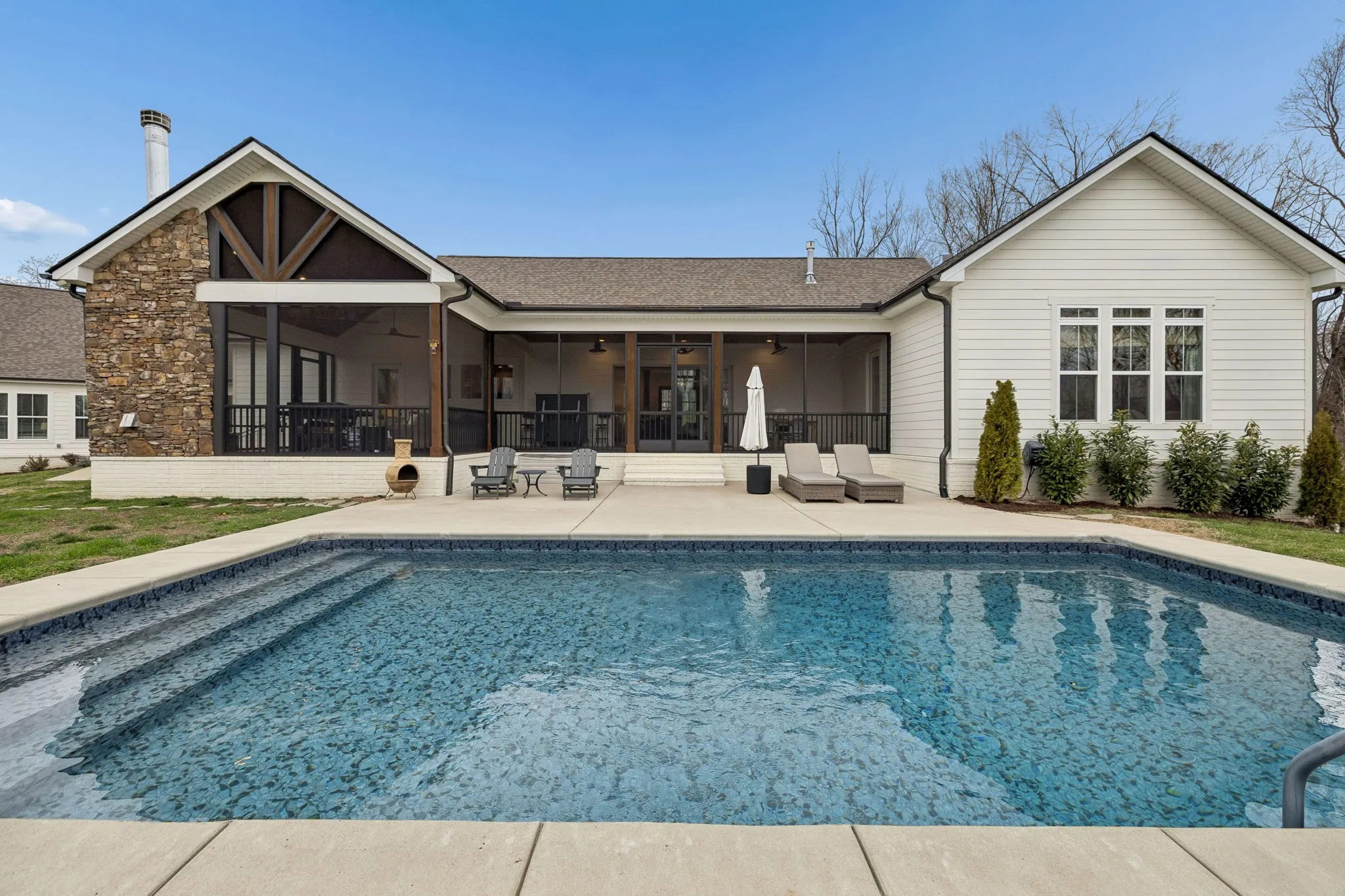 Welcome to your luxurious private retreat on 34 breathtaking acres, offering exceptional privacy & peaceful country living just minutes from local dining & shopping. Enter through a custom solar-powered iron security gate with remote access & solar lighting. This estate welcomes you as you drive to this stunning farmhouse designed for comfort, entertaining & functionality. Inside, the home features a spacious open floor plan that seamlessly connects the living, dining & kitchen areas, perfect for gatherings. Beautiful hardwood floors throughout & the main house thoughtfully designed layout offers one-level living with private full baths for every bedroom. This home is listed as a 4 Bedroom, but lives like a 6 Bedroom.The kitchen includes floating shelves, under-cabinet lighting & a custom pantry, while the primary suite & guest bedrooms feature custom closets. A unique feature in the living room is a hidden closet behind a secret bookshelf door. The oversized laundry room provides space for two sets of W/Ds. A 1,685 sq. ft. attached guest house offers the perfect space for in-laws, family or guests, complete with living area, kitchen, laundry & sleeping quarters, +Toto toilets. Outdoor living is just as impressive with an in-ground pool, enclosed back patio & a huge covered patio with wood-burning fireplace, creating the ideal setting for relaxing or entertaining. Enjoy pickleball on the court set up on the driveway complete w/net & lighting. The 3 + car garage features epoxy floors, a workout area & a large utility sink that doubles as a dog-washing station. The land has been thoughtfully improved with cleared pasture areas, landscaping for erosion control, & a 2nd wooden gate with gravel access to a pad ready for a future barn or build site. Even the charming chicken coop stands out with a shingle roof, wallpaper interior & predator-protected run. Added upgrades include a new pool robot sweeper, UV light system for the HVAC system, & well system add peace of mind.