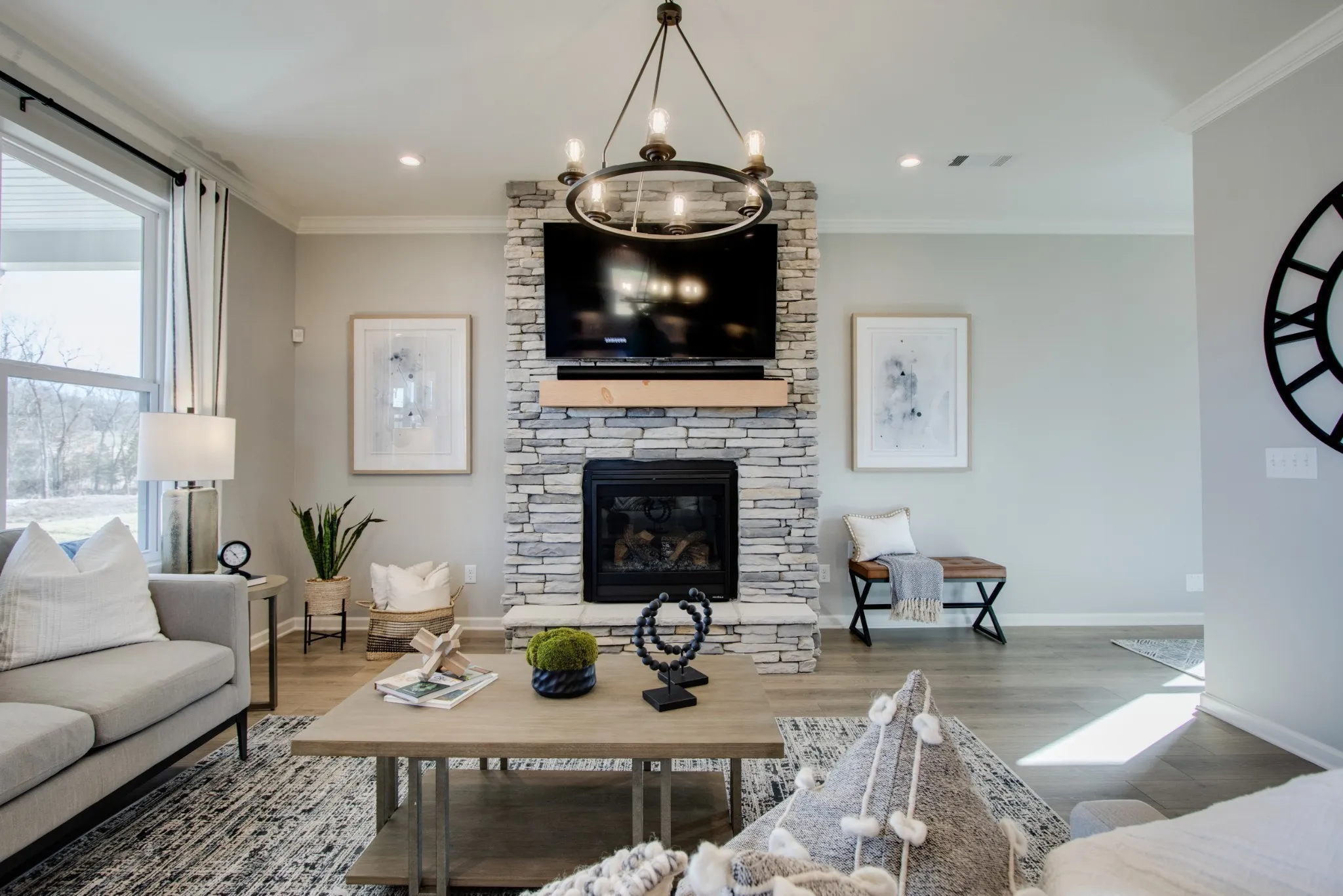 The Rockford floorplan is a thoughtfully designed home offering 3-4 bedrooms, 2.5 baths, and an open-concept layout perfect for today’s lifestyle. This home features a spacious family room that flows seamlessly into kitchen with stainless steel appliances, quartz countertops, and a large island ideal for entertaining, Stone Fireplace, Oak Treads & Iron Railing on the stairs, Window Casings, Carpet & Appliance upgrade. The dining room is adjacent to the kitchen for easy entertaining and allows you to exit to the included covered patio. The primary suite is a private retreat with a spa-inspired bath. Amenities you will enjoy and love include walking trails, playground, clubhouse with a fitness center, and a pool, that you don’t have to wait for! All are ready for your enjoyment for $65 a month.