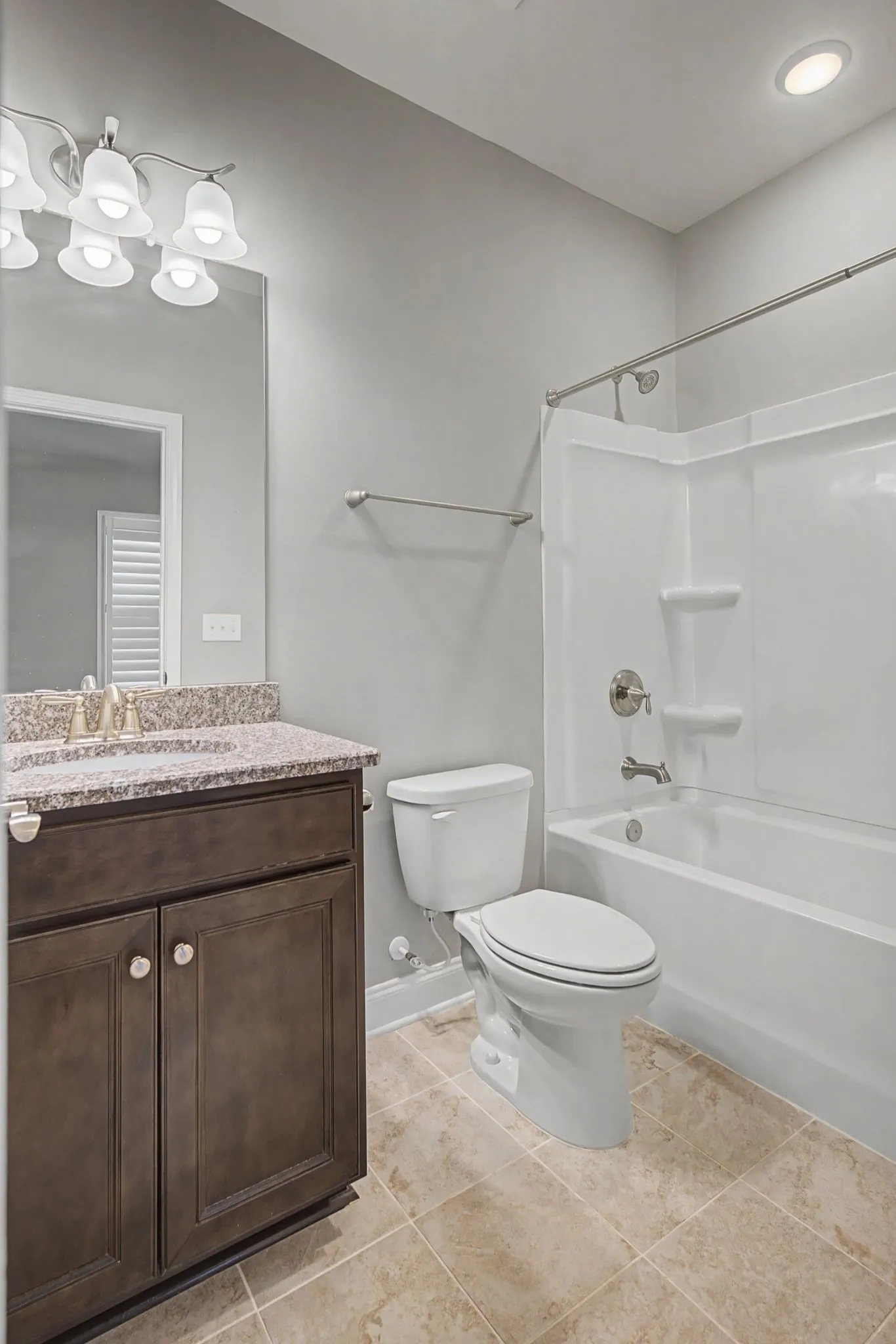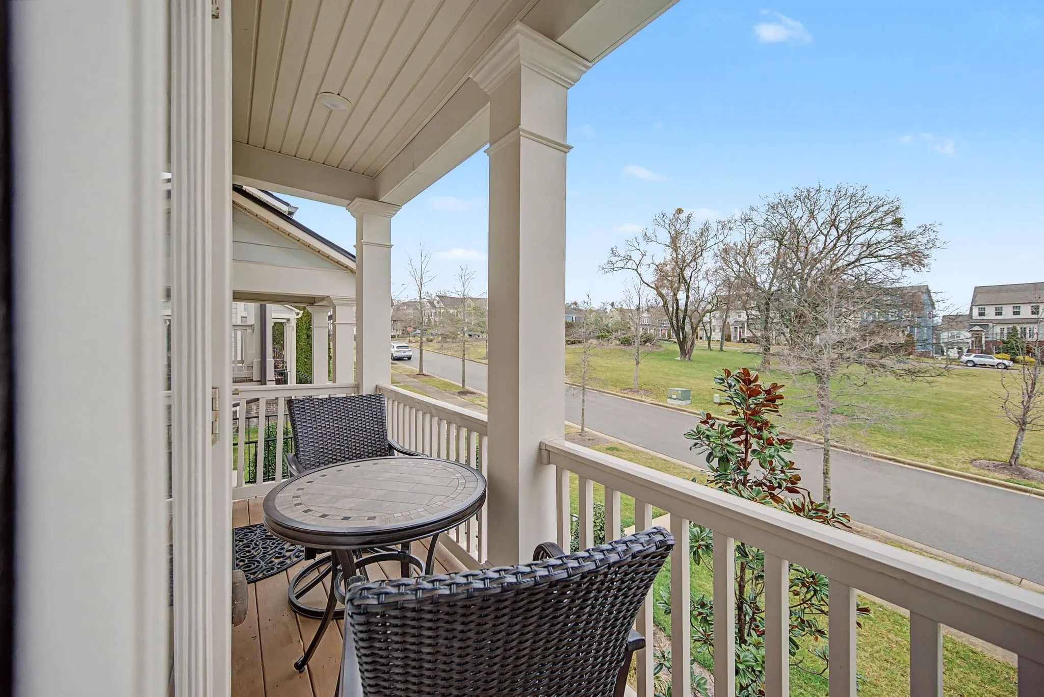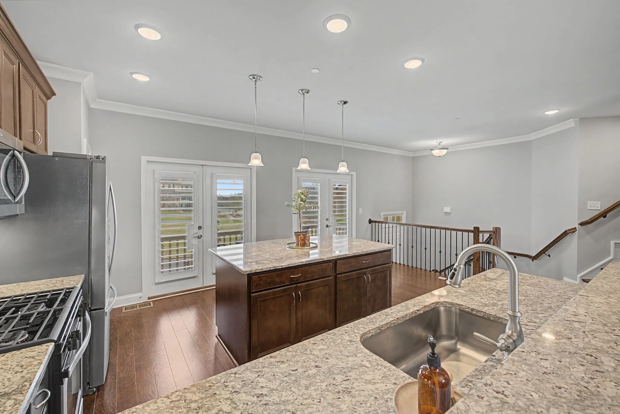 Inside, you’ll find hardwood floors, crown molding, wrought iron stair spindles, and custom plantation-style shutters throughout, adding timeless character. The kitchen features granite countertops that continue into the bathrooms for a cohesive design. An upgraded bar or dedicated work-from-home space adds flexibility, while the enhanced owner’s bath provides a refined retreat.