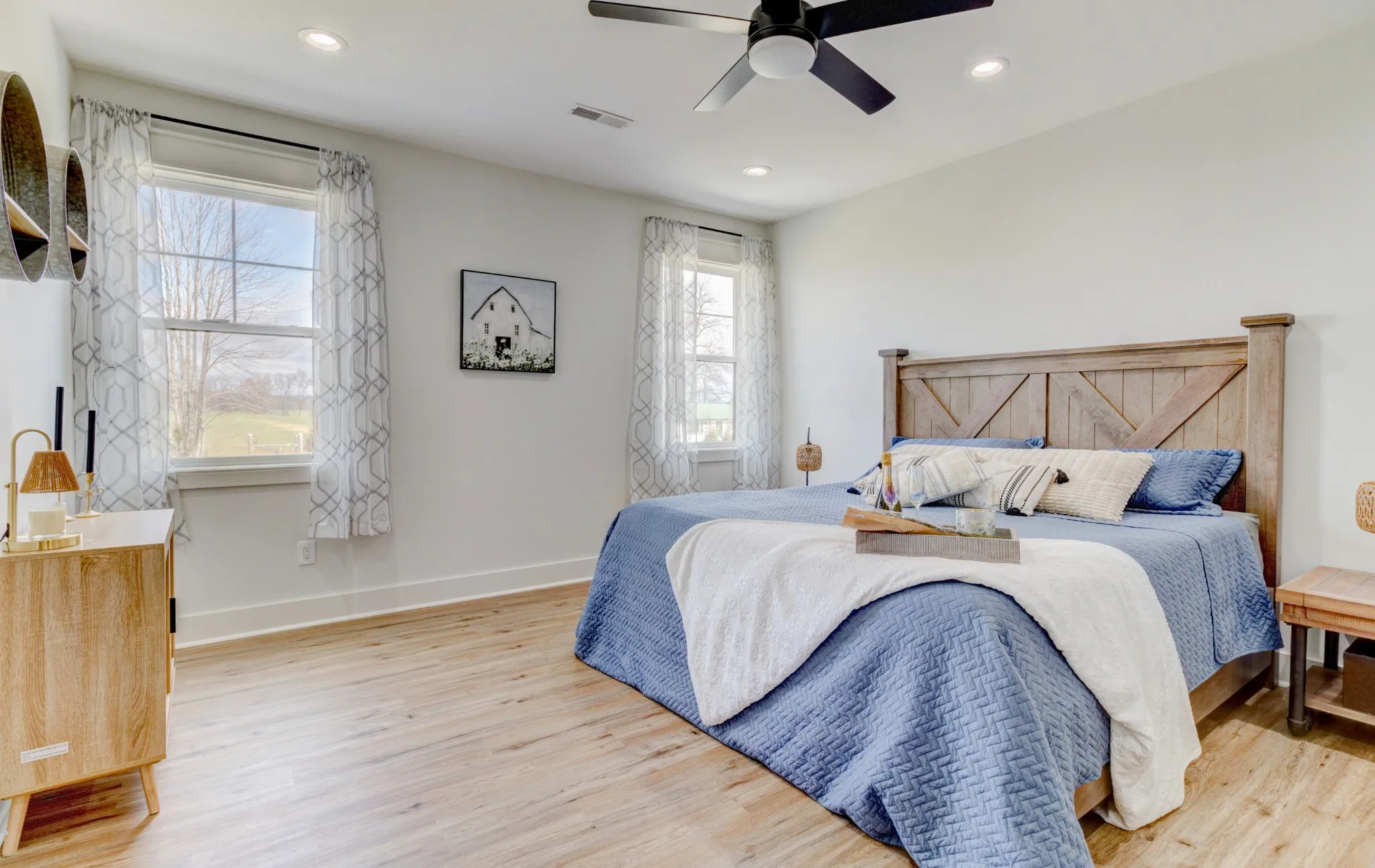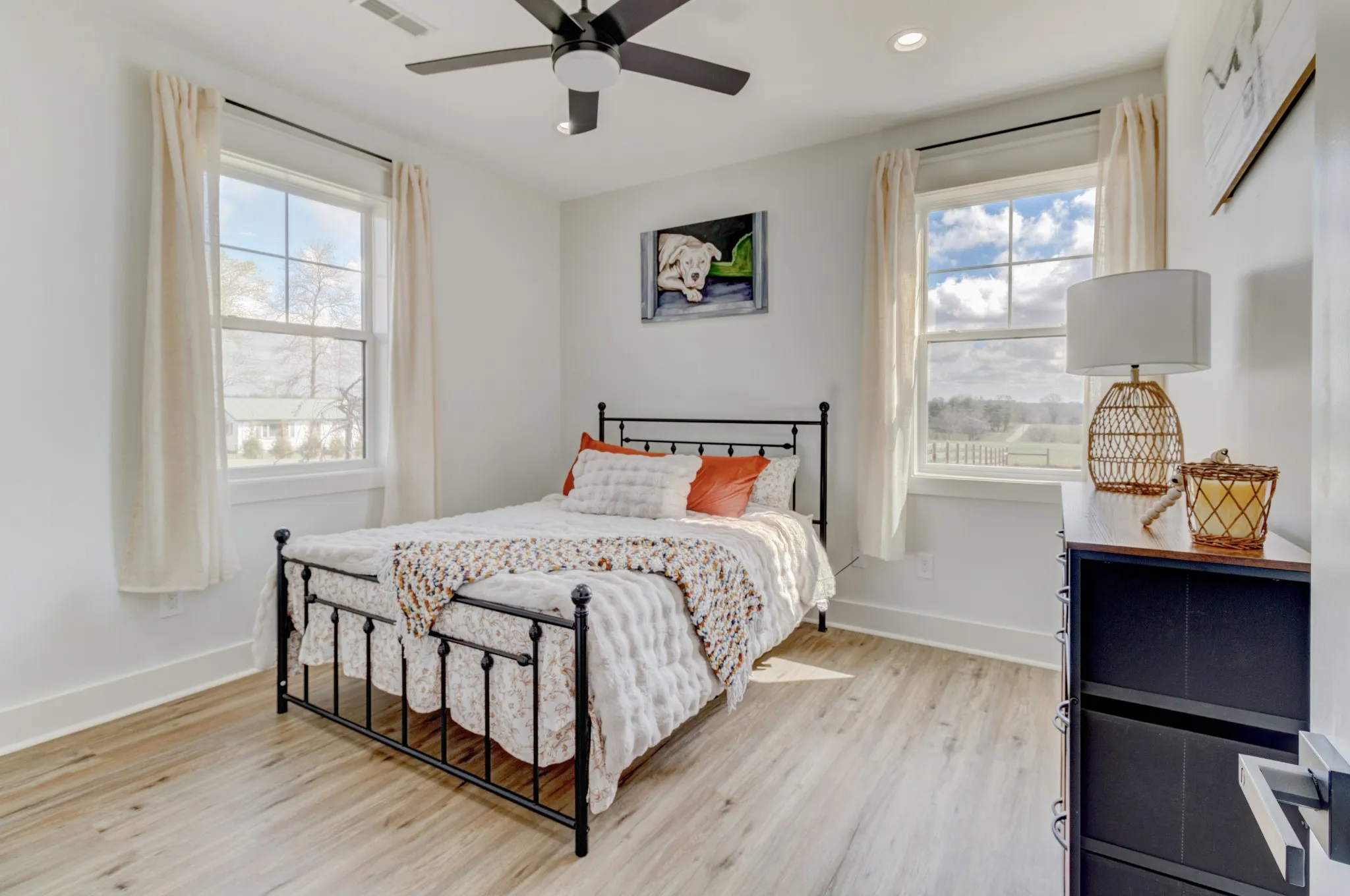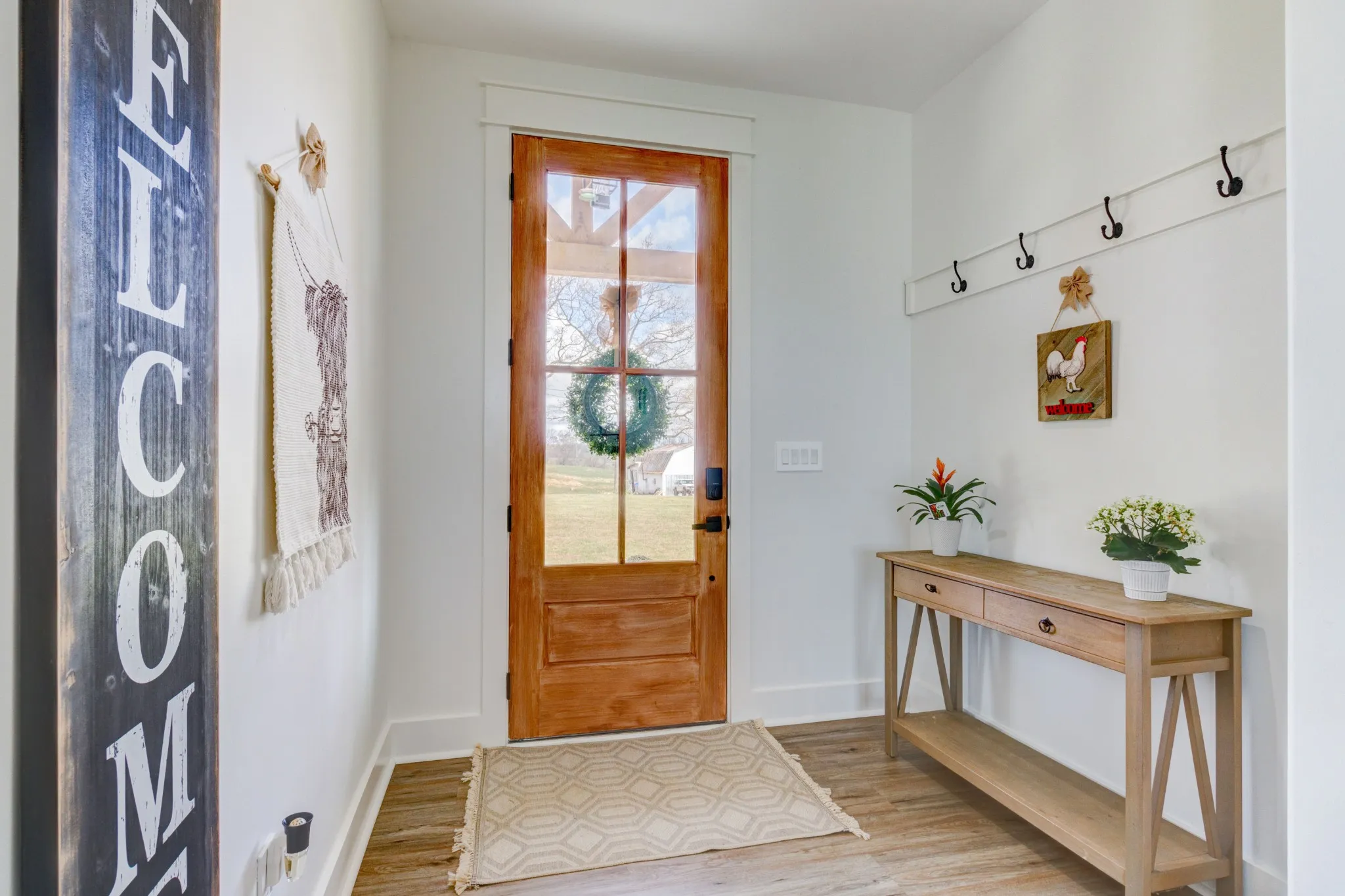 Stunning custom-built, one-level home on 8.51 peaceful acres, cross-fenced into three separate pastures and located just 5 miles from shopping and restaurants and 8 miles from the hospital. This beautiful property offers privacy, scenic views, and several outbuildings, perfect for animals or hobby farming. Inside, you’ll find high-end features throughout, including high ceilings, beautiful LVP flooring, tile, and upgraded fixtures. The kitchen features quartz countertops, stainless steel appliances, and an oversized pantry with built-ins. The living area offers a cozy electric fireplace, while the spacious primary suite includes a large closet and a 5×5 custom walk-in tile shower. Additional highlights include an office/flex room, a laundry room with a sink, a built-in mudroom area, a large deck overlooking the property, Trane HVAC, insulated garage doors, and a security system. The property extends into the woods behind the home, offering added privacy and natural beauty. *Property tour video available at the bottom of this listing under Documents and Links.