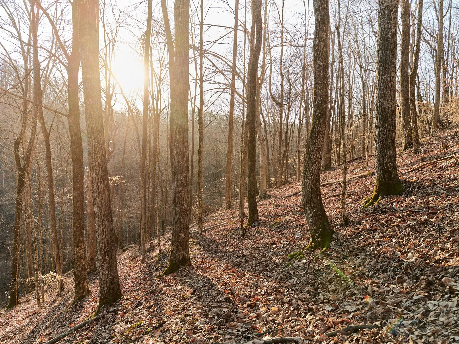 - Lot Features: Level, Private, Wooded, Rolling Slope