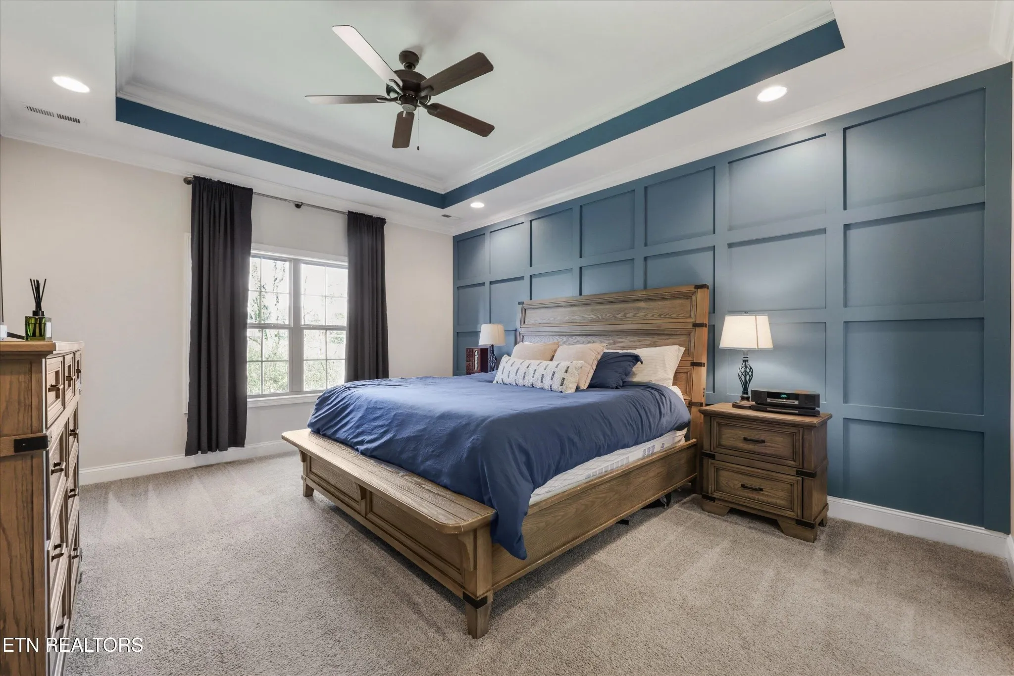 The main-level primary suite offers a private retreat designed for true relaxation. A beautifully appointed trey ceiling adds architectural interest, while the spa-inspired bath features a freestanding soaking tub, a spacious tiled walk-in shower, dual granite vanities, and a generous walk-in closet, delivering the comfort and refinement expected in a home of this caliber.