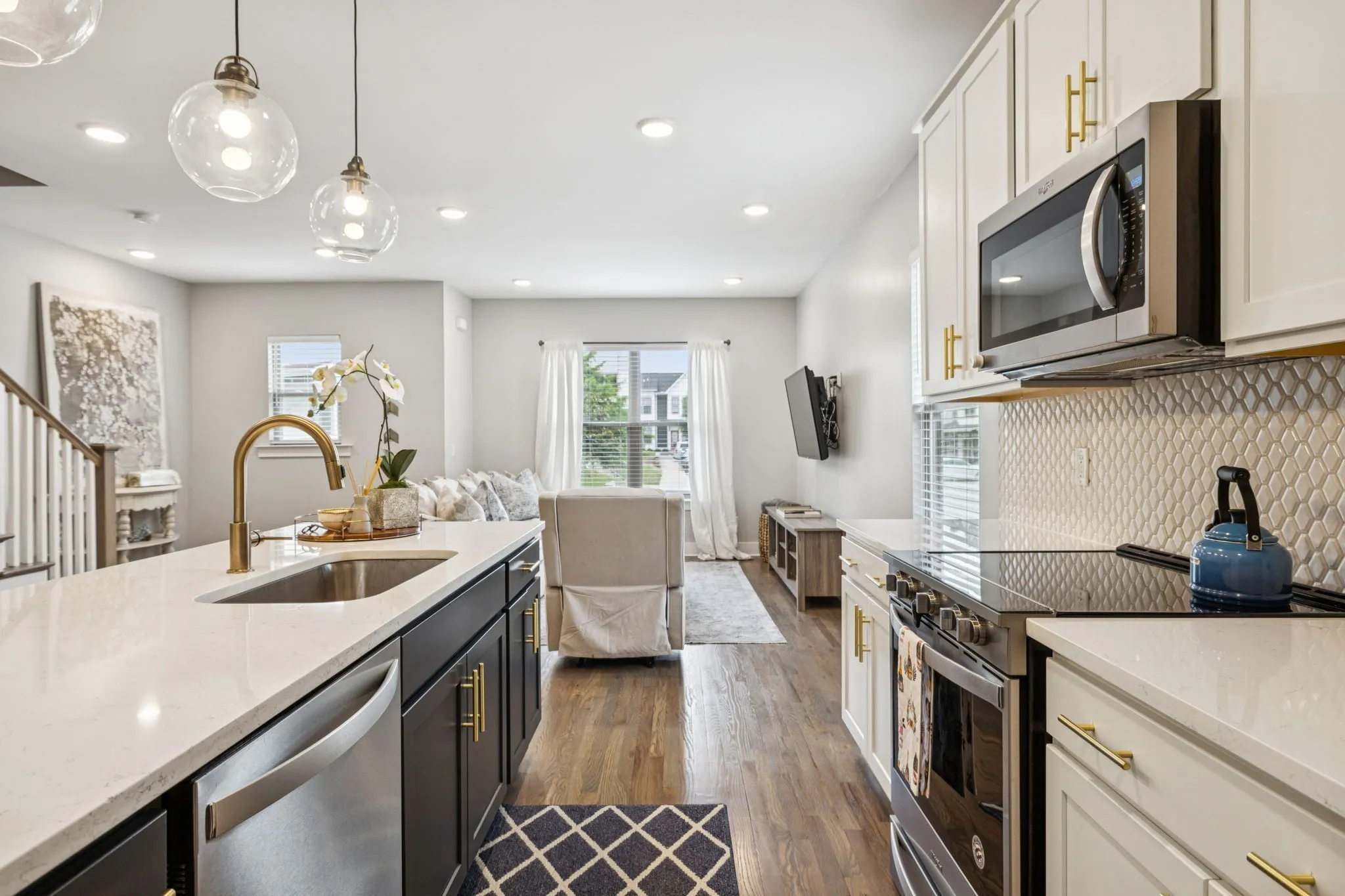 Priced to sell! MOVE-IN READY modern END UNIT Townhome, 3-BEDROOM, 3-BATH with a 2-Car Attached Garage in the sought-after South Woodbine/Berry Hill neighborhood. Own for less than rent with close proximity to downtown Nashville, with a Wedgewood-Houston vibe and close to everything. This beautiful home showcases an open-concept floor plan, soaring ceilings, sand-and-finish hardwood floors, and abundant natural light. The stylish kitchen features quartz countertops, stainless steel appliances, a large island, and generous cabinetry—perfect for both daily living and entertaining. Each of the three bedrooms includes its own full bath, providing ideal flexibility for guests, roommates, or a home office. All closets have custom shelving. The third-floor primary suite impresses with a vaulted ceiling, walk-in closet, and spa-like en-suite bath. A spacious bonus room is also located on this level. Step outside to the freshly stained private upper deck to enjoy panoramic views—ideal for relaxing or entertaining under the stars. Preferred Lender offering 1% lender credit to be applied to closing costs or a rate buydown. Subject to credit approval.
