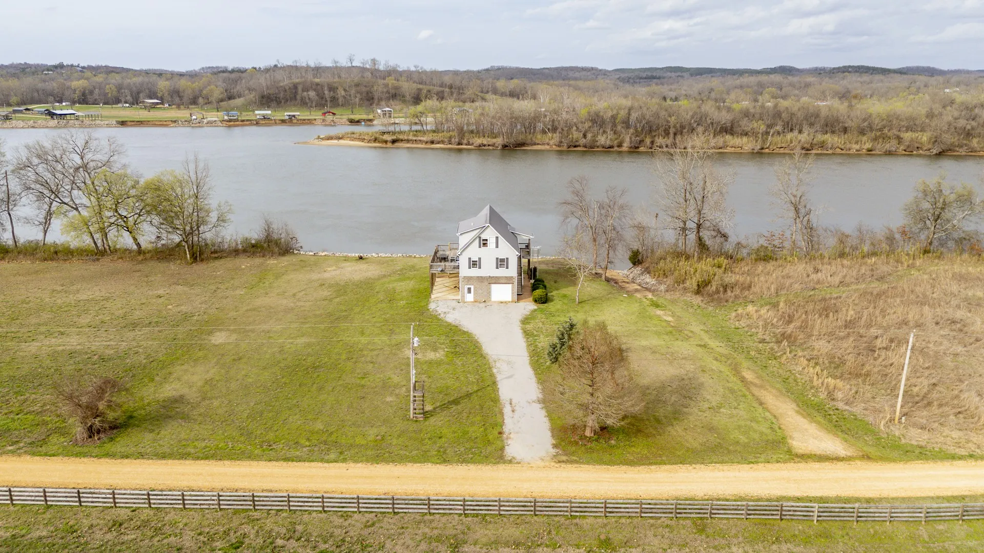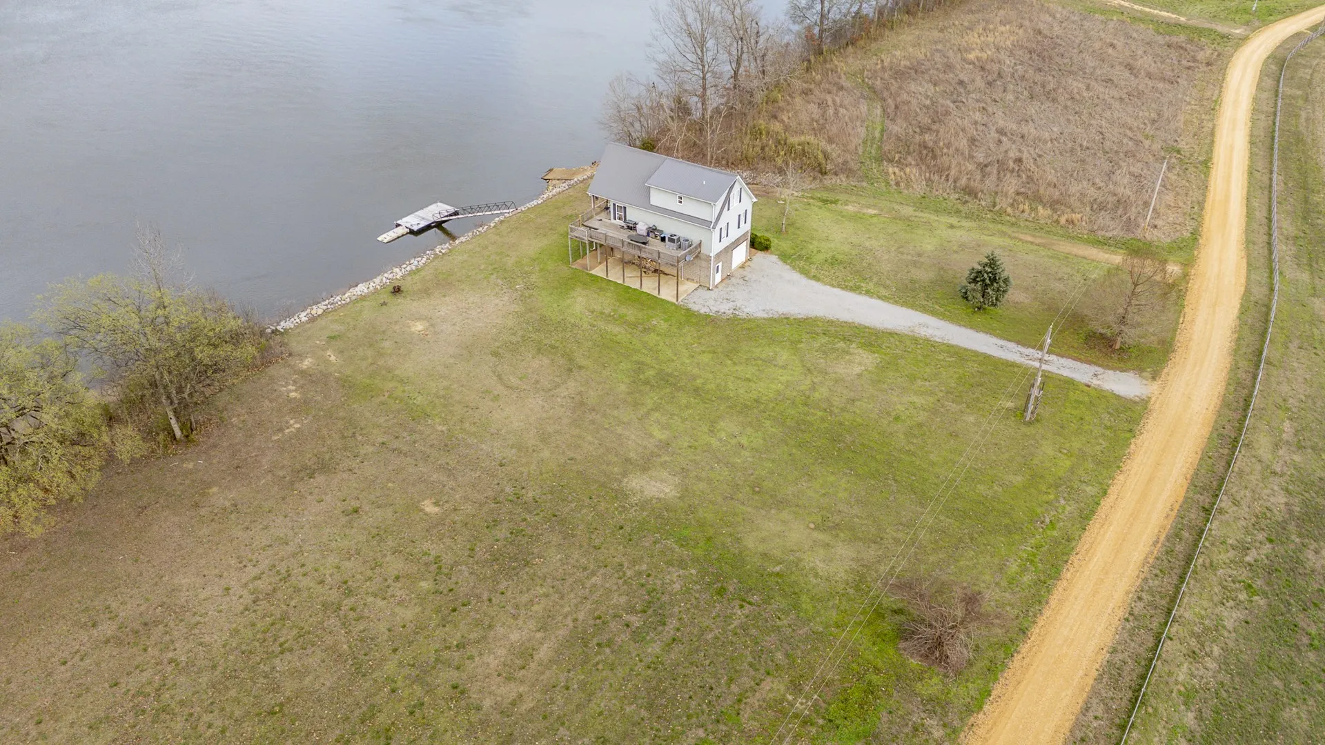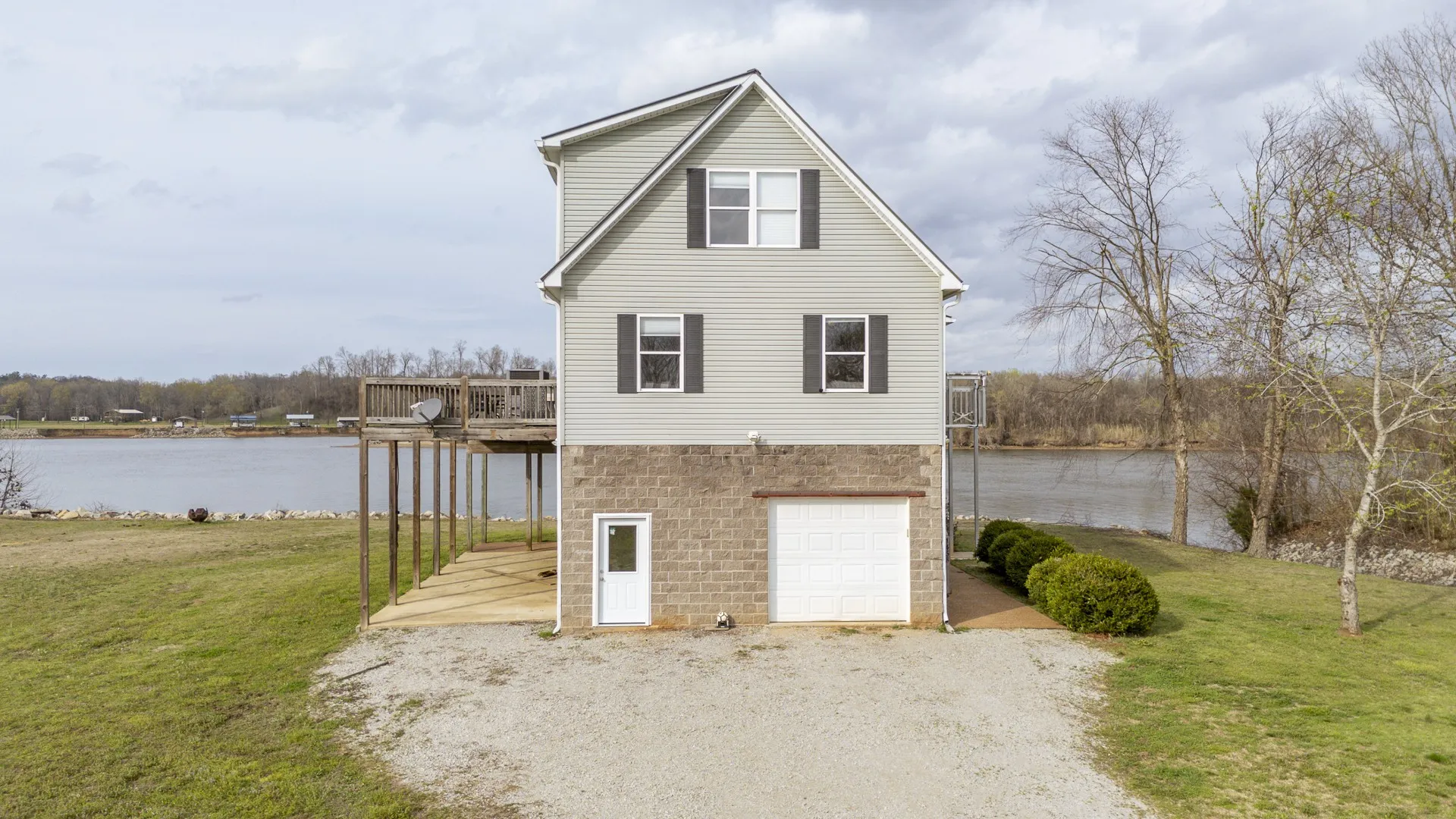 This Tennessee River waterfront home offers stunning water views from every window. Home comes with an extra waterfront lot on one side and community boat ramp on the other providing unparalled privacy and convenient boat launching! Your private boat dock is buffered from the main navigational channel by a natural island, and a serene water inlet is visible from the property. An all-aluminum outdoor lift adds extra convenience for loading and unloading. The main level features an open-concept kitchen and living area, two bedrooms, a full bath, and a handy combined pantry/laundry room. You’ll enjoy generous deck space—both covered and uncovered. Upstairs, the spacious ensuite bedroom has plenty of room for three queen-size beds, plus additional living space that opens to another covered deck—ideal for family gatherings or quiet mornings overlooking the river. The basement is built with durable concrete block construction, properly vented, and designed to handle high water levels. On one side, a covered lean-to includes a septic hookup ready for a camper or RV. New decking on the boat ramp, replacement of all exterior doors and windows on the basement level,upgraded kitchen cabinets and flooring. The home is equipped with two HVAC systems (one brand new, the other just 3 years old) and includes all appliances—washer, dryer, and more. Most furniture conveys as well, making this truly turnkey and ready for immediate enjoyment. This special section of the Tennessee River features multiple sandy beaches, islands, and hidden coves—perfect for boating, watersports, fishing, or simply relaxing by the water. Nearby marinas provide fuel, food, and supplies. There’s also ample yard space between the house and river for outdoor activities. Located in the desirable Bath Springs area, halfway between Memphis and Nashville. 30 minute drive to Savannah TN where you will find Lowes, Walmart and many dining options. Fiber Internet available.