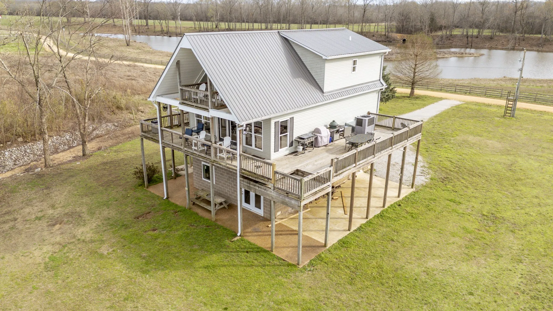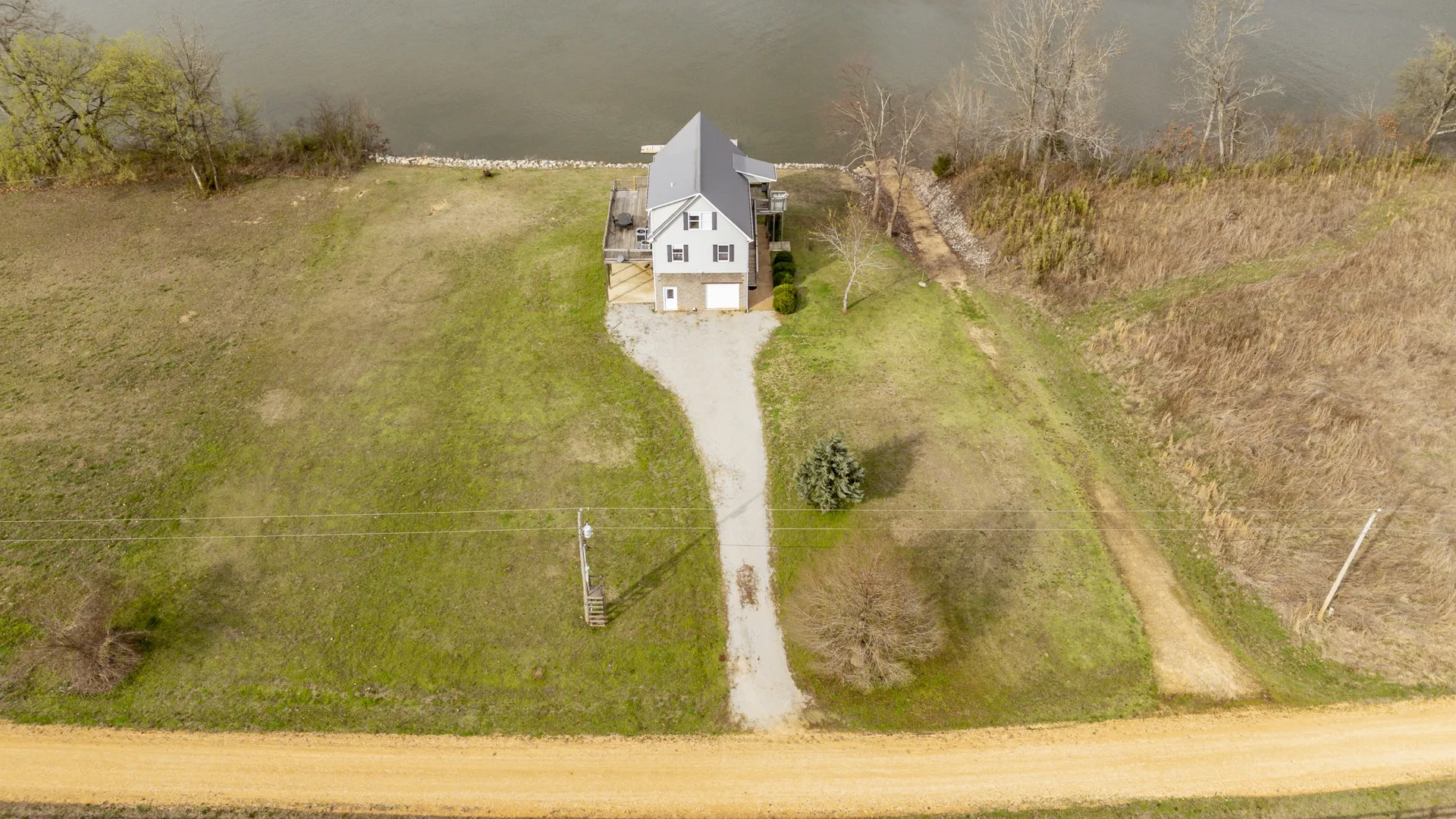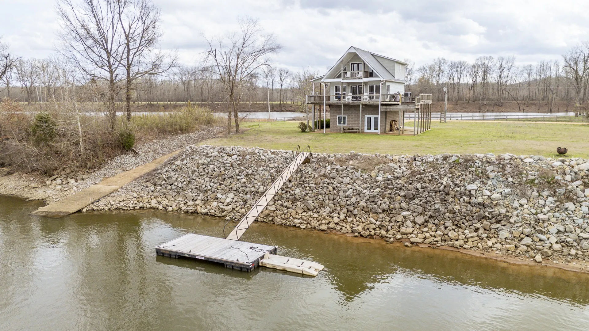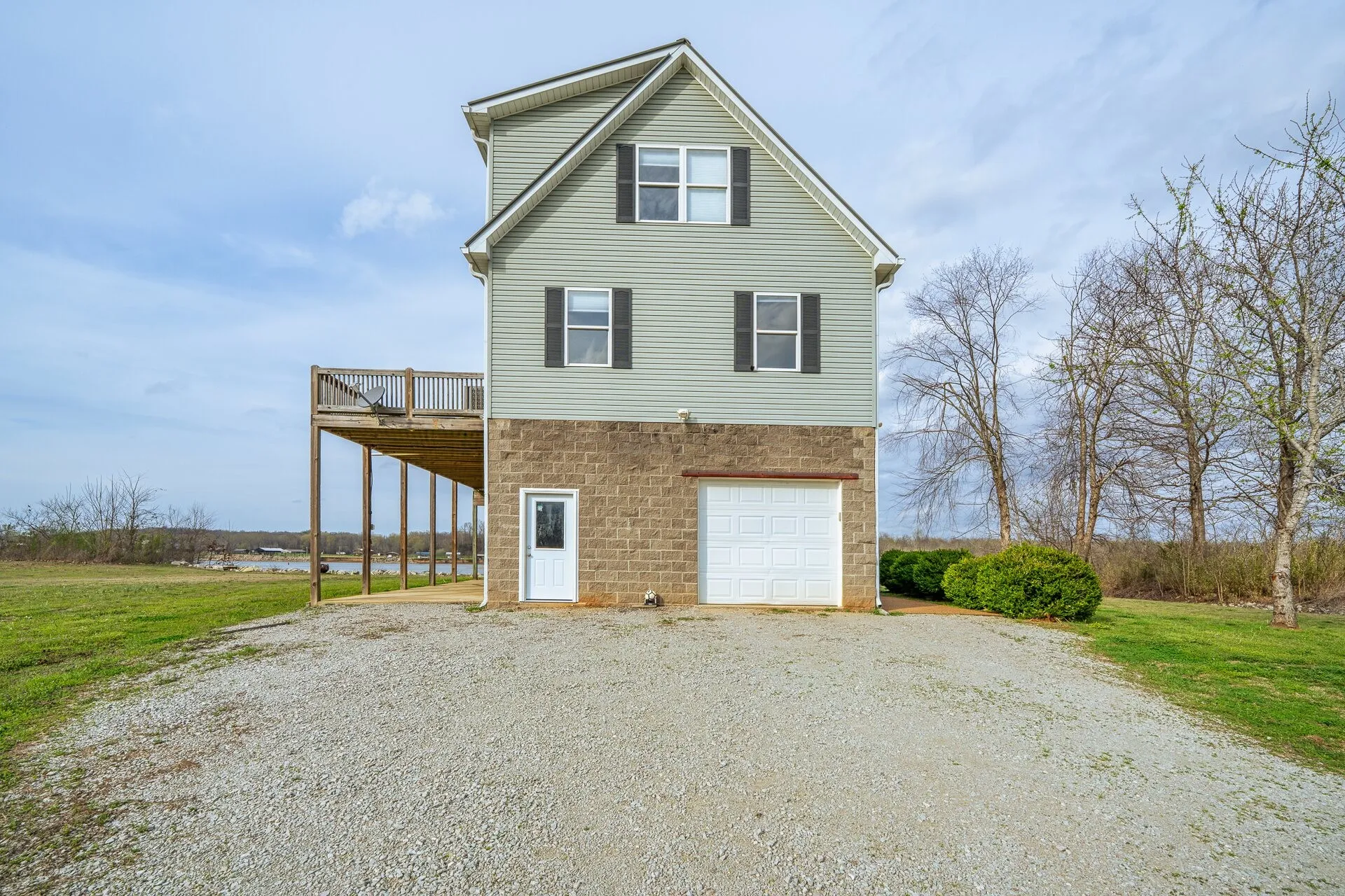 This Tennessee River waterfront home offers stunning water views from every window. Home comes with an extra waterfront lot on one side and community boat ramp on the other providing unparalled privacy and convenient boat launching! Your private boat dock is buffered from the main navigational channel by a natural island, and a serene water inlet is visible from the property. An all-aluminum outdoor lift adds extra convenience for loading and unloading. The main level features an open-concept kitchen and living area, two bedrooms, a full bath, and a handy combined pantry/laundry room. You’ll enjoy generous deck space—both covered and uncovered. Upstairs, the spacious ensuite bedroom has plenty of room for three queen-size beds, plus additional living space that opens to another covered deck—ideal for family gatherings or quiet mornings overlooking the river. The basement is built with durable concrete block construction, properly vented, and designed to handle high water levels. On one side, a covered lean-to includes a septic hookup ready for a camper or RV. New decking on the boat ramp, replacement of all exterior doors and windows on the basement level,upgraded kitchen cabinets and flooring. The home is equipped with two HVAC systems (one brand new, the other just 3 years old) and includes all appliances—washer, dryer, and more. Most furniture conveys as well, making this truly turnkey and ready for immediate enjoyment. This special section of the Tennessee River features multiple sandy beaches, islands, and hidden coves—perfect for boating, watersports, fishing, or simply relaxing by the water. Nearby marinas provide fuel, food, and supplies. There’s also ample yard space between the house and river for outdoor activities. Located in the desirable Bath Springs area, halfway between Memphis and Nashville. 30 minute drive to Savannah TN where you will find Lowes, Walmart and many dining options. Fiber Internet available.