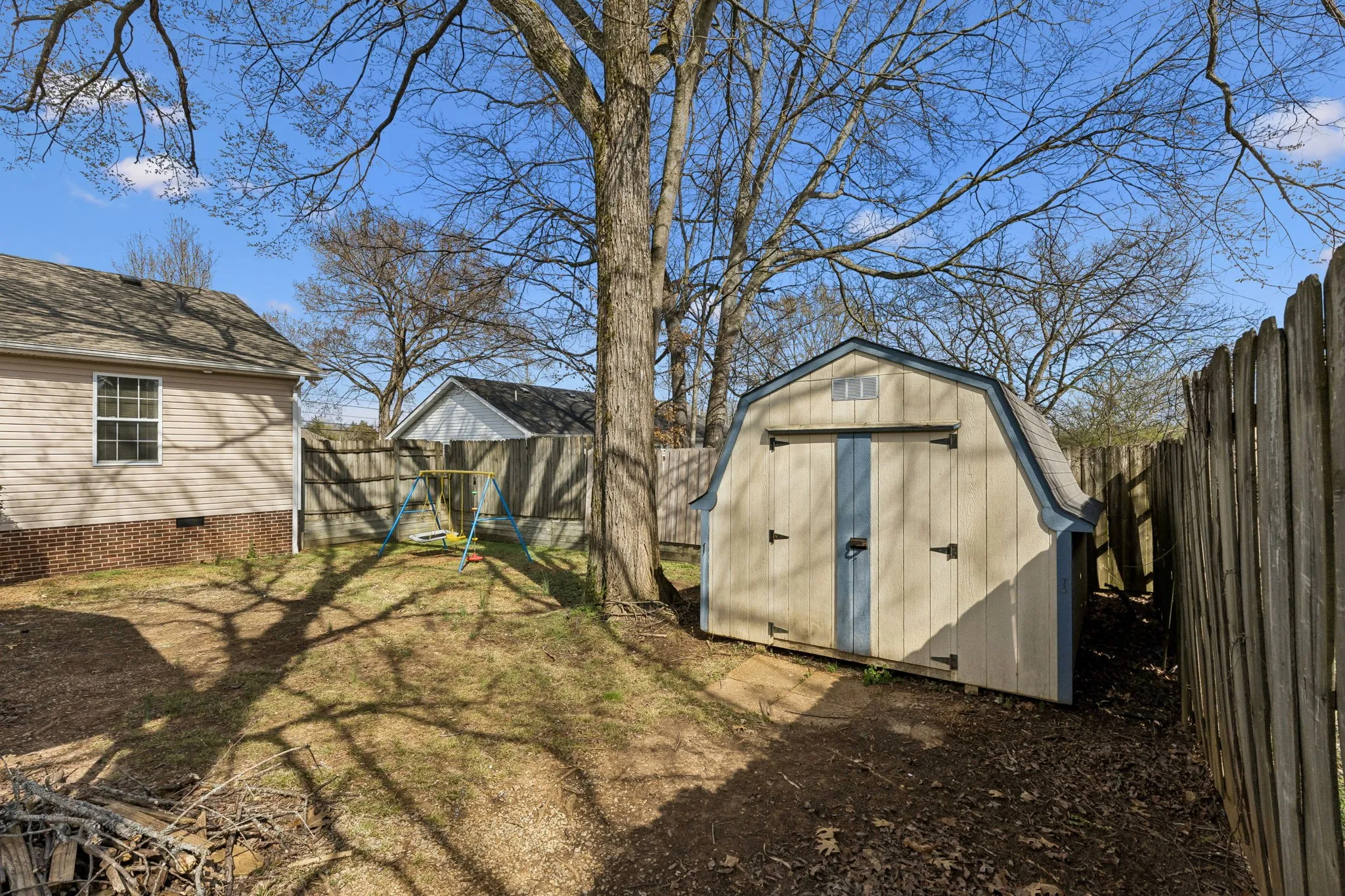 Enjoy your rocking chair front porch with a country feel while being convenient to amenities! Charming 3 bed/ 2 bath home close to town in Shelbyville, TN! Split bedrooms and an open concept living/kitchen make this the perfect and versatile floor plan*Vinyl plank flooring for easy maintenance*Vaulted living room ceilings give it an open, airy feel*Partially fenced backyard with mature trees and landscaping*Rear Carport for two cars*Storage barn remains*Primary suite with a spacious walk-in closet*Stainless kitchen appliances will remain as well as clothes washer and dryer*Ramp to back door for handicap accessibility*Public sewer and natural gas*Neutral colors throughout*Perfect one level that checks all the boxes for a starter home or for downsizing*
