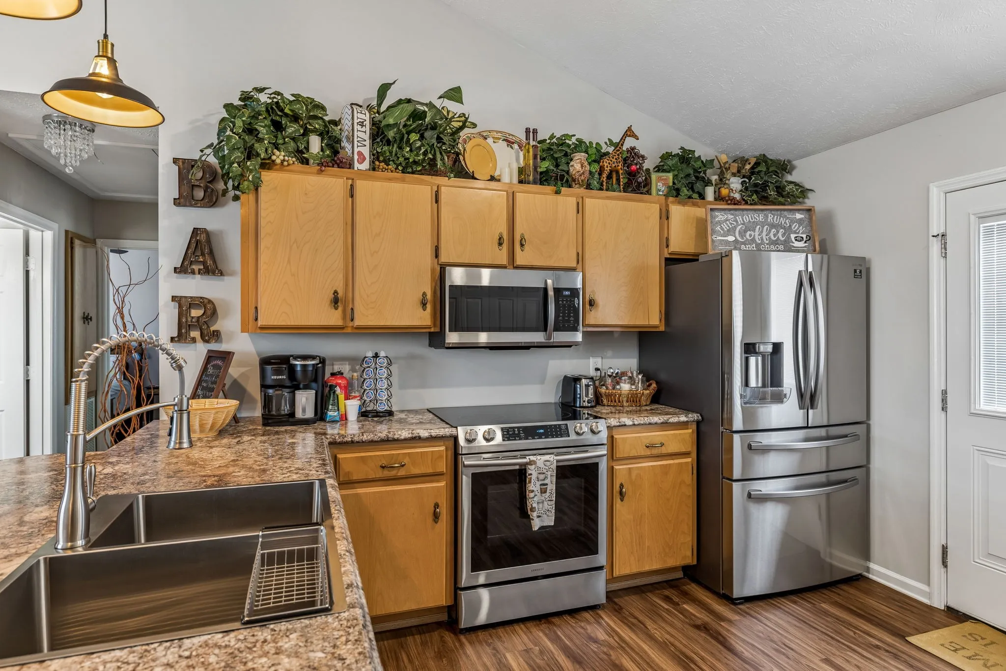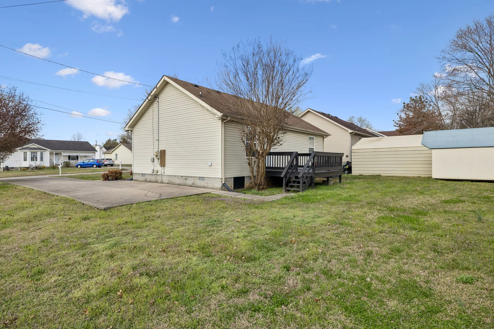 Completely updated and move-in ready, this charming home offers stylish living in a highly convenient location halfway between La Vergne and Smyrna. This 2 bedroom, 1.5 bath home has been thoughtfully remodeled and provides comfortable, low-maintenance living. The open-concept layout features vaulted ceilings, durable flooring throughout, and a bright living area that flows seamlessly into the kitchen. The kitchen includes stainless steel appliances, ample cabinet space, and a bar area perfect for casual dining or entertaining. Outside, enjoy the welcoming front porch, manageable yard, and a storage building that remains with the property. Convenient to shopping, dining, and everyday amenities, this move-in ready home is ideal for first-time buyers, downsizers, or anyone looking for an updated property in a great location.