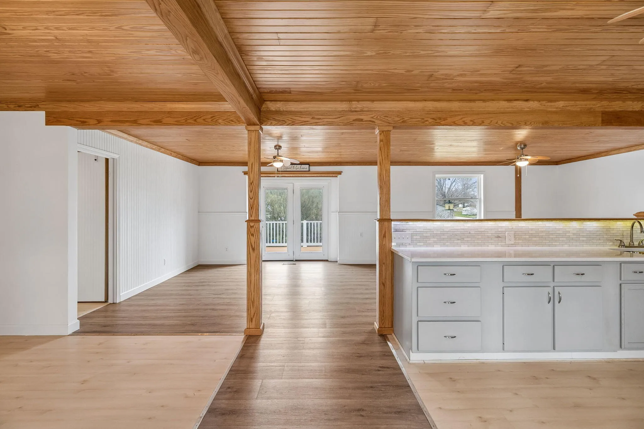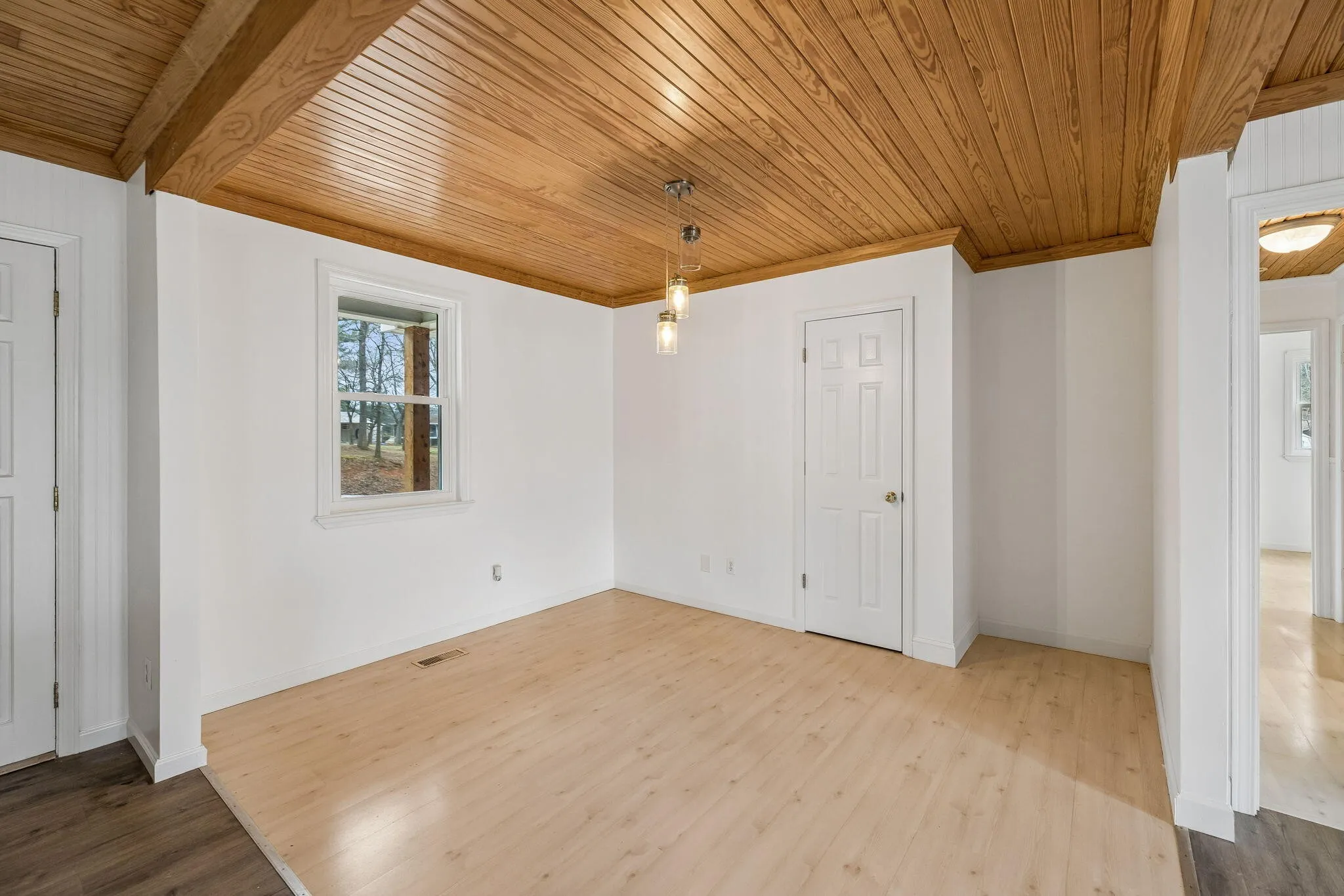 Spacious two story home with lots of room to spread out. First floor features open concept kitchen, living and dining room accented with a wonderful light wood ceiling. In the kitchen the buyer may choose at seller’s expense a white or stainless gas stove. Additional main floor space includes a primary suite with half bath plus a second bedroom and full hall bath. Downstairs there are 2 additional bedrooms, with a den and flex space perfect kids play room or office; in addition to a full bath and laundry combo room, washer & dryer included. The downstairs stays cozy with a gas ”log” burning stove. Indoor workshop, great for project and storage. Large back deck and patio areas overlooks large level back yard. This home is a short drive to Island Cove Marina or Harrison Bay State Park for boating, swimming and fishing.