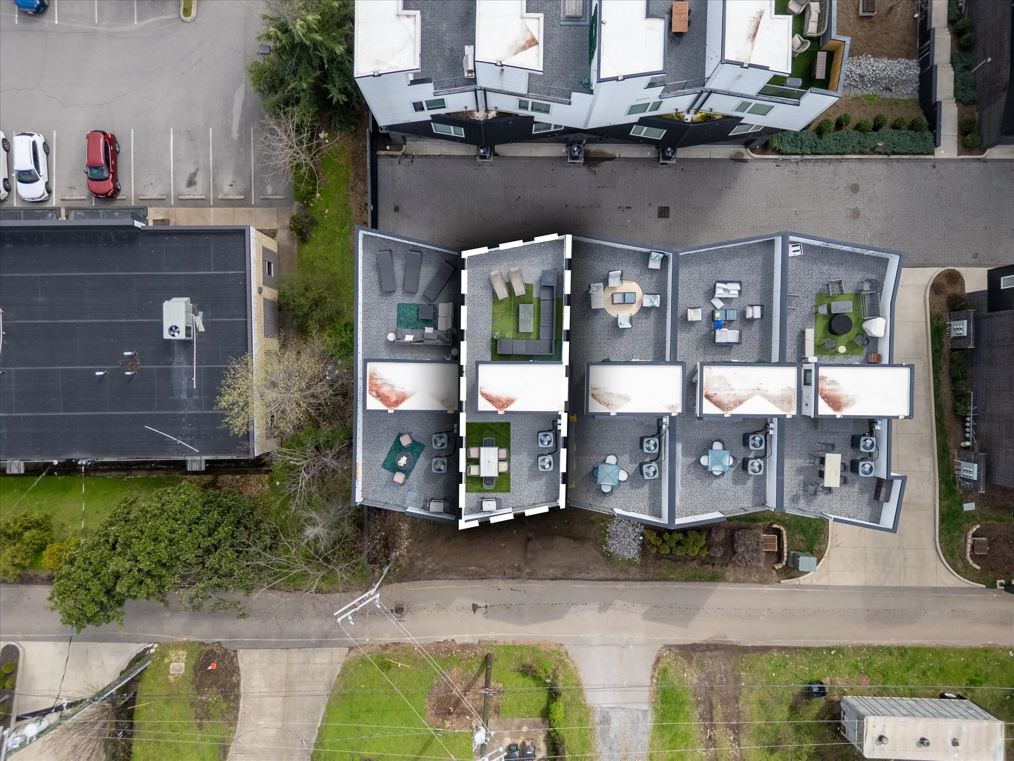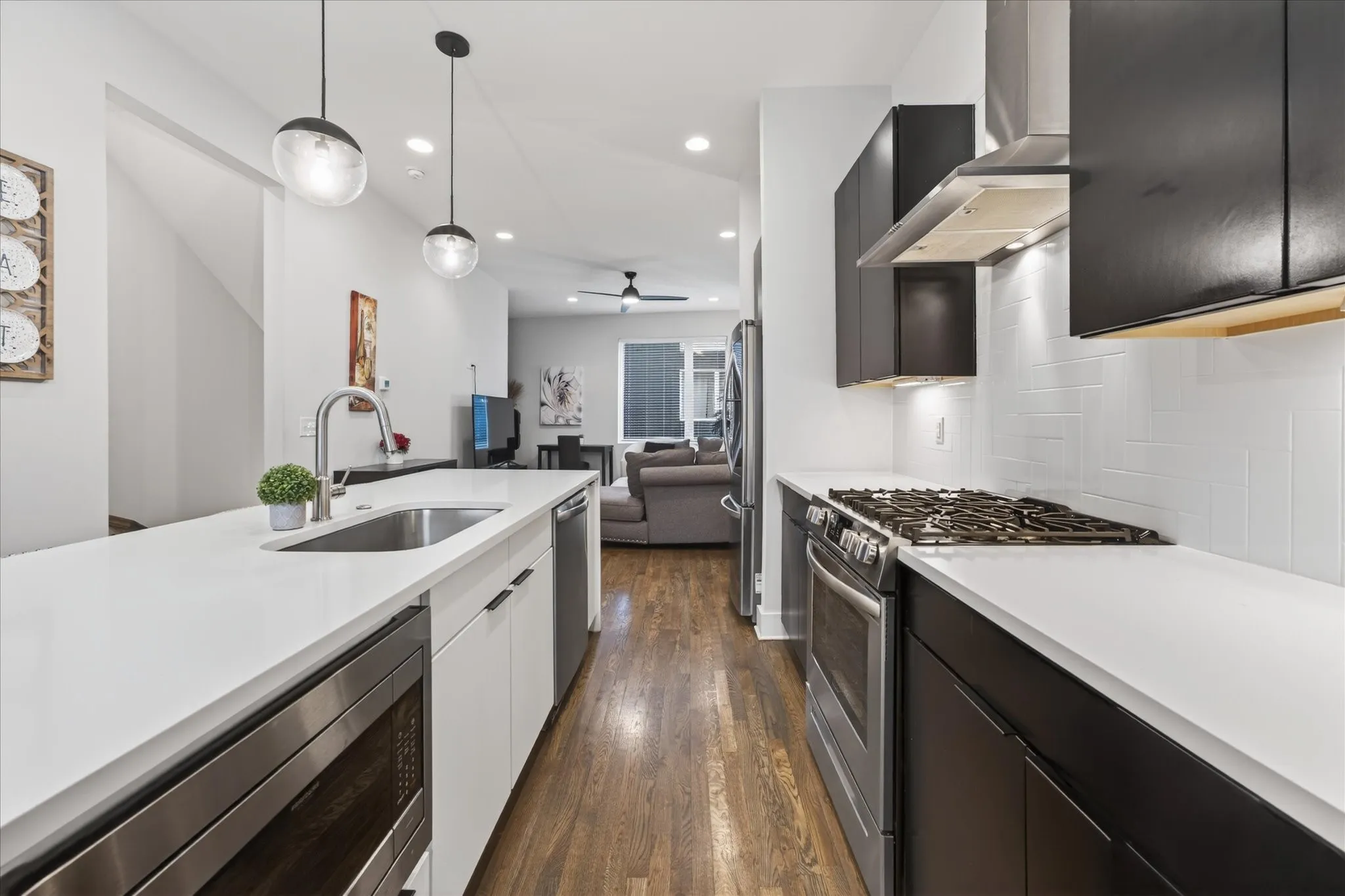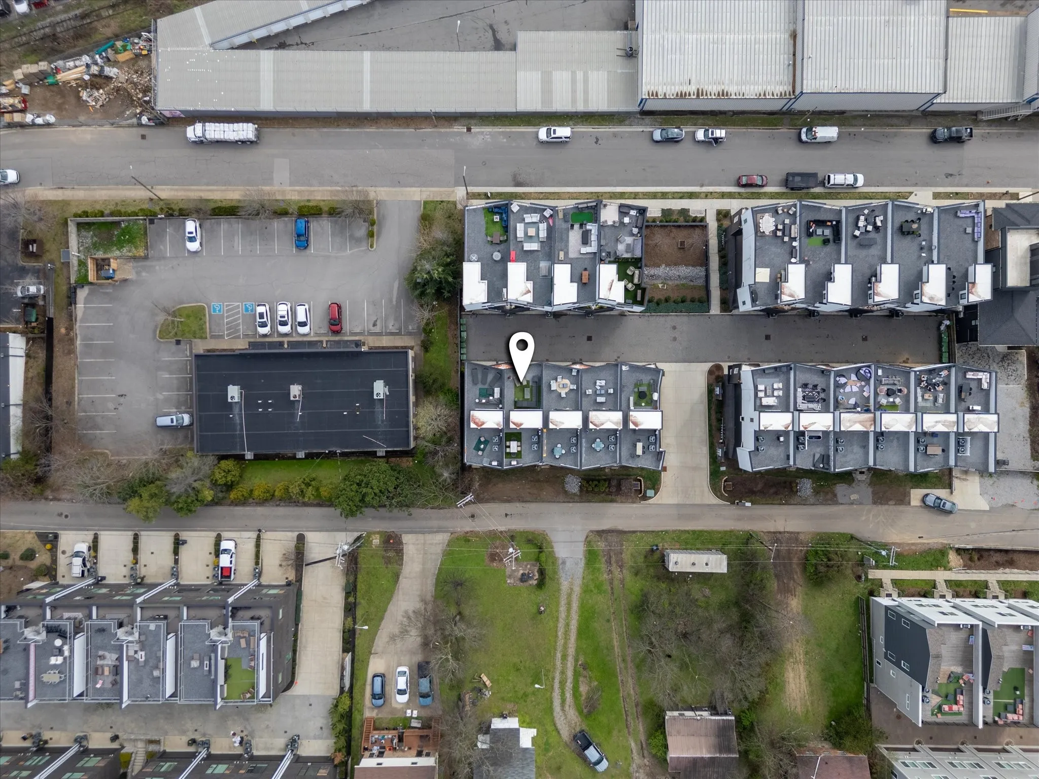Fully furnished and successfully operating as a short-term rental, this 4-bedroom, 4.5-bath luxury townhome comes with active bookings in place, offering immediate income potential for the next owner. Thoughtfully designed with groups and guest experience in mind, each bedroom includes a private ensuite bath and is stylishly furnished to comfortably host visitors, making it ideal for high-performing STR use or a stylish Nashville home base. The open-concept main level features hardwood floors throughout, a spacious dining area perfect for gathering, and a designer kitchen with waterfall island and gas range. The two-car garage doubles as a guest-favorite game space with ping pong, TV, and lounge seating—while still maintaining room for parking. Head upstairs to the rooftop terrace with two separate entertaining areas—one side designed for relaxing with a large sectional and loungers overlooking the city skyline, and the other featuring outdoor dining and a gas grill, perfect for sunset dinners with a view. Additional highlights include smart locks, tankless water heater, and modern finishes throughout, making the home truly turnkey for investors or effortless for personal use. Located minutes from Broadway, The Gulch, Midtown, Nissan Stadium, OneC1ty, and Centennial Park, this property offers the perfect combination of location, luxury, and proven rental performance.