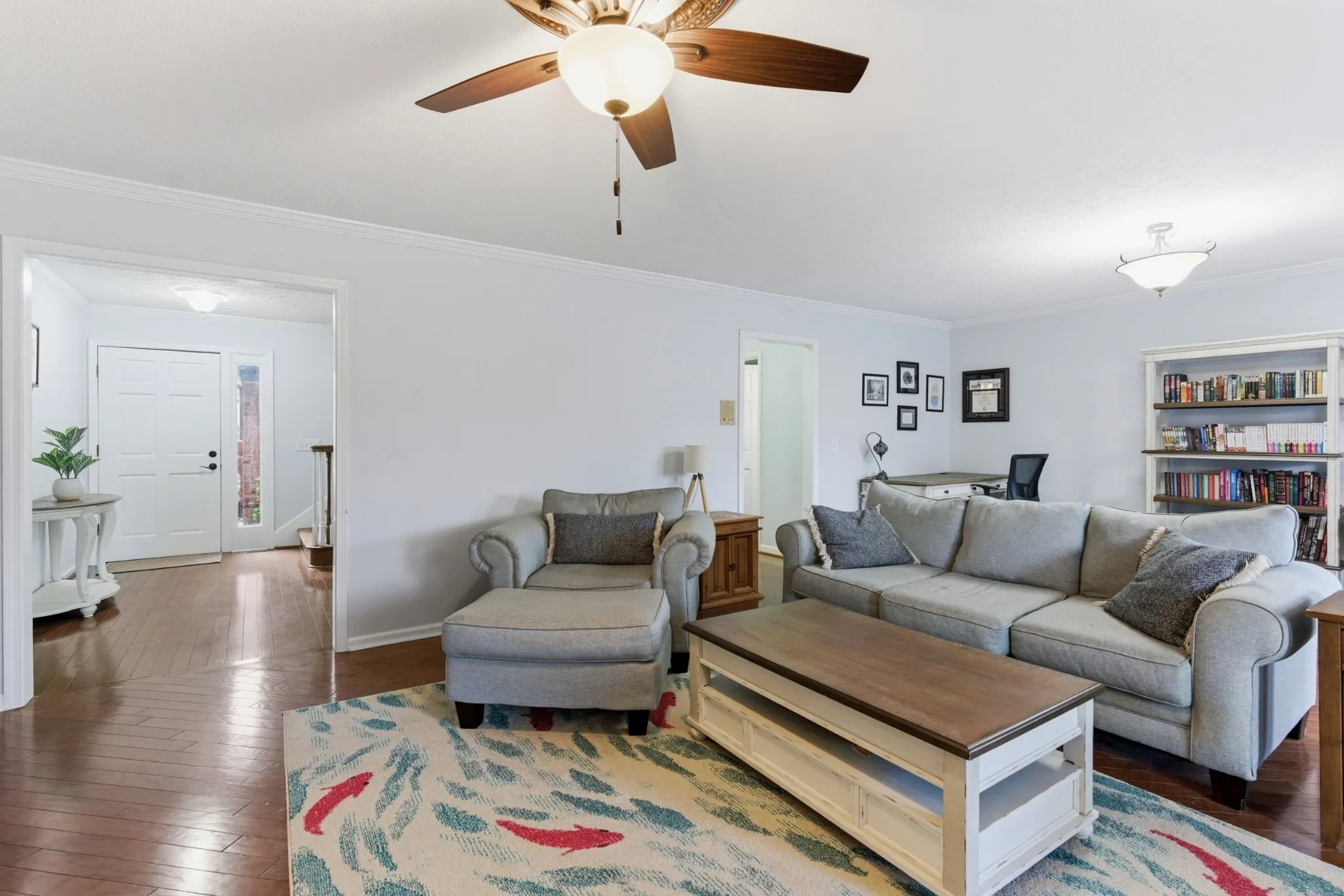 •Large living room/dining room area that can be used as one space or as separate rooms.The entire downstairs has hardwood floors.