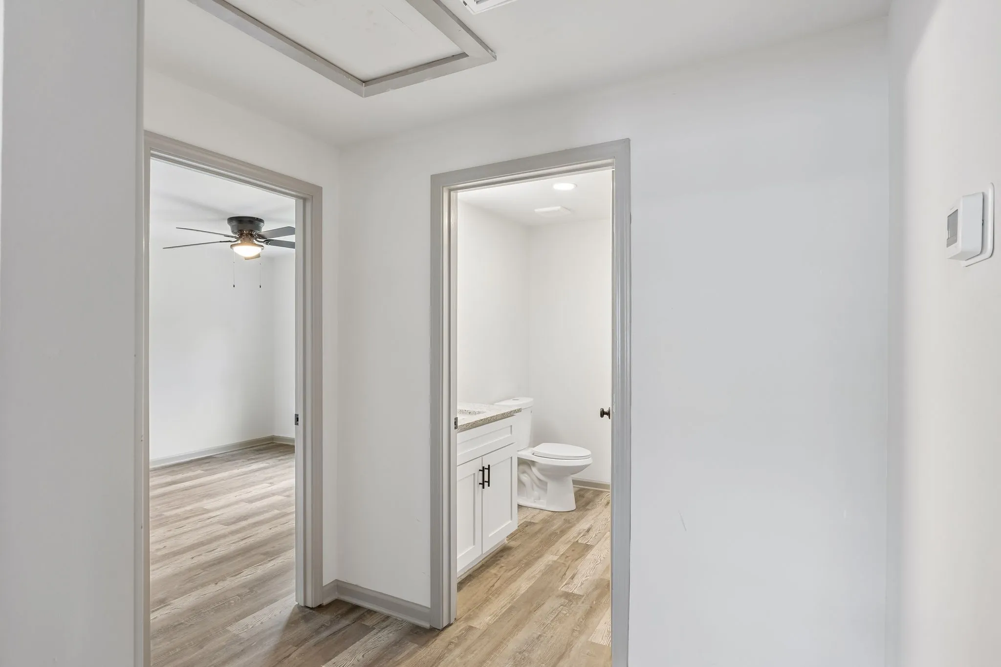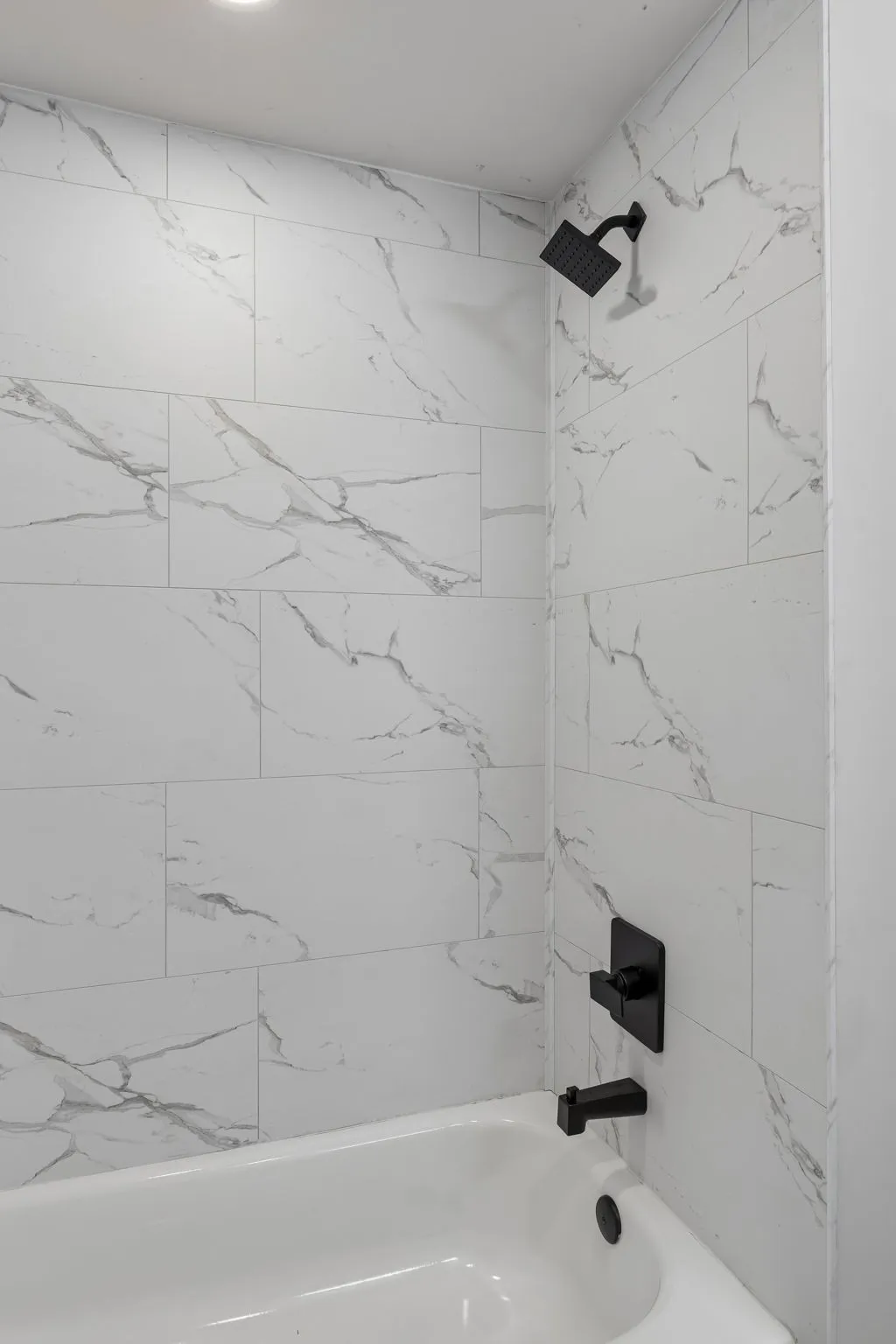 Both bedrooms are comfortably sized, with the primary bedroom featuring a walk-in closet for additional storage. The updated bathroom includes a modern vanity, stylish fixtures, and a beautifully tiled shower/tub combination for a clean, contemporary look.