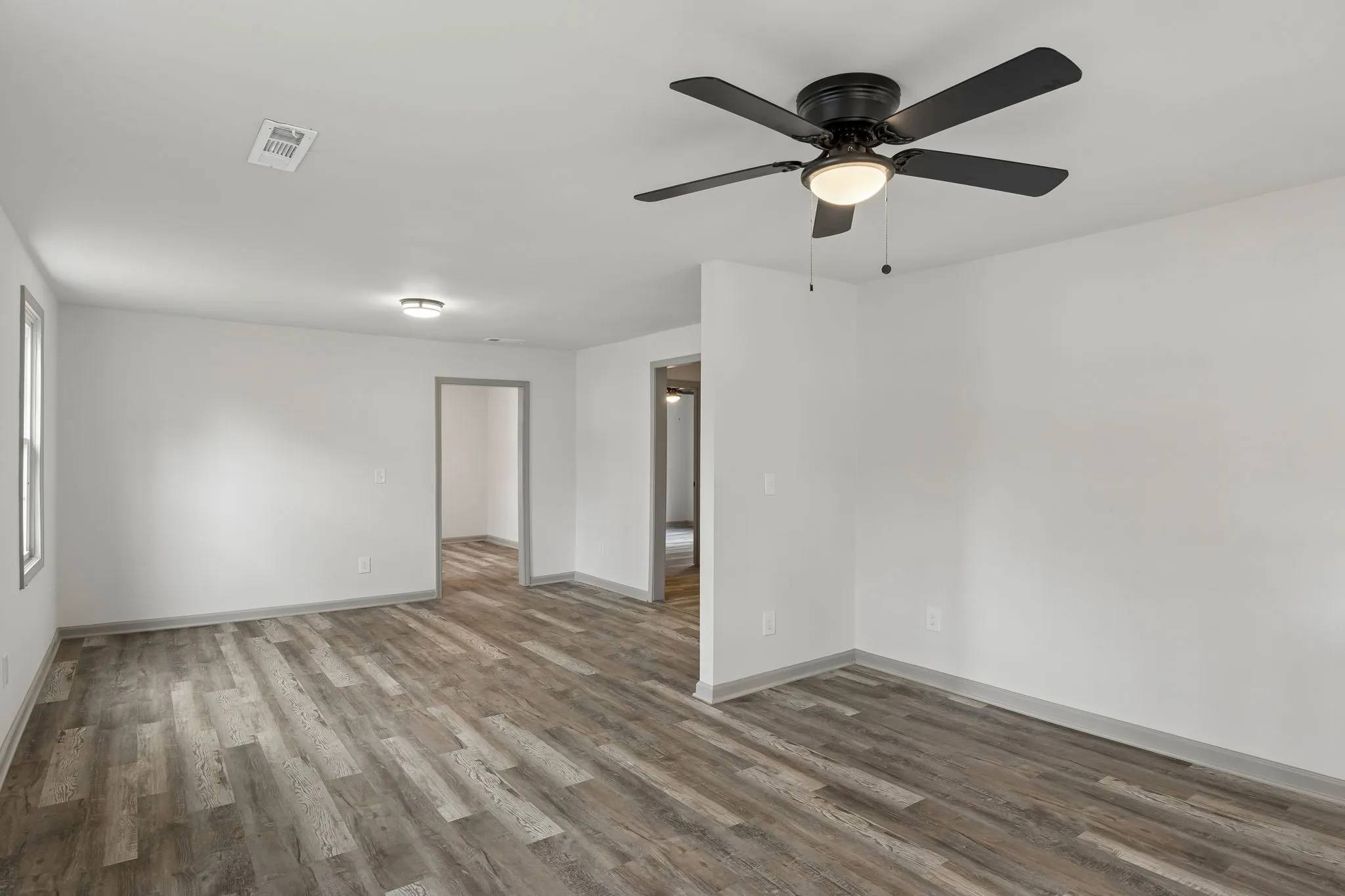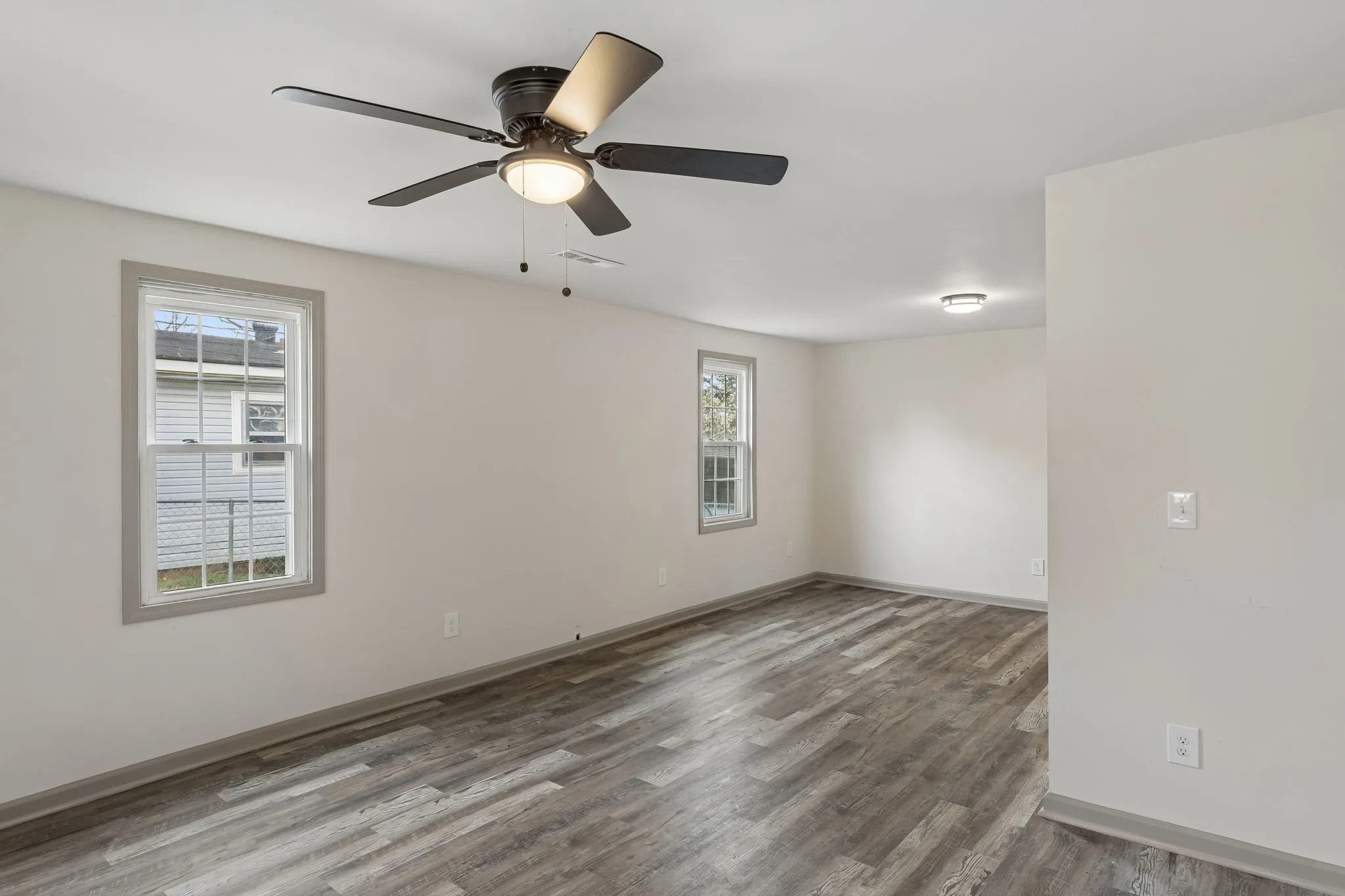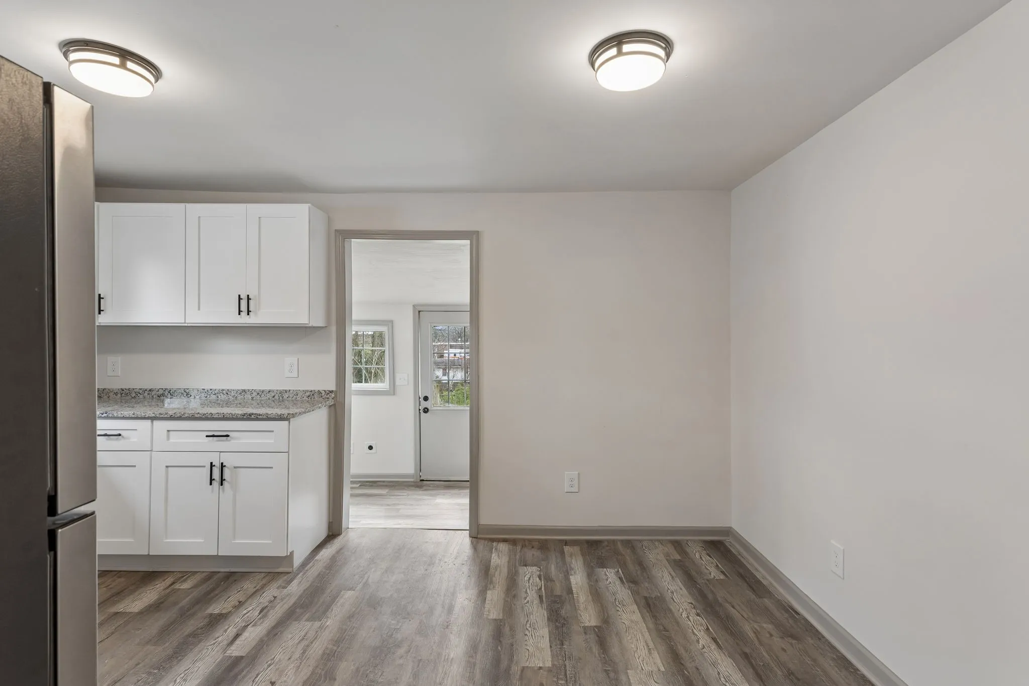 Step inside to a bright and spacious living room featuring durable luxury vinyl plank flooring and plenty of natural light. The open flow continues into a generous dining area, creating a great space for entertaining or everyday meals.