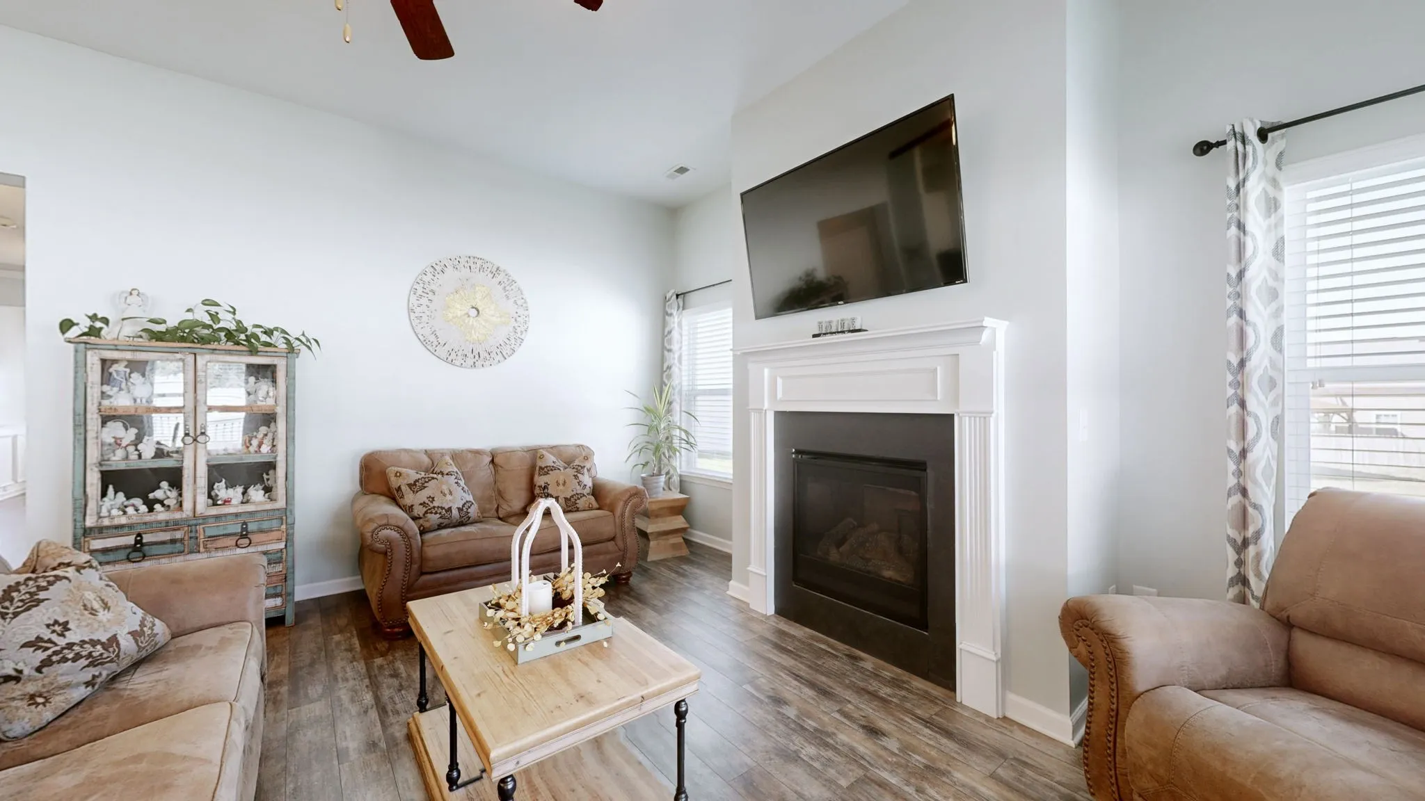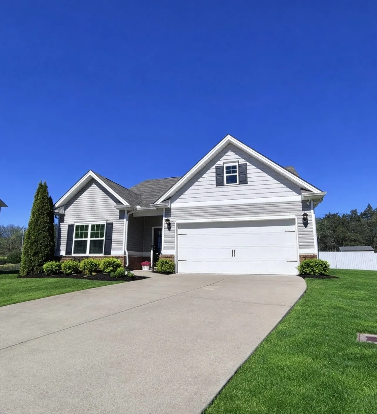 Beautifully appointed, single-level cottage-style home in the highly desirable Cobblestone Village community. Charming curb appeal features a tasteful blend of brick, lap, and shingle siding. A covered front porch and an impressive foyer create a welcoming first impression for your guests. The spacious great room and kitchen boast 10-foot ceilings and a cozy gas fireplace—perfect for quiet evenings at home or effortless entertaining. The kitchen offers granite countertops, a large island, abundant cabinetry, and a walk-in pantry. Enjoy relaxing evenings on the covered back porch overlooking your fenced backyard. This thoughtful split-bedroom floor plan places the two secondary bedrooms and their shared full bath toward the front of the home, while the private primary suite is tucked away at the rear. The primary bedroom features a tray ceiling, and the en-suite bathroom includes an oversized shower, double sinks, and a private water closet. A generous walk-in closet conveniently connects directly to the laundry room. Additional highlights include a two-car garage with a newer, high-end epoxy floor finish. Close to new Publix, Kroger, Crossings Shopping Center, Movie Theater, and so much more! Easy commute to Franklin, Nashville / BNA.