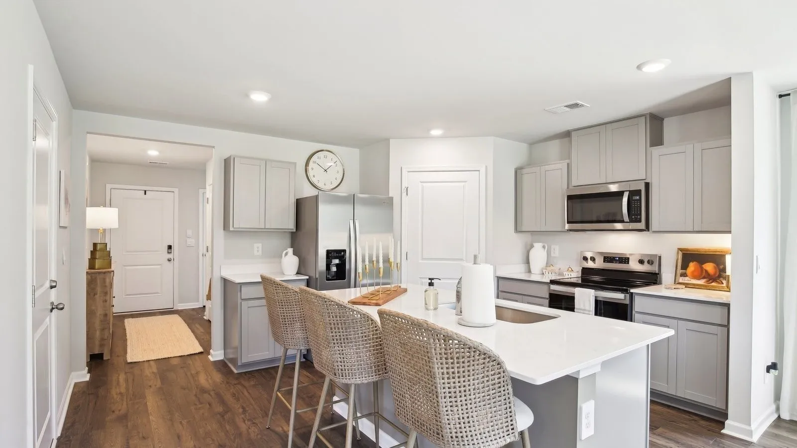 UP TO $7500 towards CLOSING COSTS with use of our preferred lender. The Hartsville floorplan offers a spacious and modern two-story home designed for both functionality and style. With four bedrooms and 2.5 bathrooms, this home provides ample space for families or individuals who desire both privacy and community living. The main level features an open-concept kitchen, living, and dining area, creating an ideal space for entertaining. The kitchen is a standout, equipped with luxurious quartz countertops and stainless-steel appliances. Smart home technology is seamlessly integrated throughout, allowing homeowners to easily control lighting, temperature, and security systems from their phone or voice commands. This adds convenience, energy efficiency, and peace of mind to daily life. The large living and dining areas create a welcoming space for gatherings, while the upper level offers a peaceful retreat with well-appointed bedrooms, including a master suite with an en-suite bathroom. Whether you’re relaxing in the open living space, or enjoying the comfort of the private bedrooms, the Hartsville floorplan provides a perfect balance of luxury, technology, and functionality. It’s a home designed for modern living, where comfort, style, and innovation come together to enhance your lifestyle.