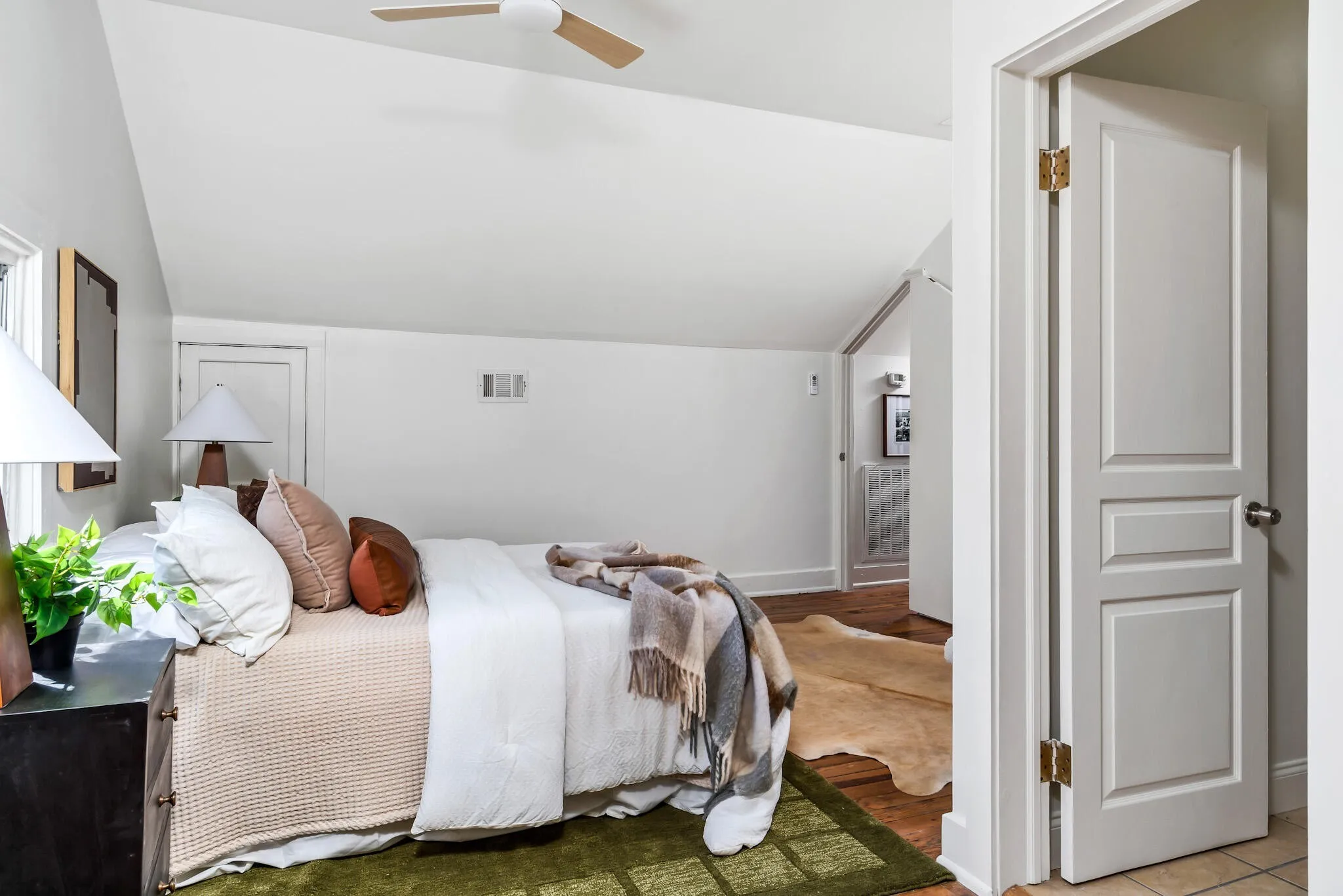 The light-filled living spaces create a warm and welcoming feel throughout. The kitchen features new countertops installed last year and newer appliances, including a refrigerator, dishwasher, and microwave all less than three years old. The upstairs right bedroom includes a recently replaced shower, adding modern appeal.