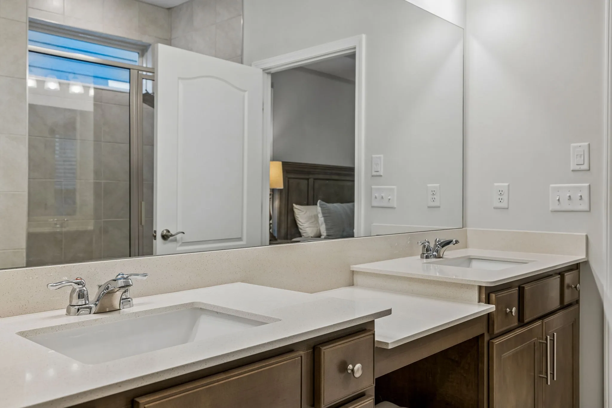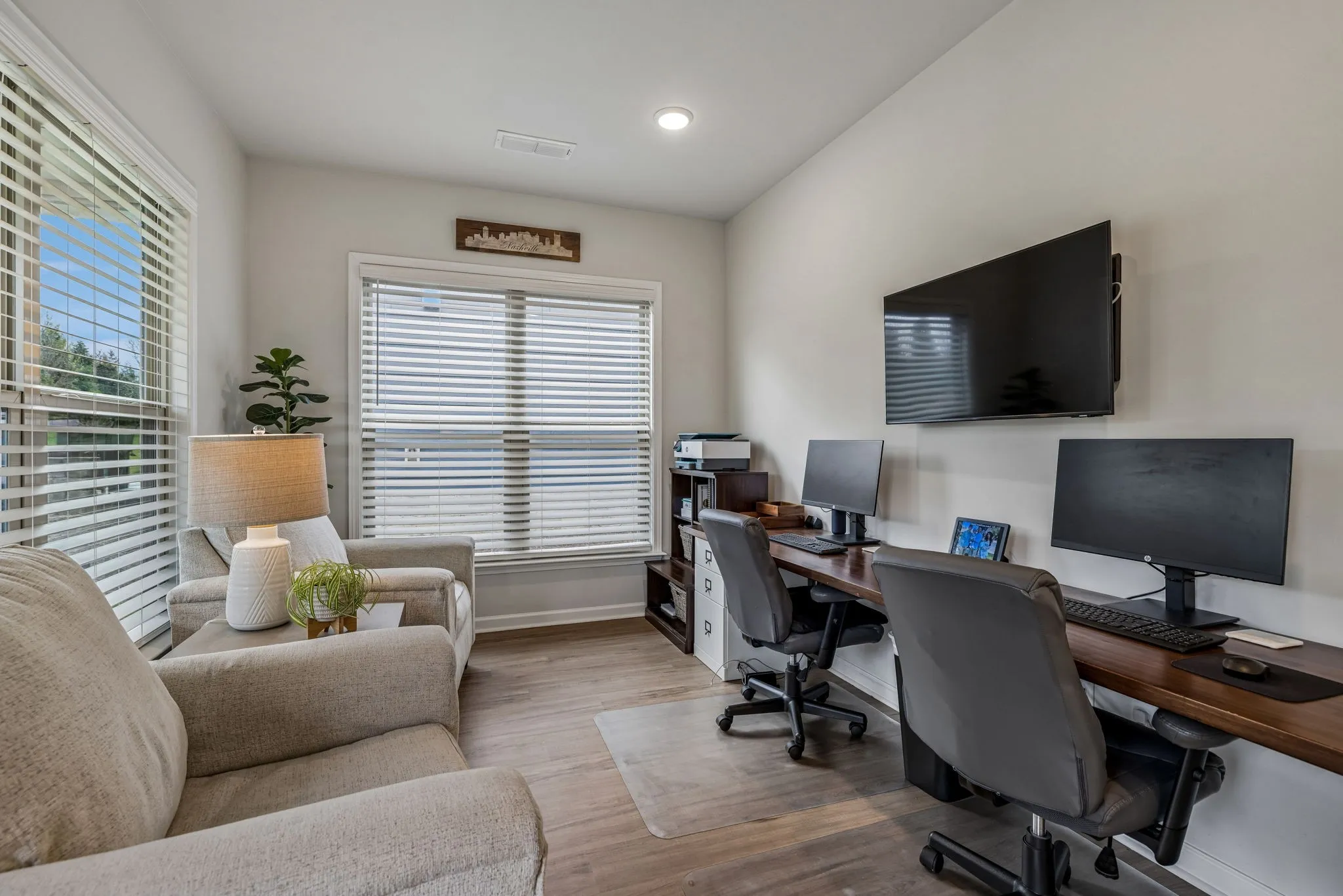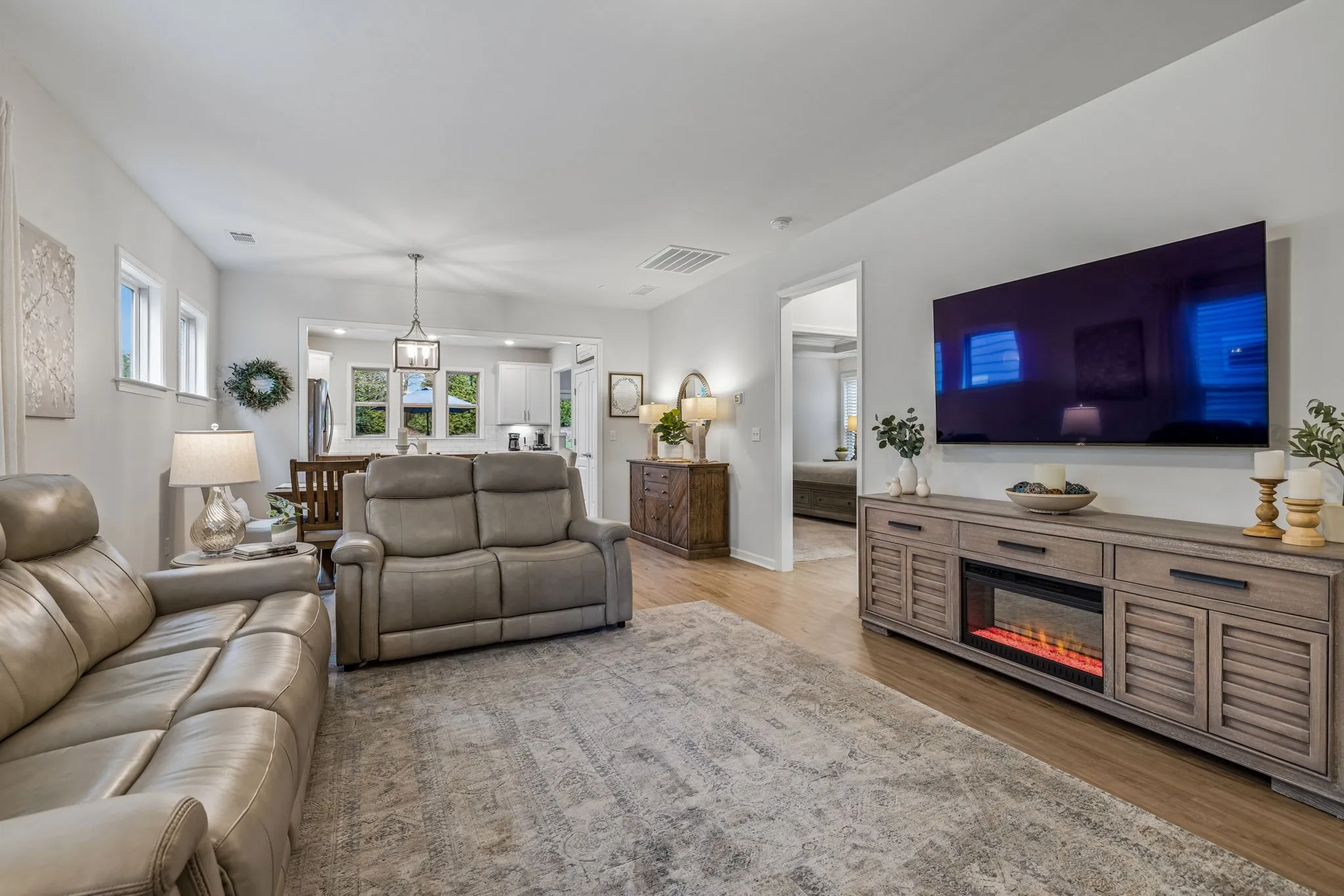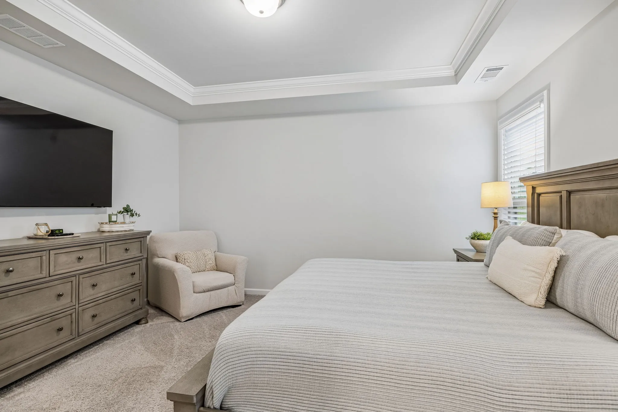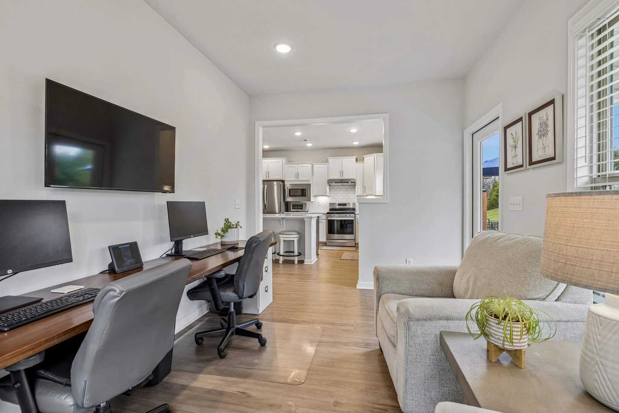 Modern layout centered around an open-concept living area, where the kitchen serves as the hub of the home. Equipped with quartz countertops, a gas range, stainless steel appliances, and a central island, the kitchen overlooks the main dining and family spaces for a cohesive feel. The primary suite is positioned on the main level for convenience, highlighted by tray ceilings and a private bathroom featuring double vanities, a makeup station, and a large walk-in closet. The floor plan also includes a dedicated office space, providing a quiet area for professional tasks. Upstairs, a versatile bonus room offers additional living space alongside the third bedroom and bath with accessible attic storage for organization. The exterior includes a covered rear patio, a front porch to sit and enjoy your coffee and a beautiful landscaped backyard, offering a private outdoor area for relaxation. Throughout the home, neutral finishes and contemporary fixtures create a balanced aesthetic that is ready for personalization. This property combines practical design elements with quality construction to offer a comfortable and streamlined living environment. And endless amenities to enjoy! Come and see today!