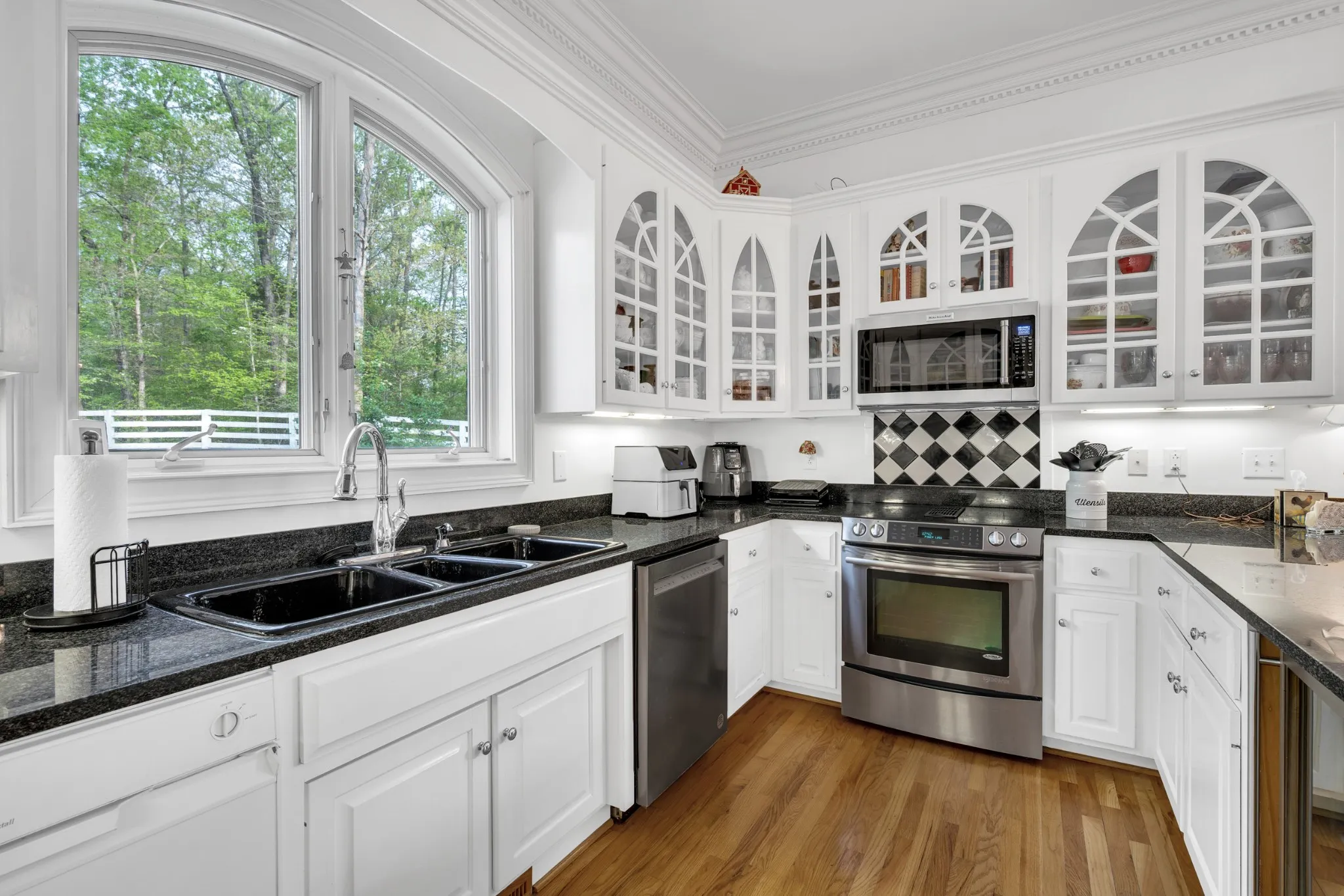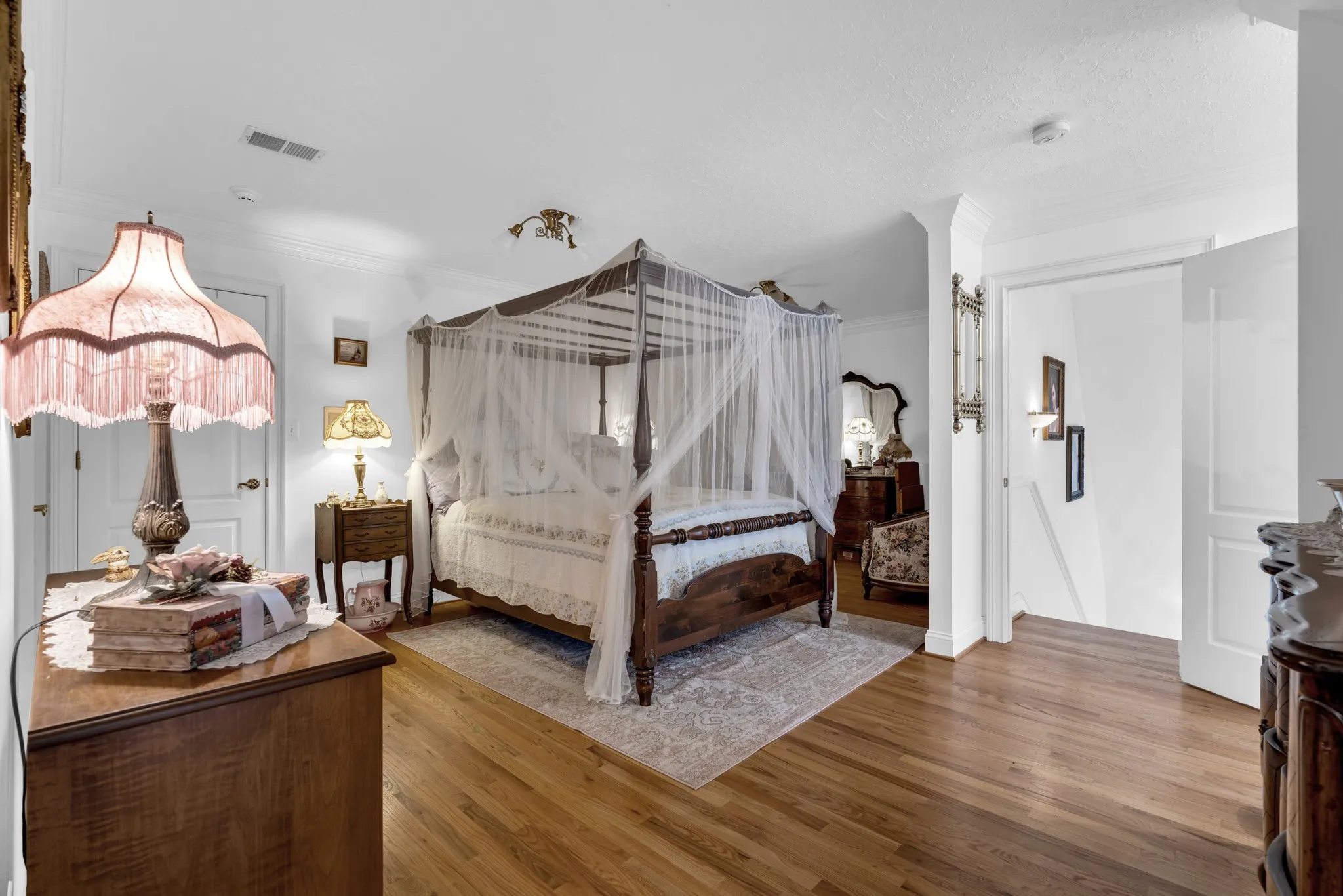 The property is equipped with a whole-home generator, UV water filtration, water softener on the main well, a second well, and high-speed fiber internet. Outdoors you’ll find mature timber, a light-walled garden courtyard, and distinctive copper gables and gutters that highlight the home’s architectural charm.